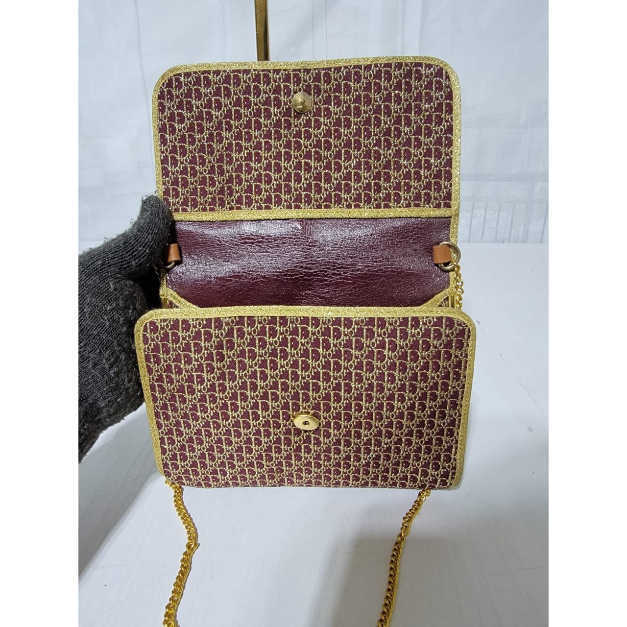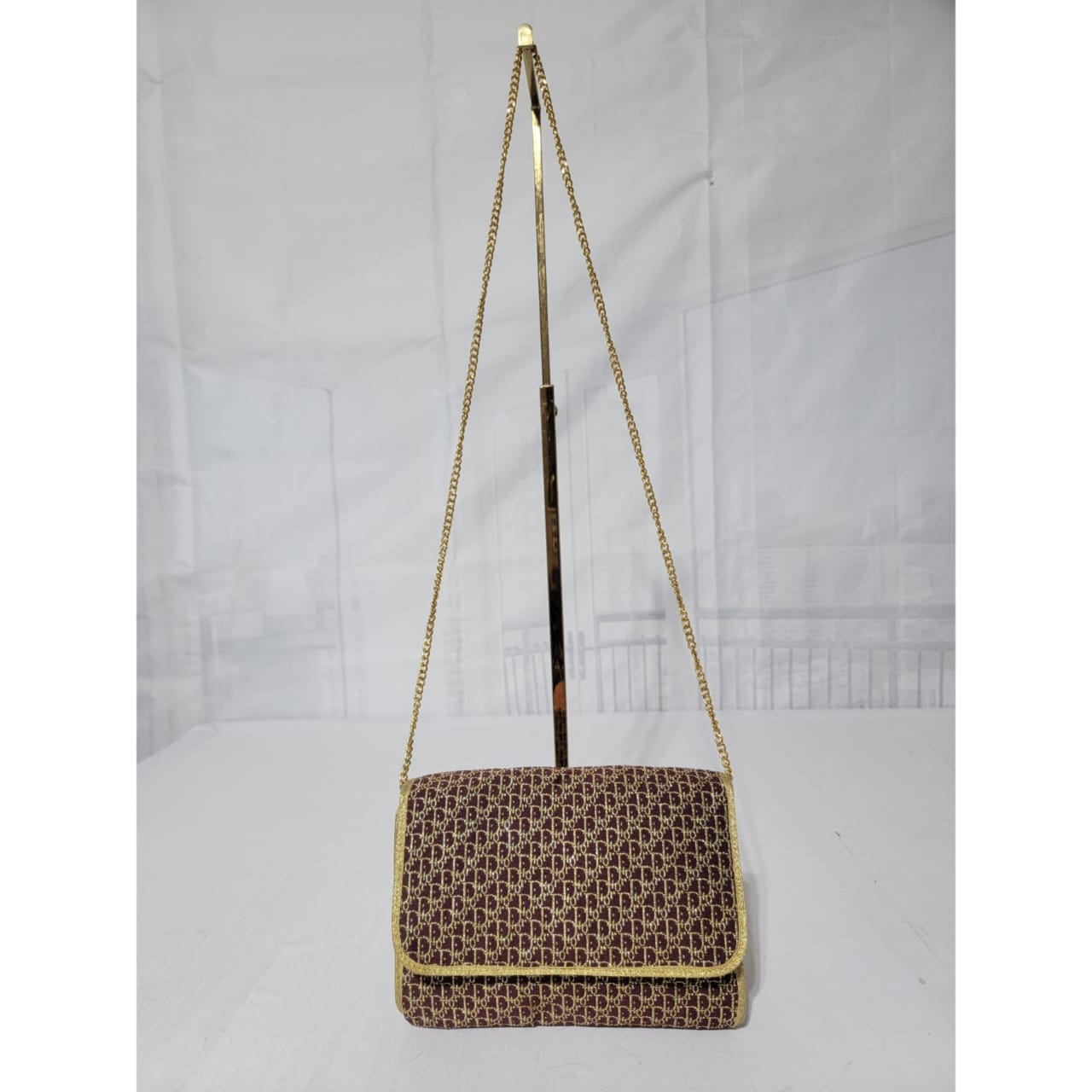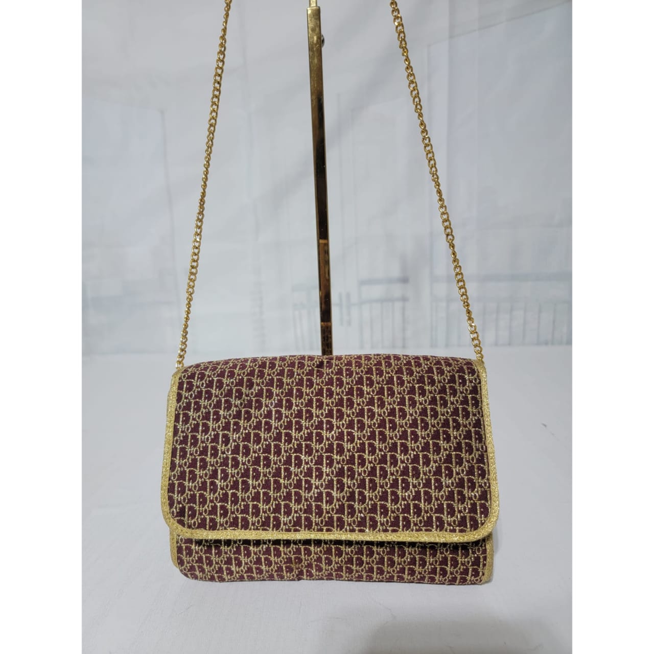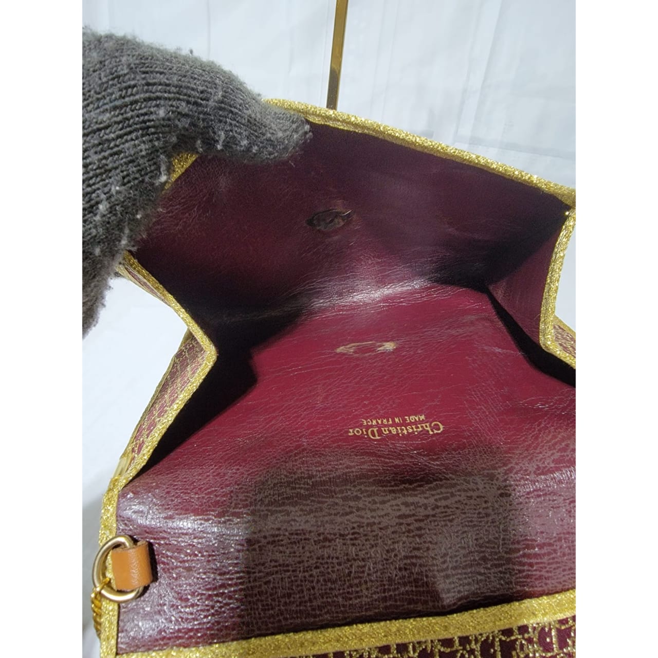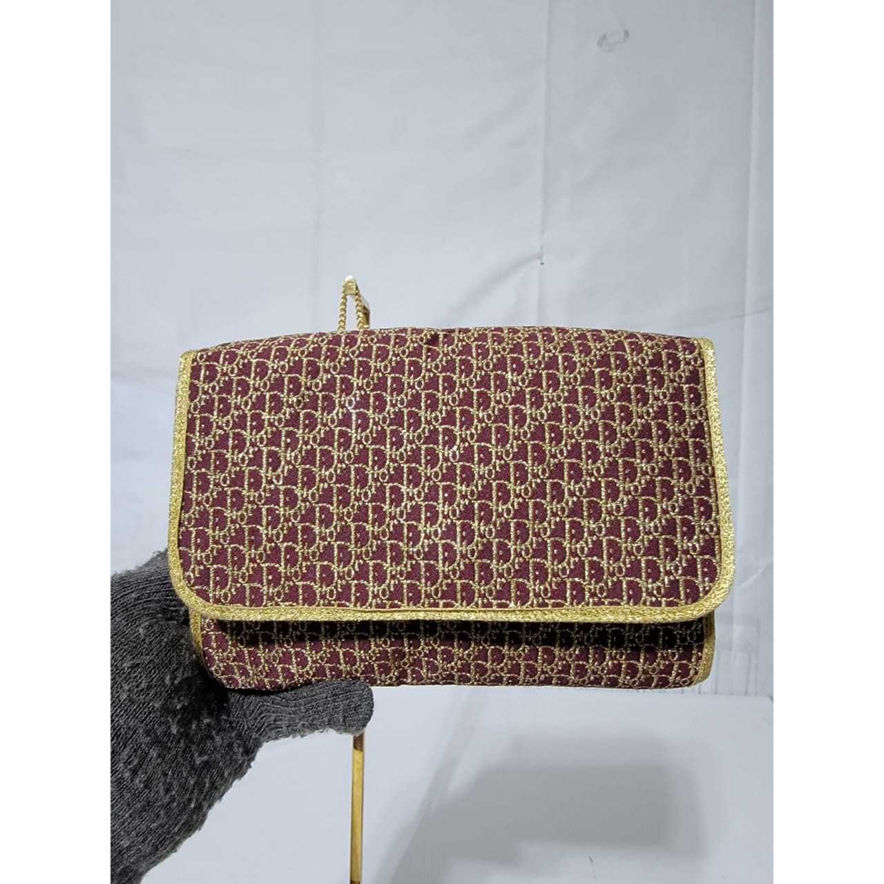 This authentic 1970s Christian Dior Vintage Bordeaux Oblique Monogram and Gold Lurex Canvas Logo Shoulder Bag Burgundy/Gold is in it’s good pre-owned condition. The exterior is clean and beautiful. Interior is clean, it is in it’s vintage condition. It has a gold trim around it.