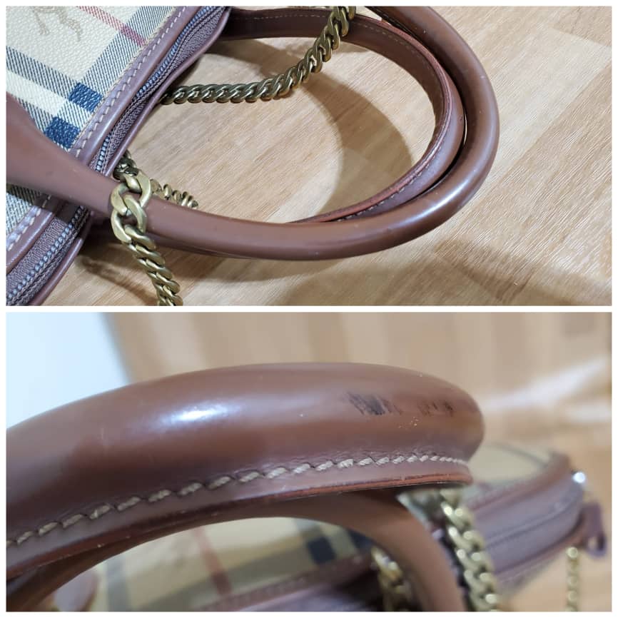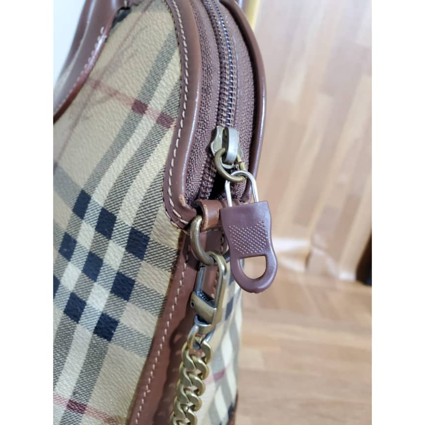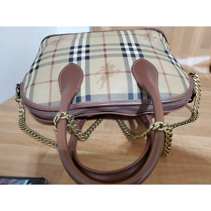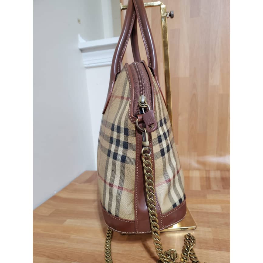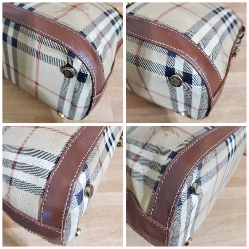 This authentic Burberry Alma Nova Check PVC is in it’s pre-owned vintage condition. The exterior coated canvas is clean and beautiful. Interior is clean. Added a chain for Crossbody strap.