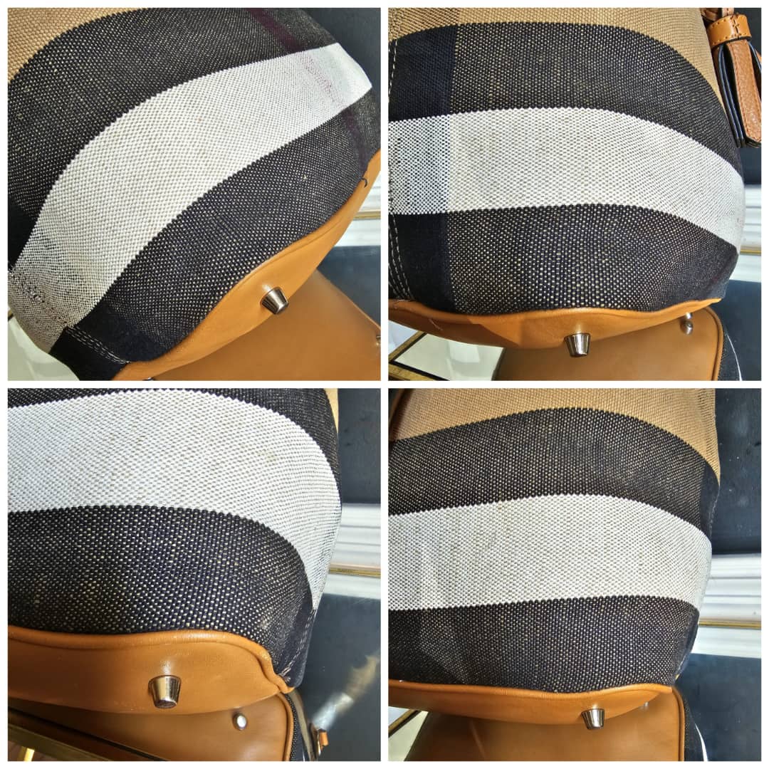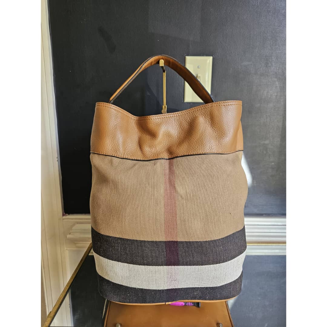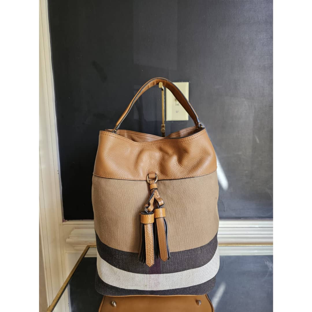 This authentic Burberry Ashby bucket bag Brown is in it’s good pre-owned condition. The exterior canvas is clean and beautiful. Interior is clean. The interior small pouch is missing.