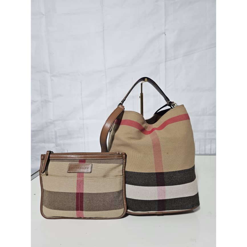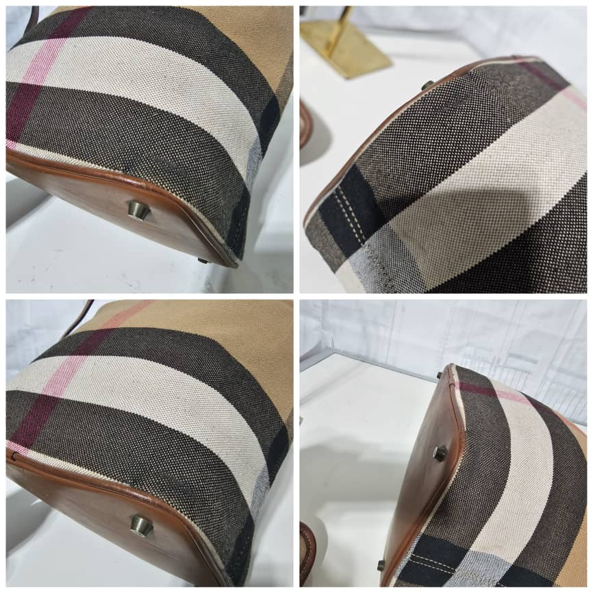 This authentic Burberry Ashby Medium Bag and Pochette Check Canvas & Leather is in it’s good pre-owned condition. The exterior is clean and beautiful. The interior is clean. The long shoulder strap is a generic strap included to make a crossbody/shoulder bag.