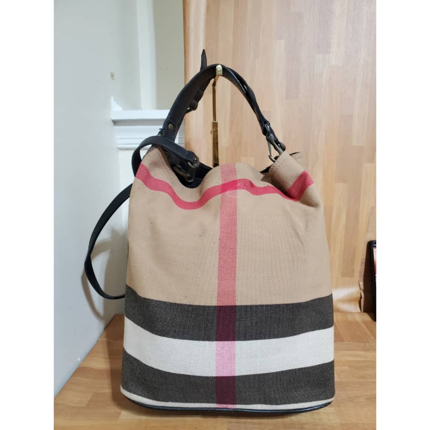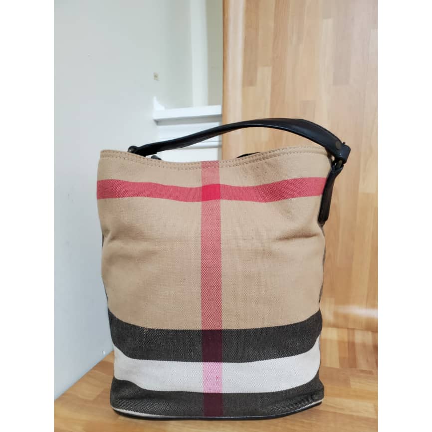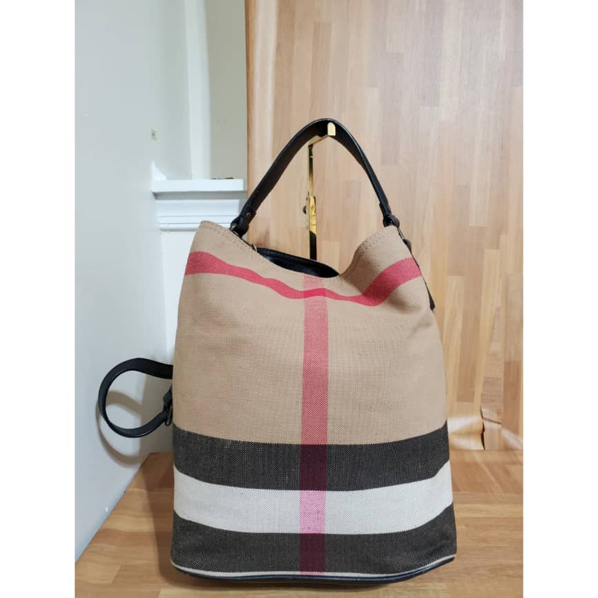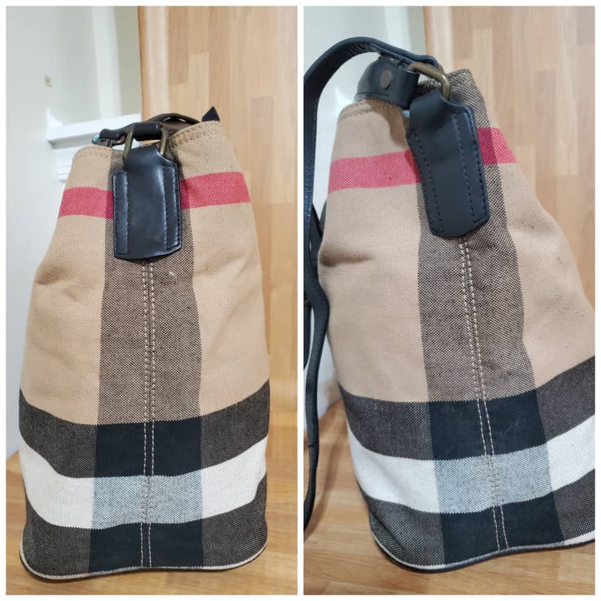 This authentic BURBERRY Ashby Mega Check Bucket Bag is in it’s pre-owned good condition, has sign of use. The exterior canvas is clean and beautiful. Interior is clean. Leather straps are great.