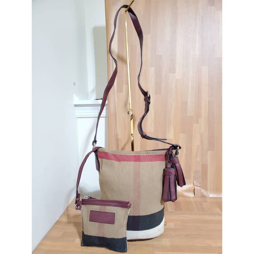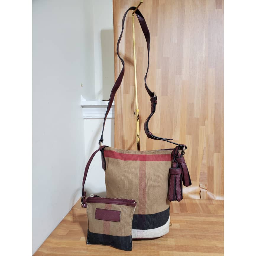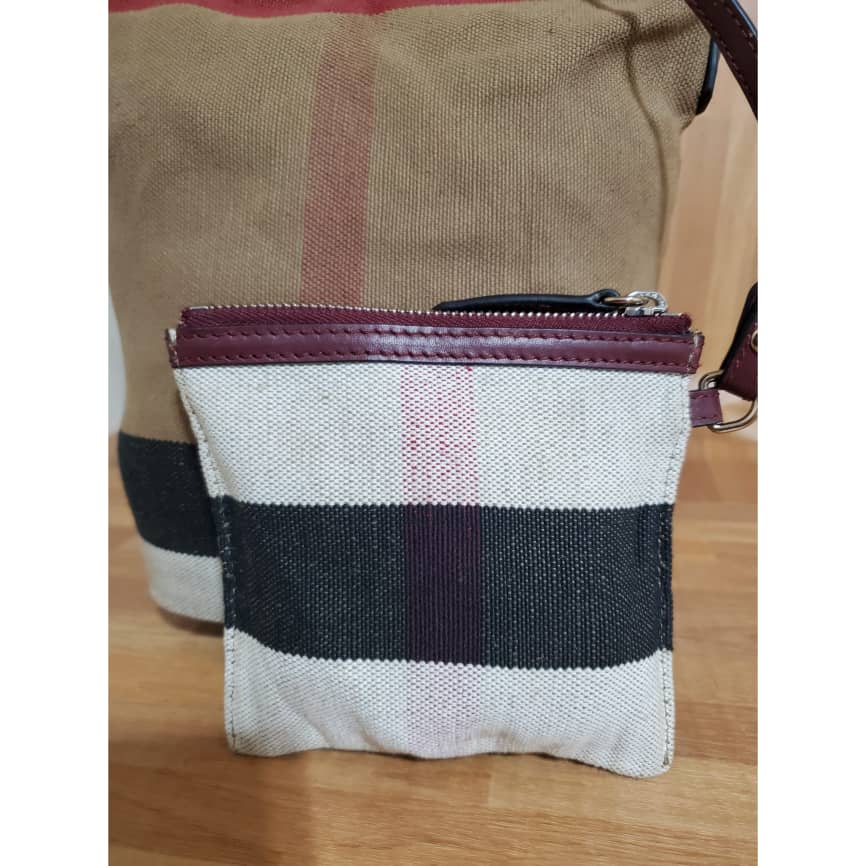 This authentic Burberry Ashby Bag House Check Canvas Mini bag is in it’s pre-owned good condition. The exterior canvas is clean and beautiful. Interior is clean. Comes with the small pochette. It’s a beautiful two pieces Burberry bag.