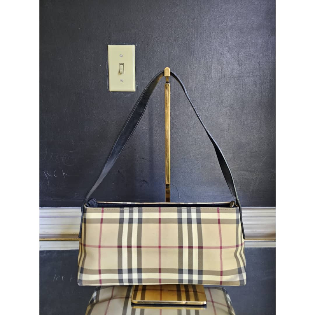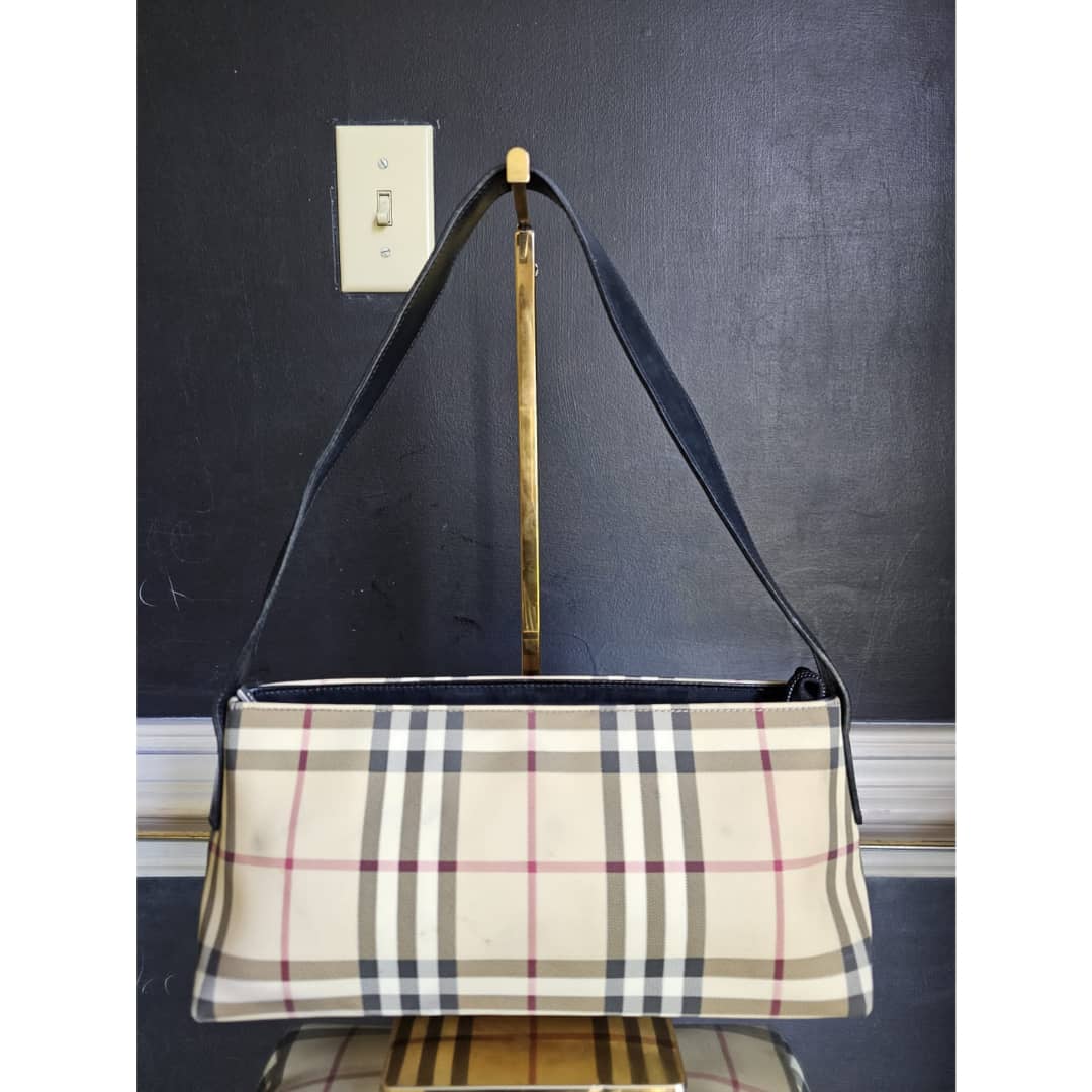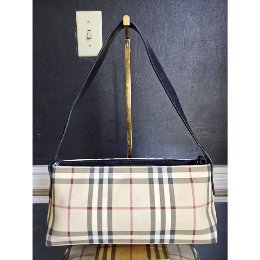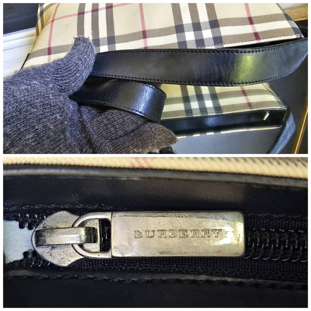 This authentic BURBERRY BAGUETTE BAG BEIGE/BLACK is in it’s good pre-owned condition. The exterior is clean and beautiful. The exterior back shows some little spotted stains, not so obvious (Kindly review pictures above). Interior is clean. Black leather trim and handle is clean.