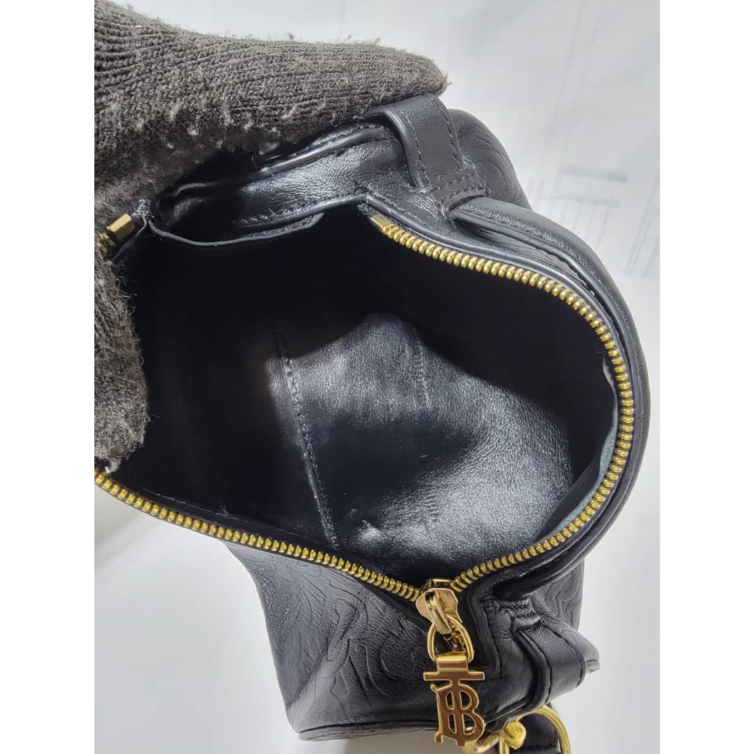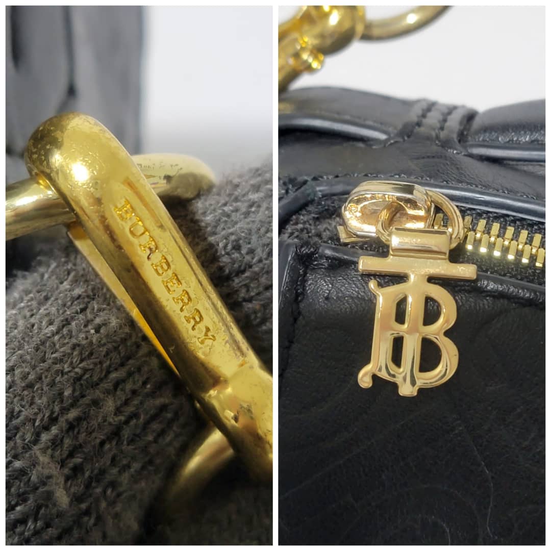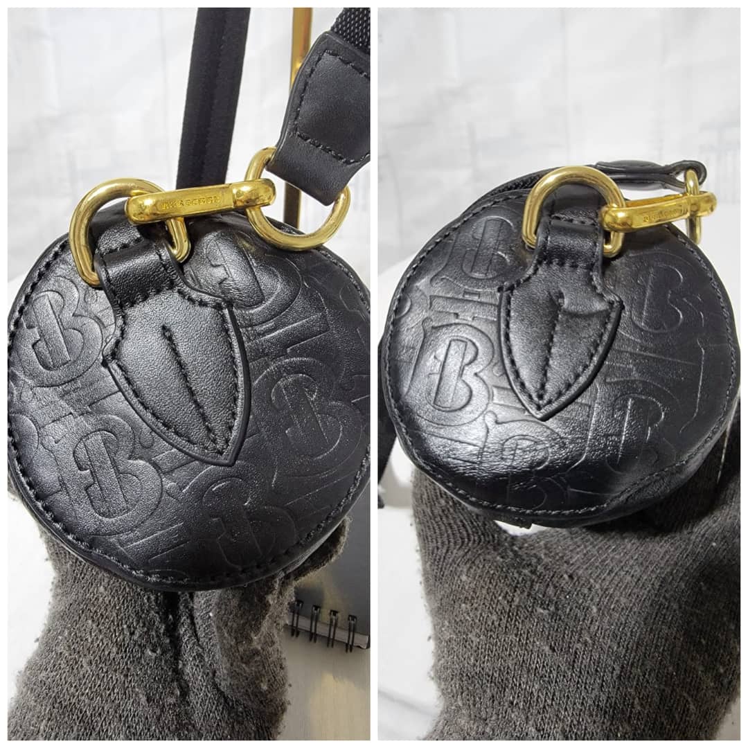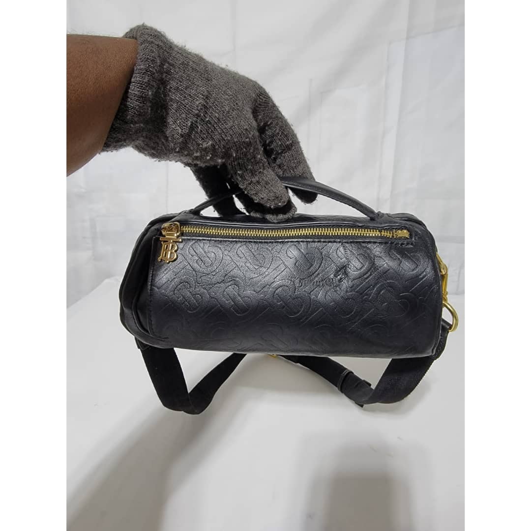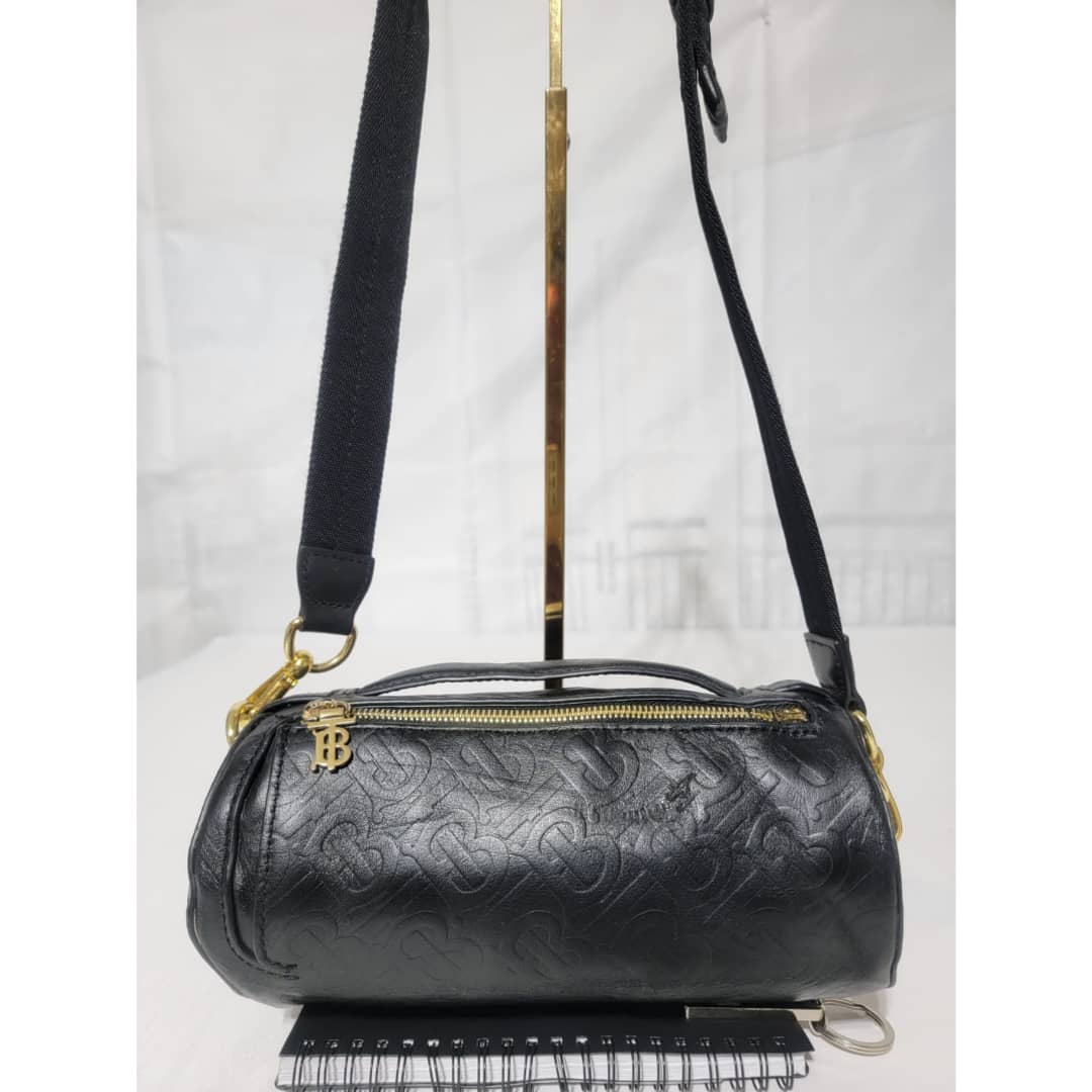 This authentic Burberry Barrel Monogram Bag Black is in it’s good pre-owned condition. The exterior leather is clean and beautiful. Interior is clean. Gold hardware.