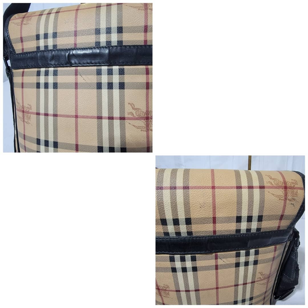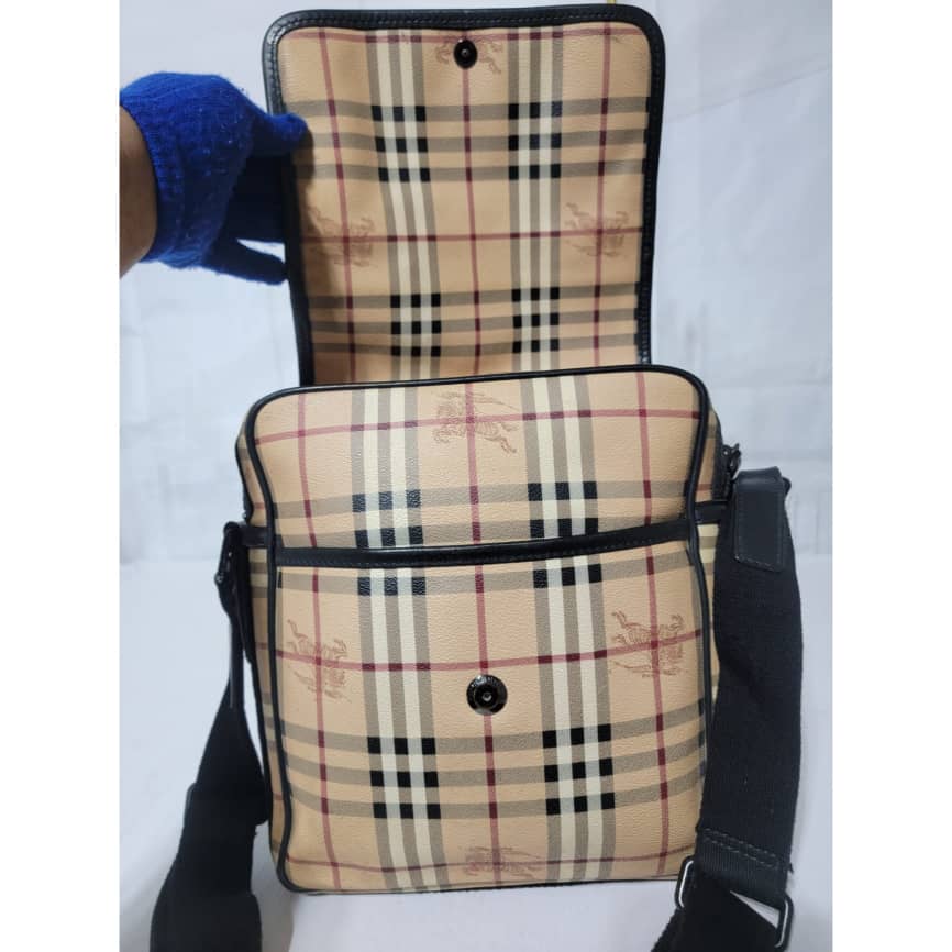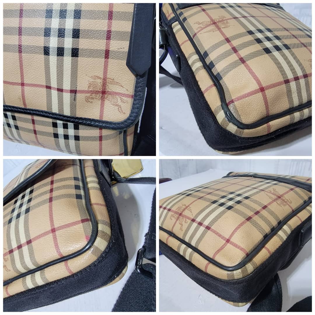 This authentic Burberry Beige/Black Messenger Crossbody Shoulder Bag is in it’s good pre-owned condition. The exterior is clean and beautiful. Tiny open pipe. The interior is clean and beautiful.