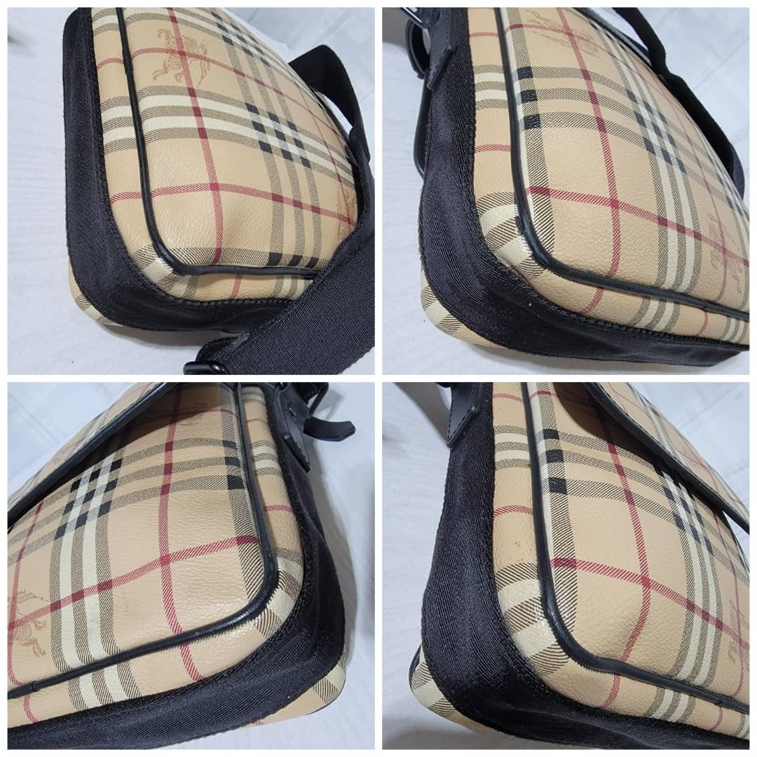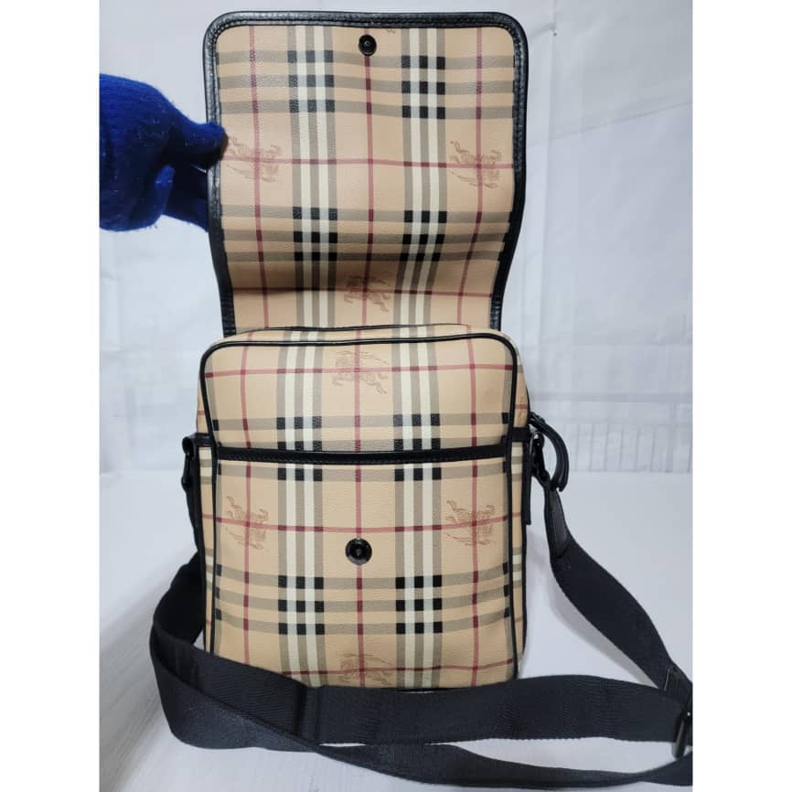 This authentic Burberry Beige/Black Messenger Crossbody Shoulder Bag is in it’s good pre-owned condition. The exterior is clean and beautiful. The interior is clean and beautiful.