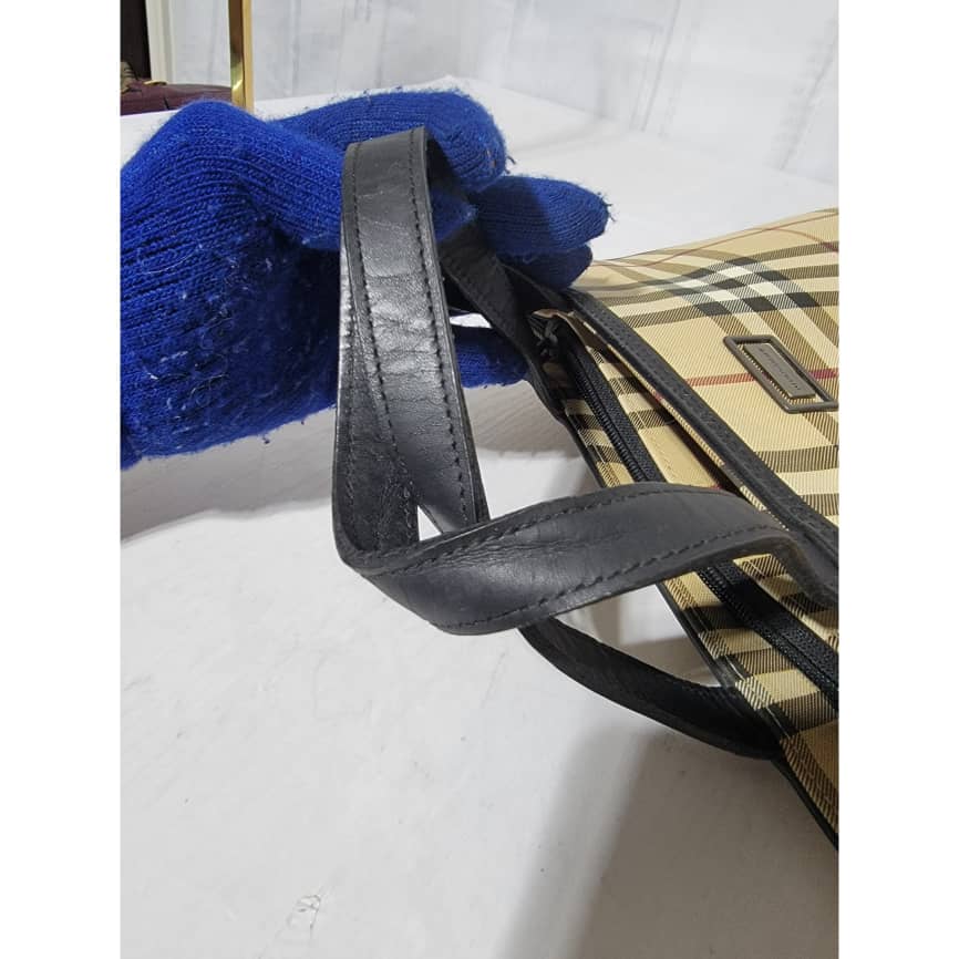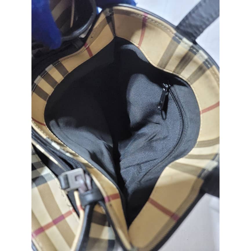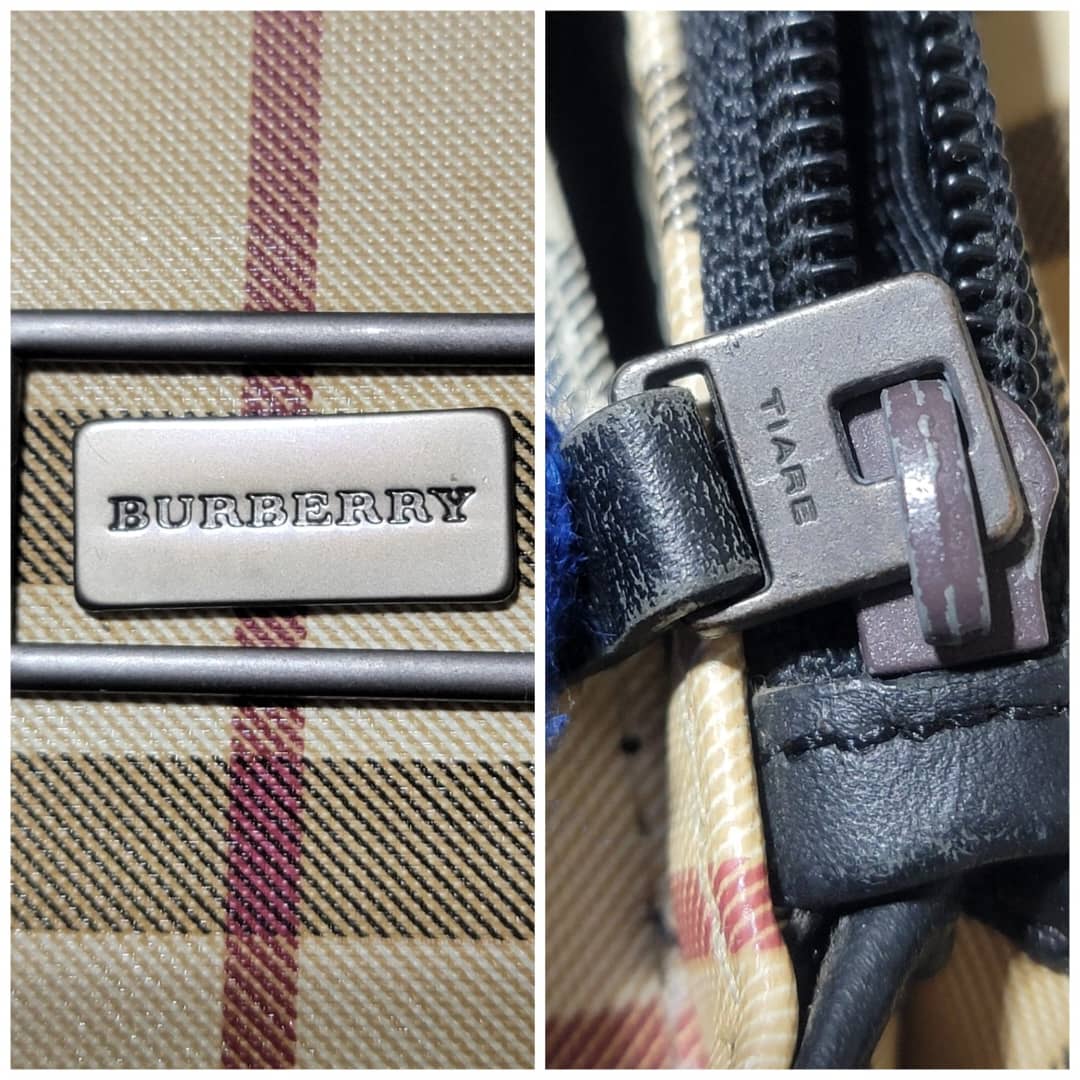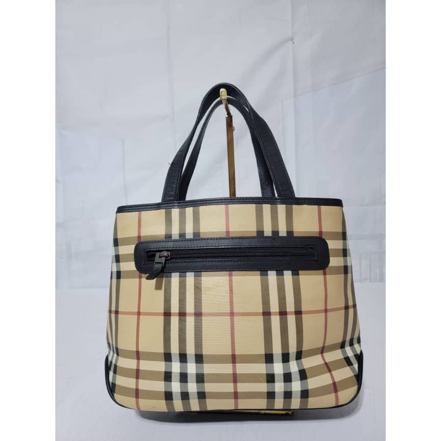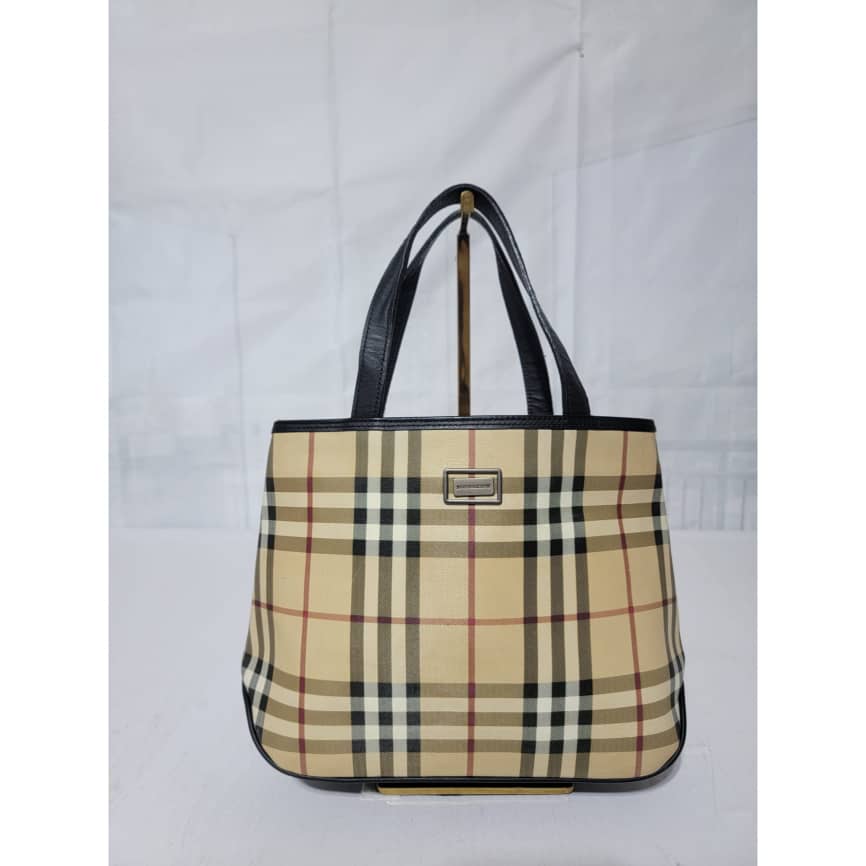 This authentic Burberry Beige/Black Nova Check PVC and Patent Leather Tote is in it’s pre-owned condition. The exterior is clean. Interior is clean. In it’s vintage condition. Date code is missing.