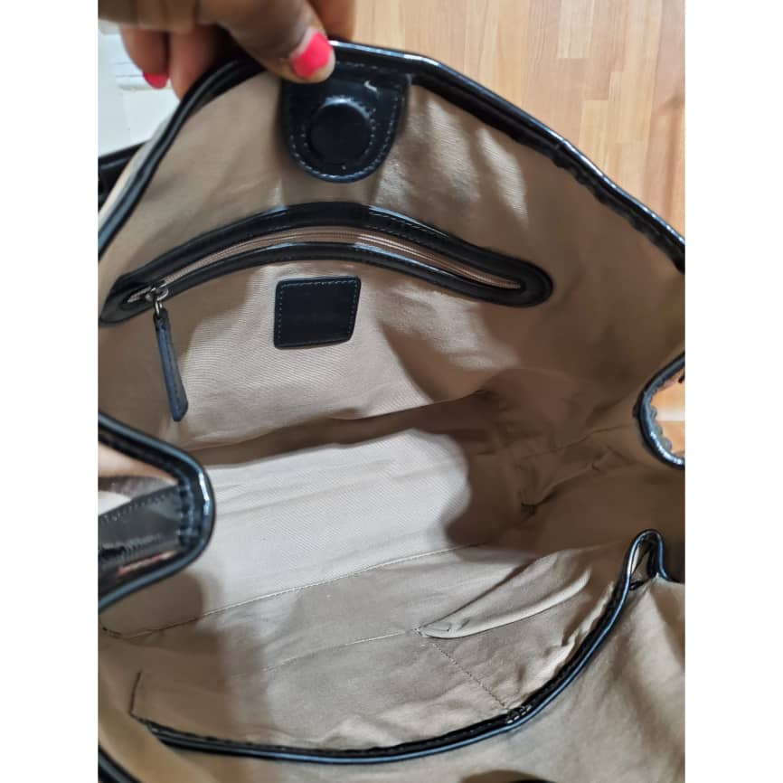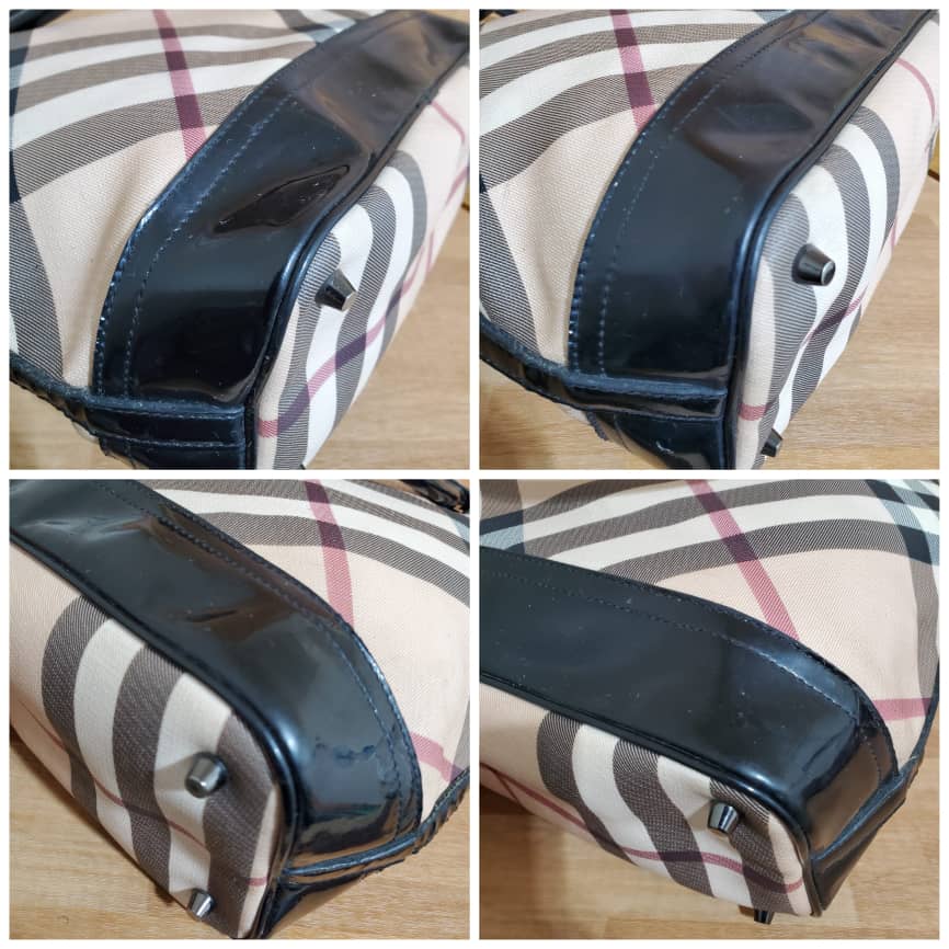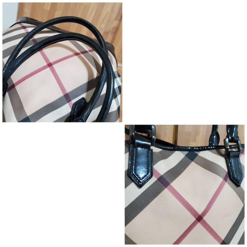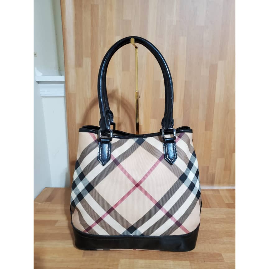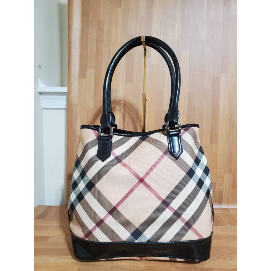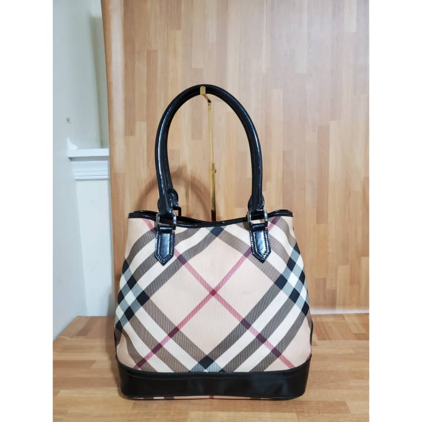 This authentic Burberry Beige/Black Nova Check PVC And Patent Leather Tote is in its pre-owned good condition. The exterior is clean and beautiful. Comes with a matching pouch. Interior is clean . It’s a beautiful Tote Bag and perfect for the season.