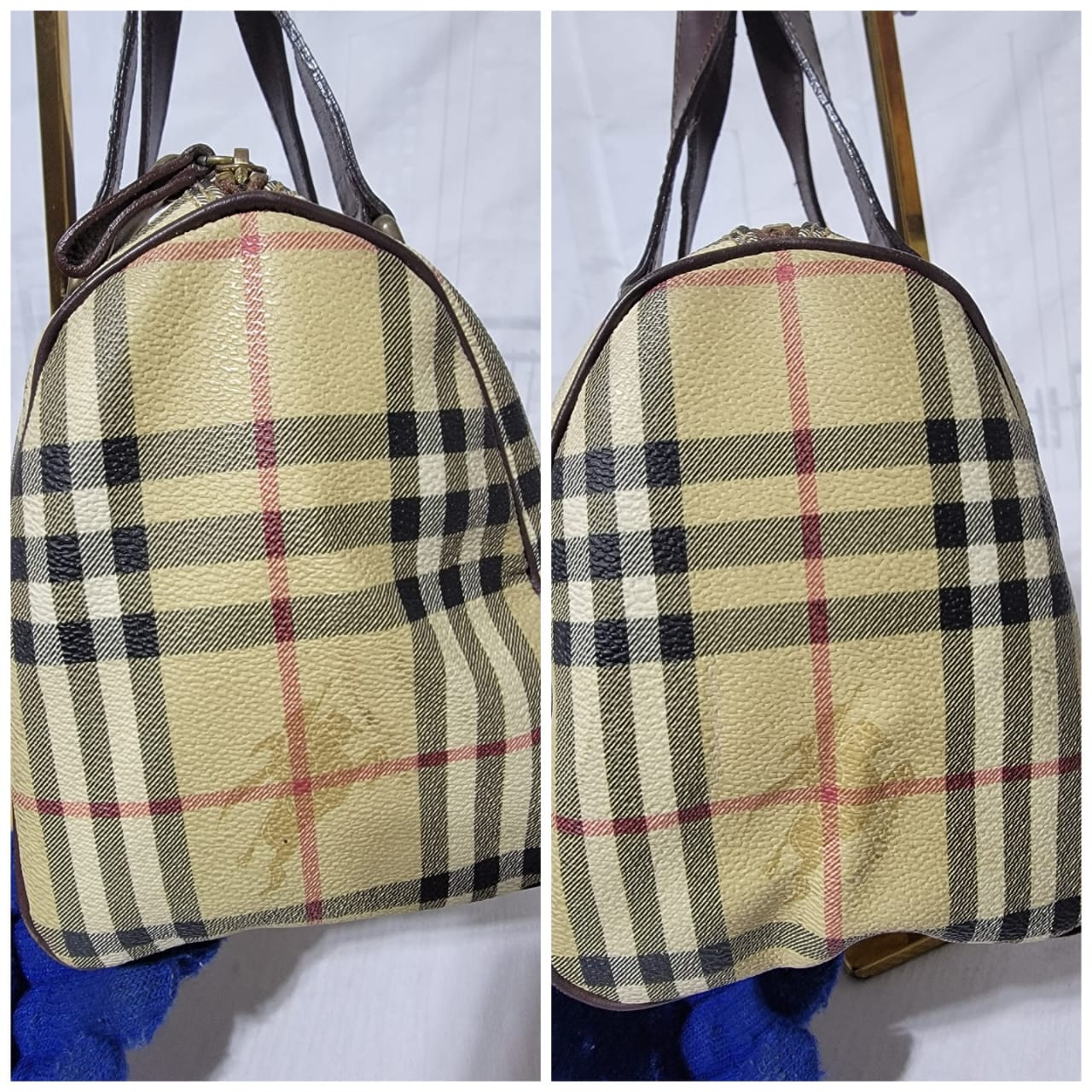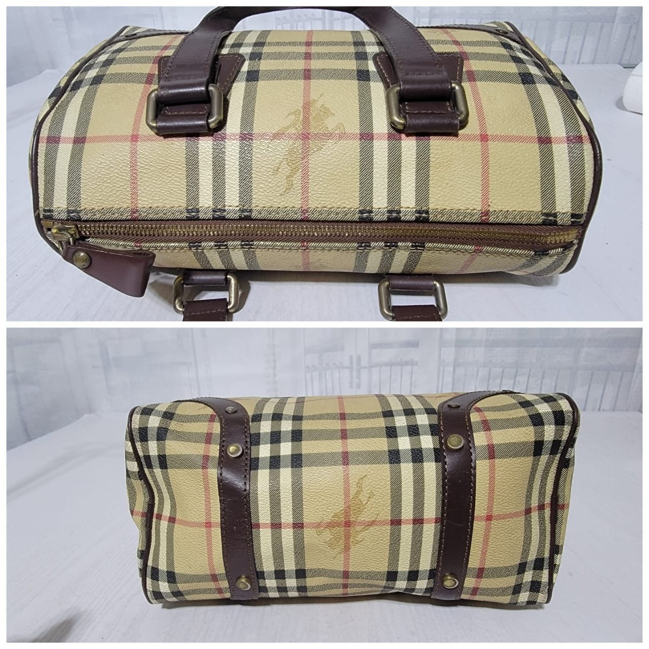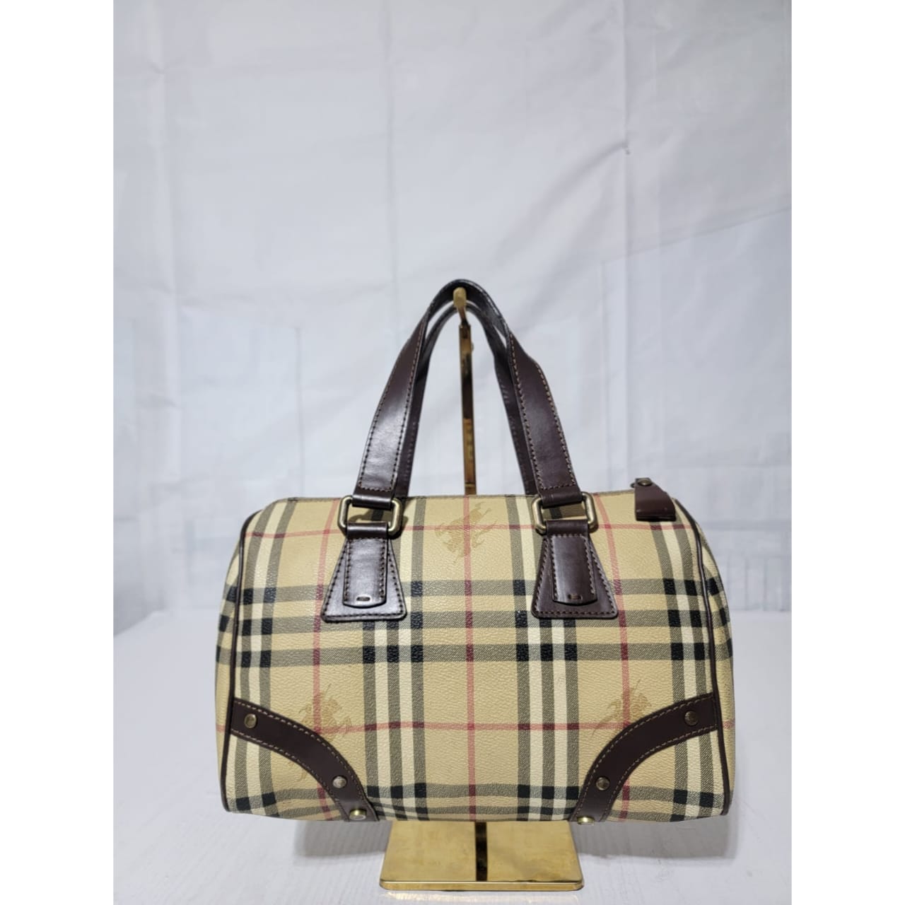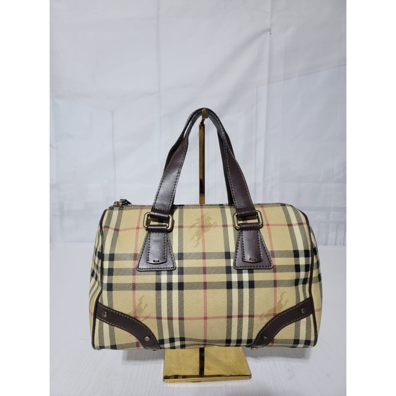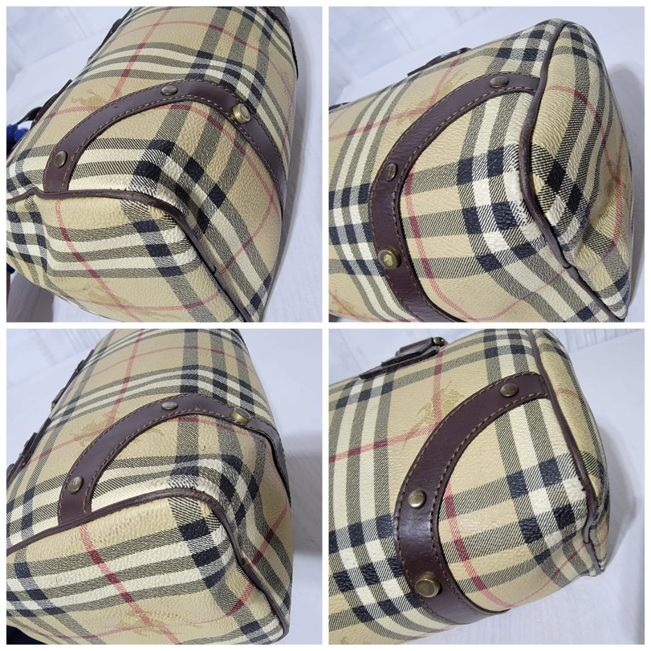 This authentic Burberry Beige Haymarket Check Coated Canvas Boston Small is in it’s good pre-owned condition. The exterior is clean and beautiful. The interior is clean.