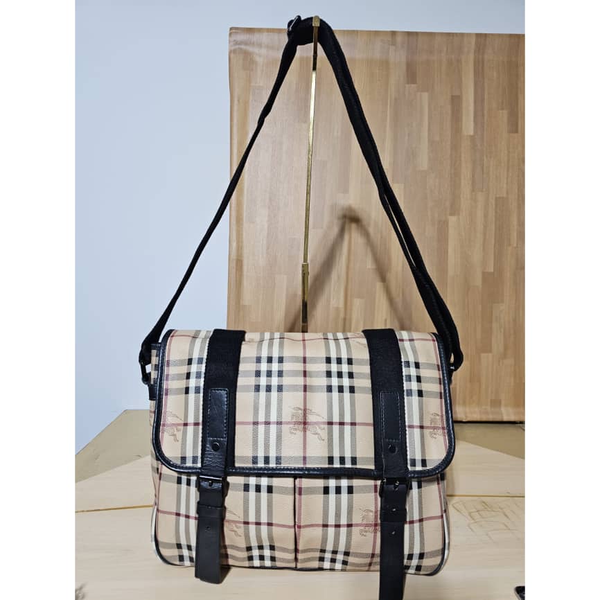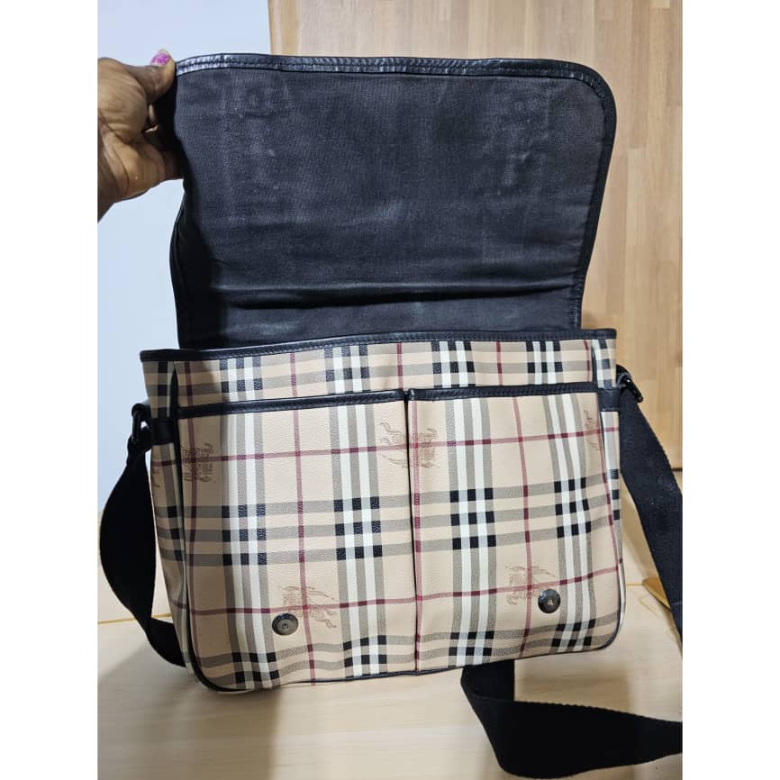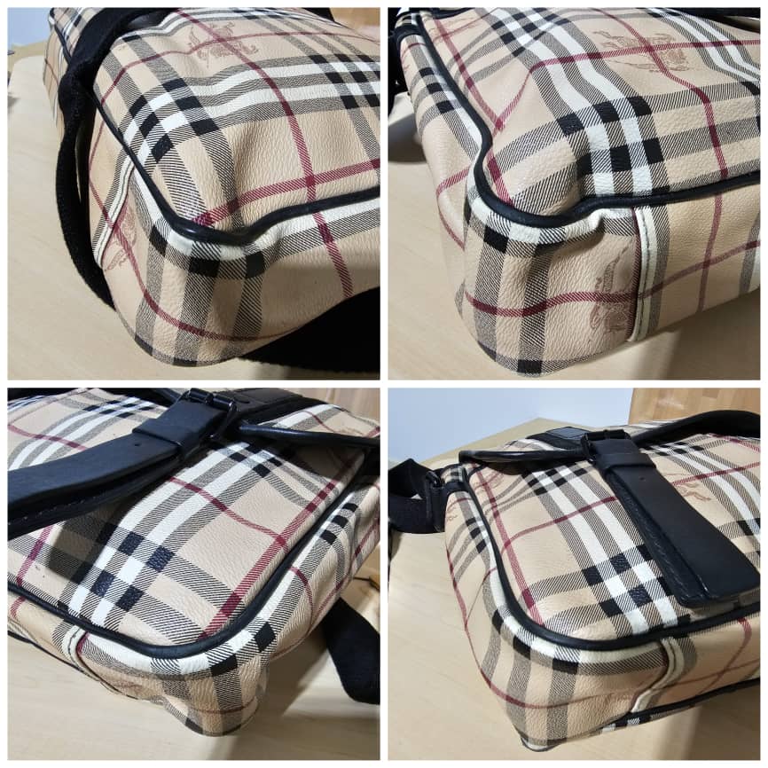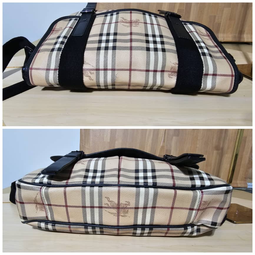 This authentic Burberry Bicolor Haymarket Messenger Bag is in it’s pre-owned good condition. The exterior canvas is clean, the interior is clean too. The exterior flap has a little cut at the top, kindly refer to pictures above.
