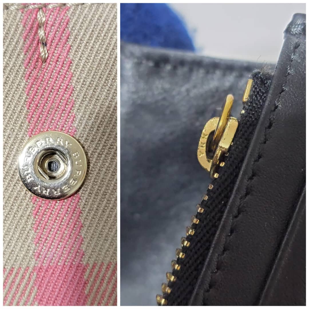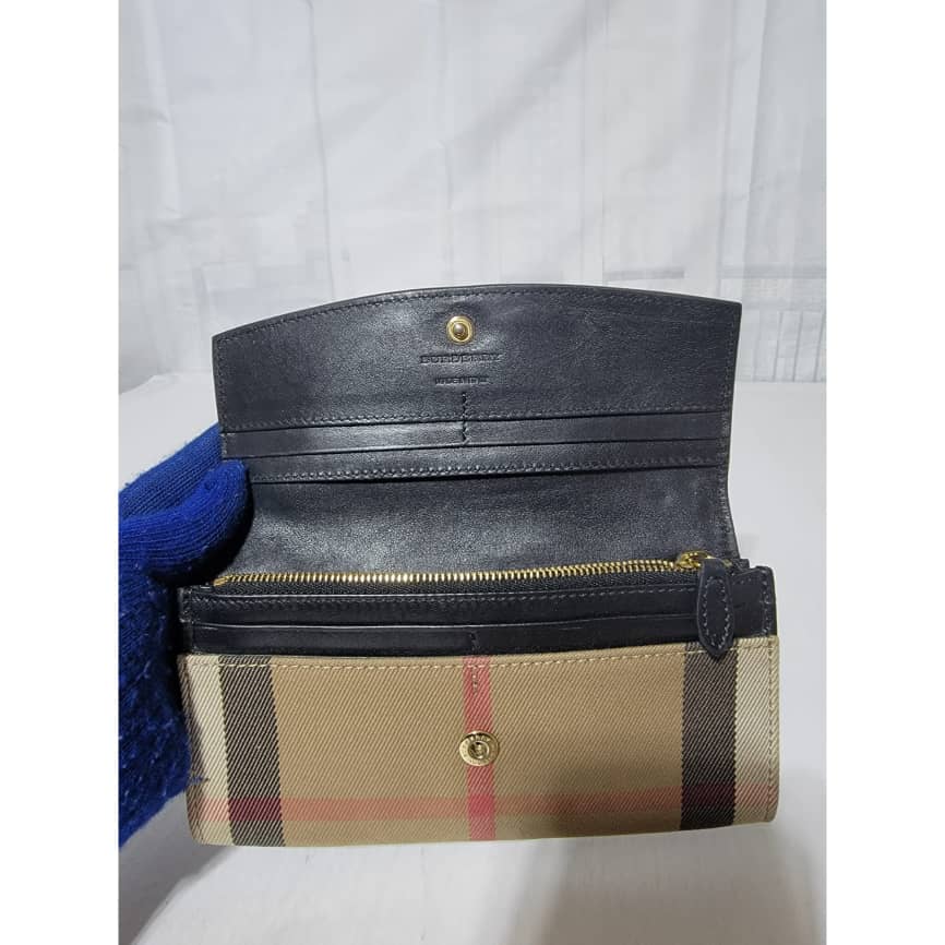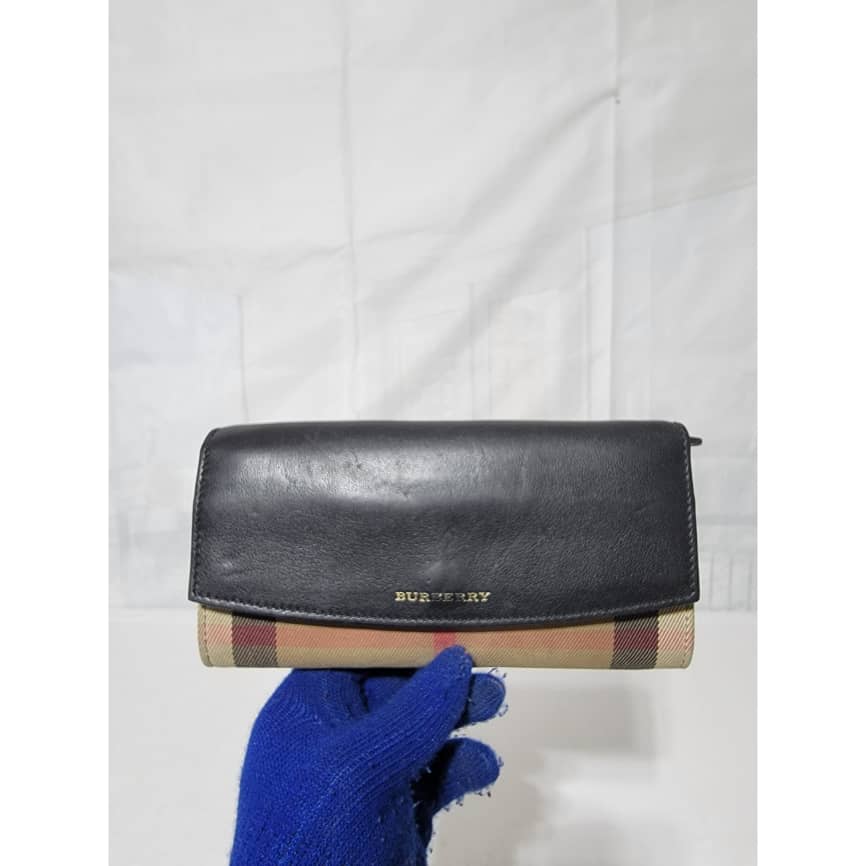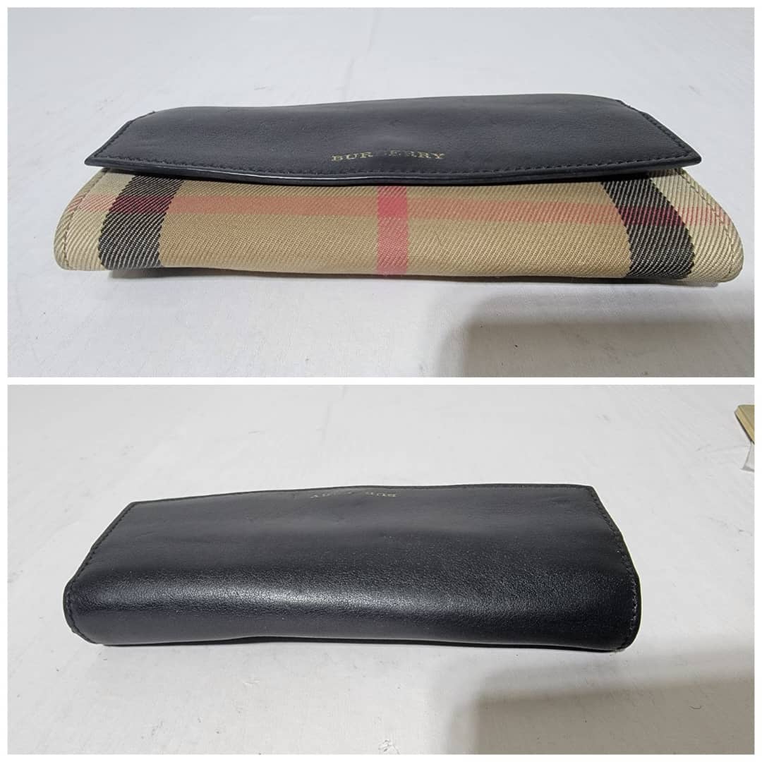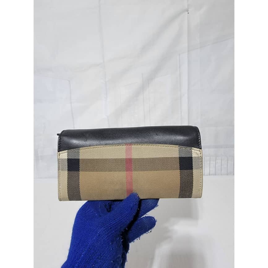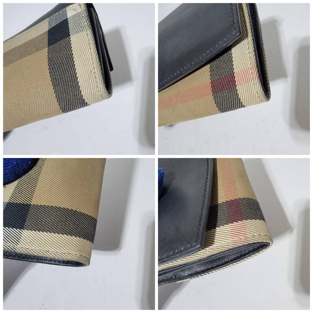 This authentic BURBERRY Calfskin House Check Porter Continental Wallet Black is in it’s good pre-owned condition the exterior is clean and beautiful. Slight fade on the Burberry logo on the flap.
