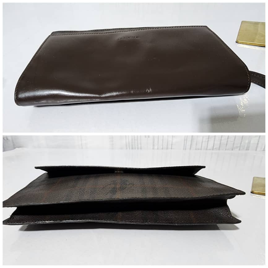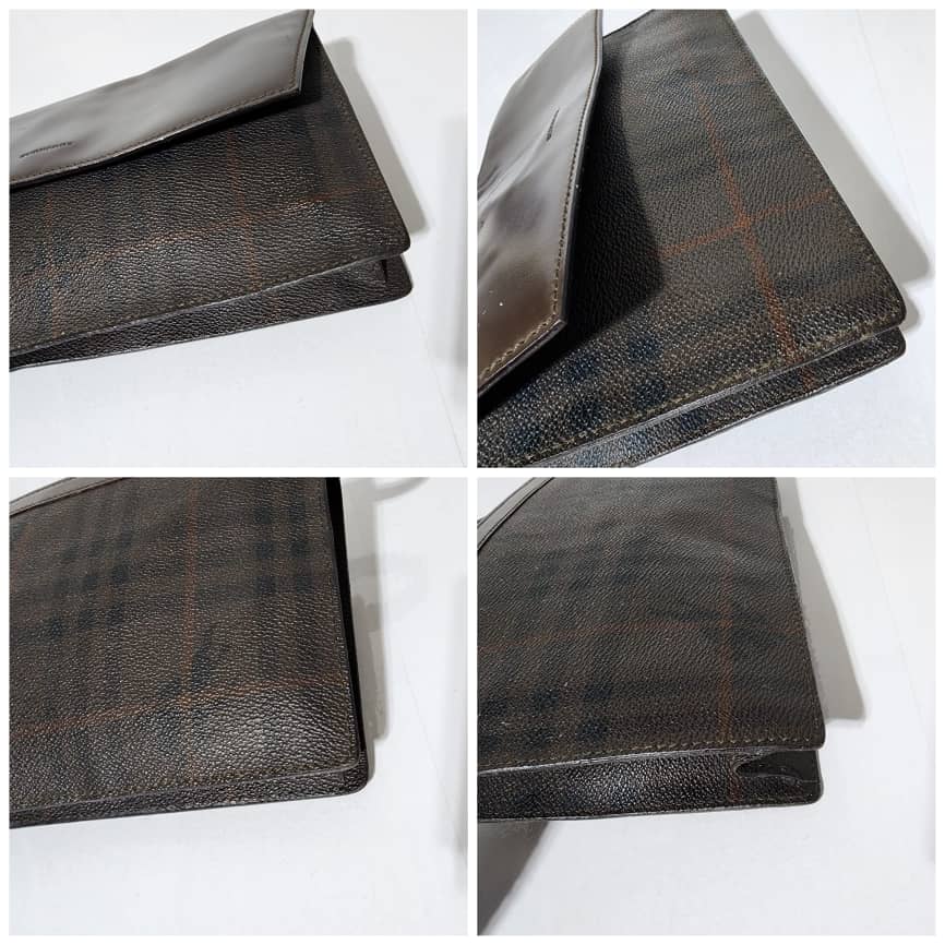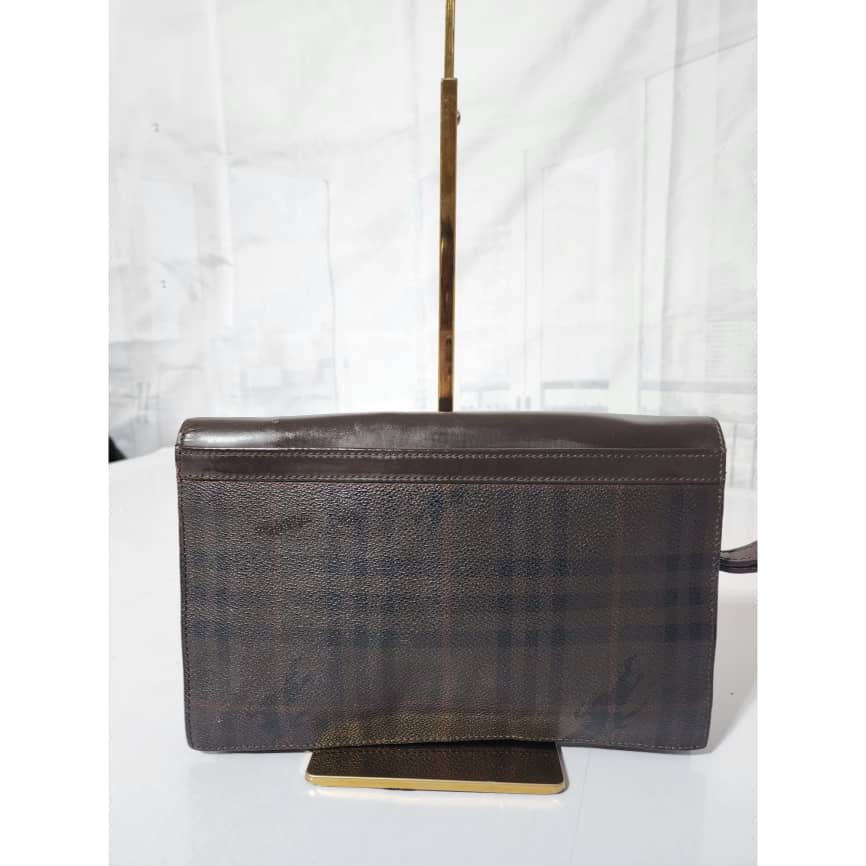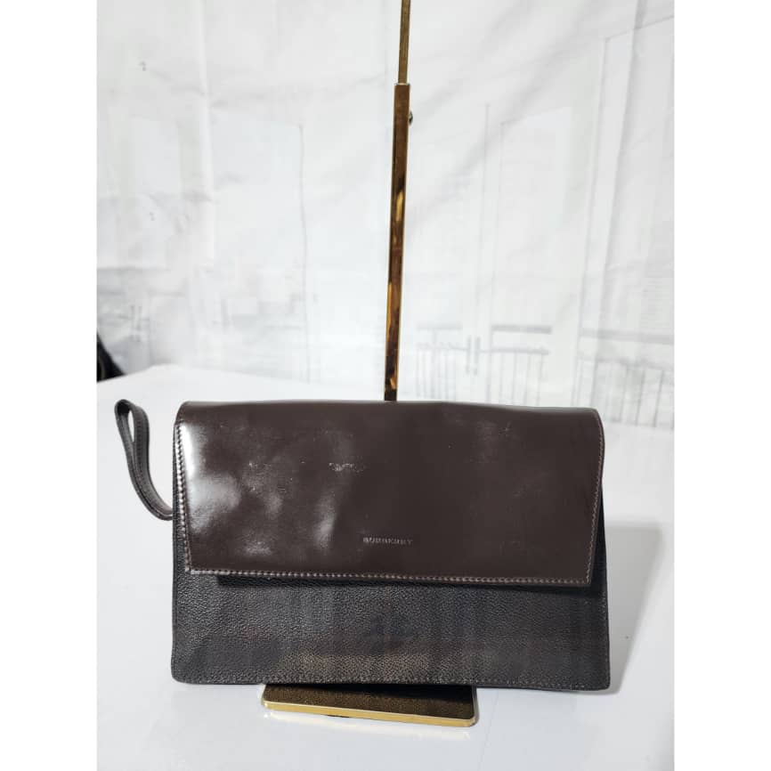 This authentic Burberry Canvas and Leather Clutch/Wristlet Dark Brown is in itβs good pre-owned condition. The exterior is clean and beautiful. Interior is clean. It can be worn as a wristlet, it can also be worn as a crossbody bag when a chain is ran over the flap.