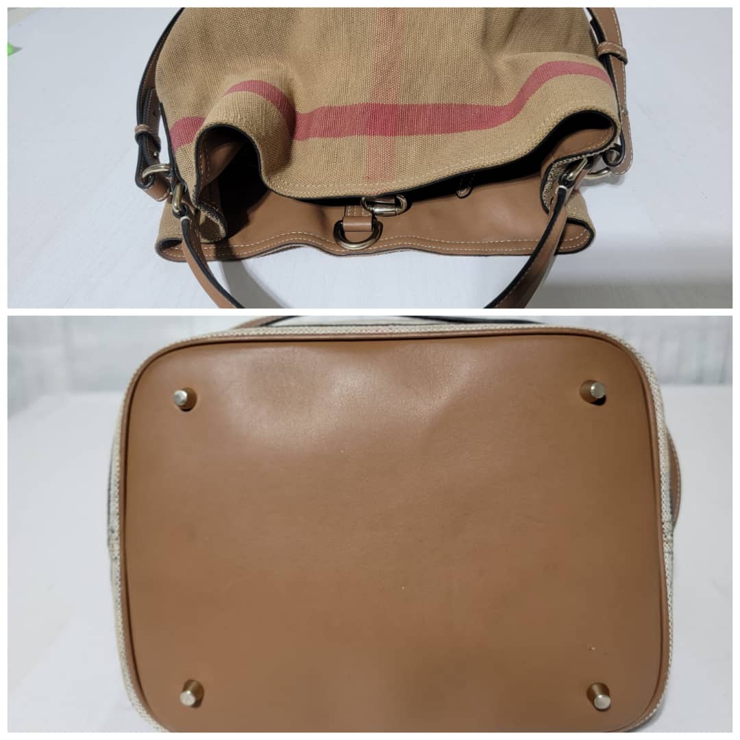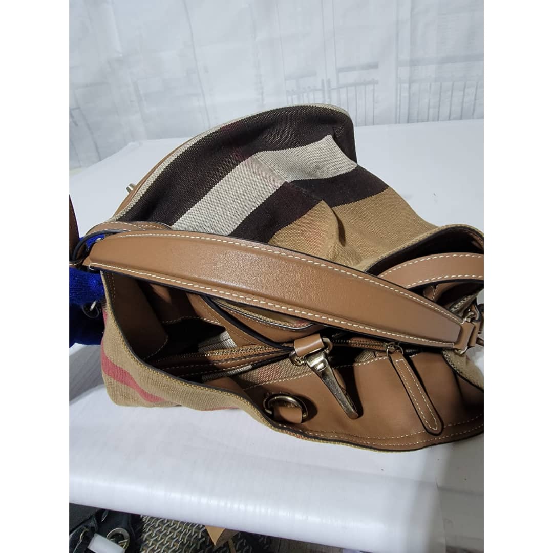 This authentic Burberry Check Canvas and Leather Medium Ashby Hobo Satchel Bag is in it’s good pre-owned condition. The exterior is clean and beautiful. Interior is clean. It comes with a little purse inside the bag.