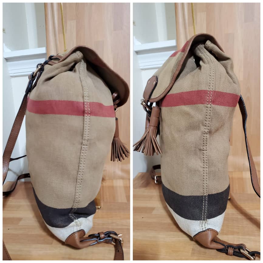 This authentic BURBERRY Chiltern Brit Mega Check Backpack Tan is in it’s pre-owned good condition.has sign of use. The exterior canvas is clean and beautiful .interior is clean .