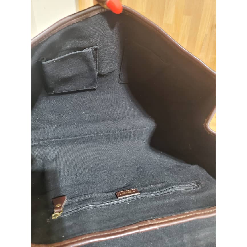 Interior: The interior is clean. The interior features one zipper pocket and two open pockets.