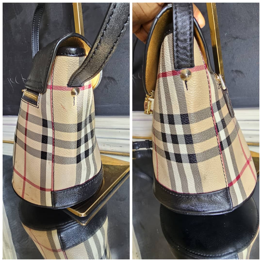 This authentic Burberry small Denyard Plaid Bucket Bag is in it’s good pre-owned condition. The exterior canvas and leather is clean and beautiful. Interior is clean. Gold hardware.