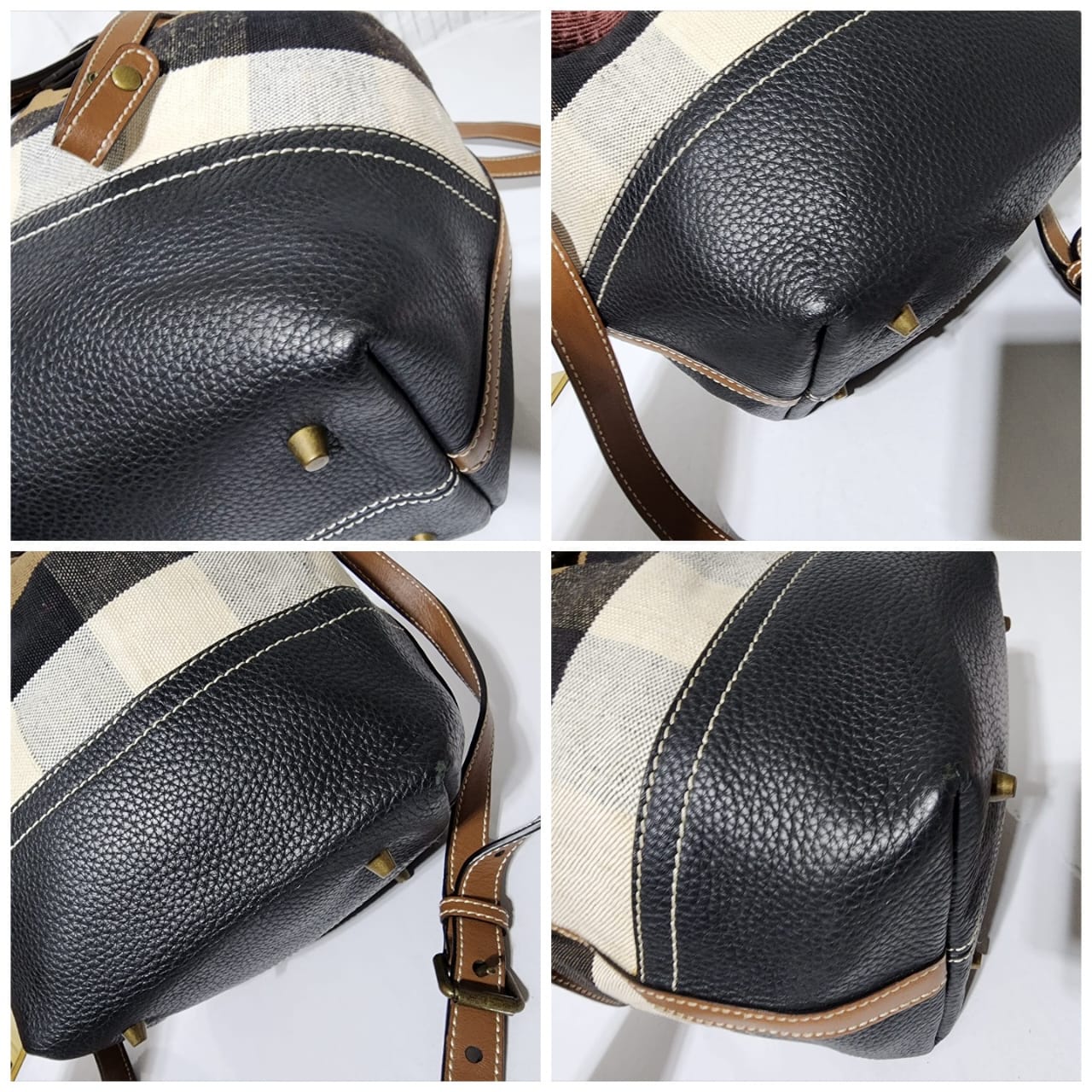 This authentic BURBERRY Grainy Calfskin House Check Canvas Small Heston Crossbody Beige/Black is in it’s good pre-owned condition. The exterior is clean. Interior is clean. There is no mini pouch.