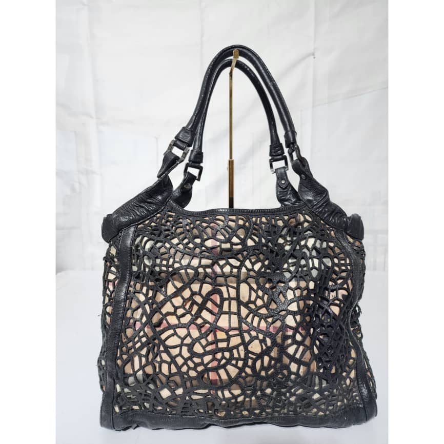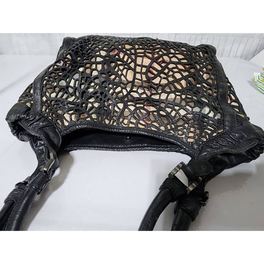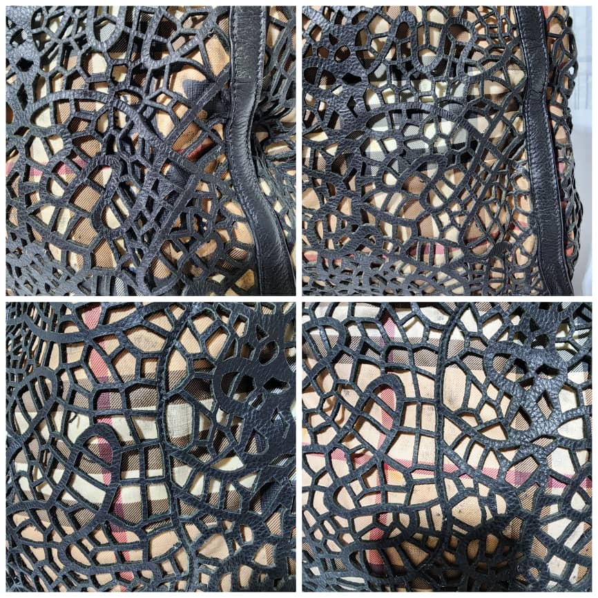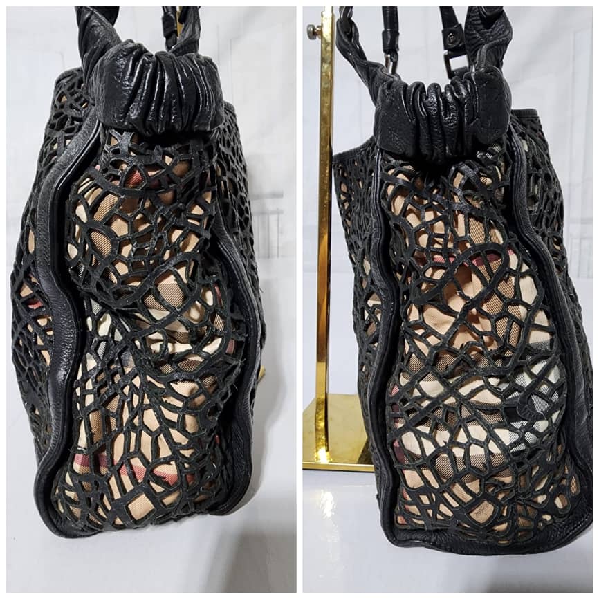 This authentic Burberry Haymarket Check and Cutout Leather Tote Bag Black/Beige is in it’s good pre-owned condition. The exterior is clean, the black leather is clean however, the Haymarket check leather behind the black leather shows sign of stain from the black leather (Kindly look at pictures above). Interior is clean.