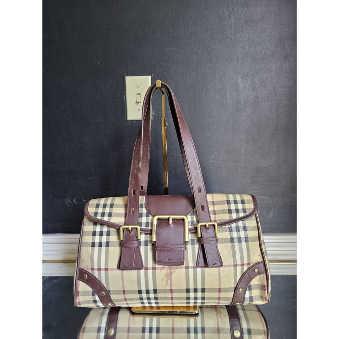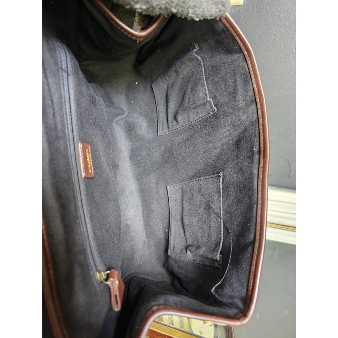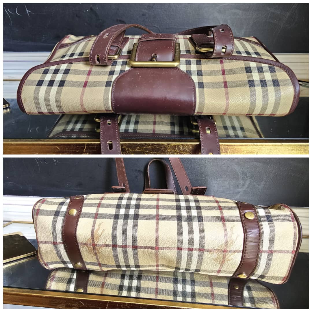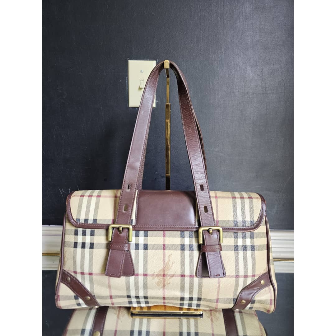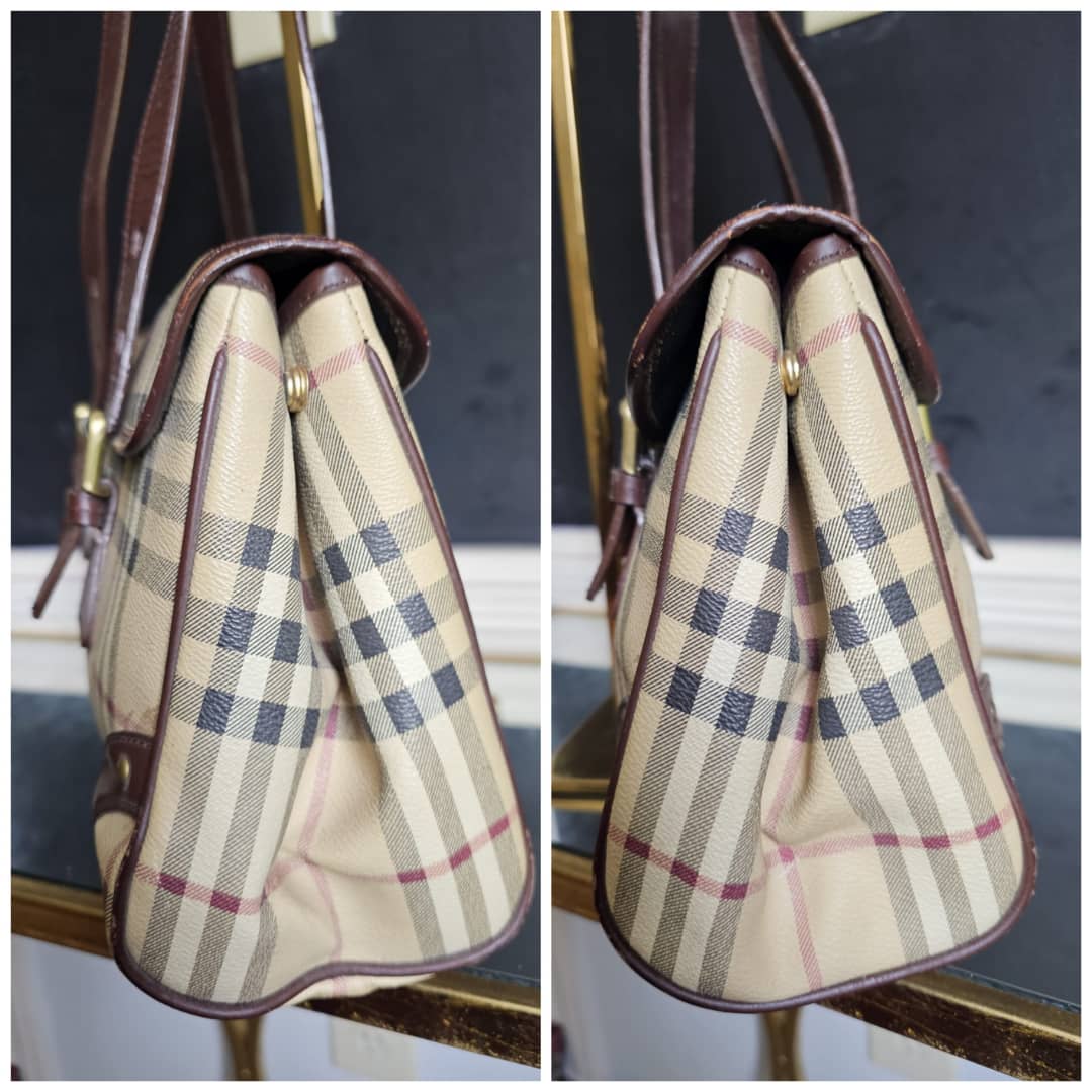 This authentic Burberry Haymarket Check Coated Canvas and Leather Flap Handbag Brown is in it’s good pre-owned condition. The exterior coated canvas is clean and beautiful. Interior is clean. Beautiful bag.