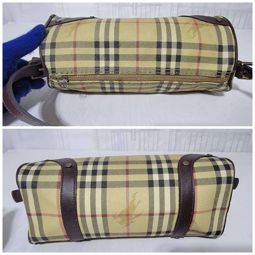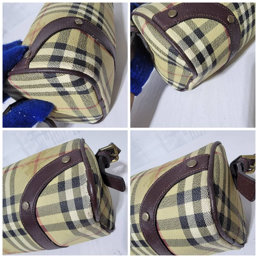 This authentic Burberry Haymarket Check Coated Canvas and Leather Trim Boston Shoulder Bag Brown/Beige is in it’s pre-owned condition. The exterior is clean. Interior is clean. The shoulder strap has 3 buckle holes, it can be adjusted to be tighter and it can be adjusted to be a bit free on the shoulder. Kindly note that the outer zipper pull itself is changed to an ordinary zipper pull because the original pull was broken.