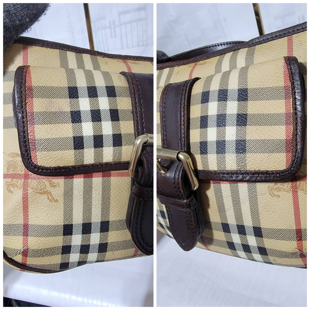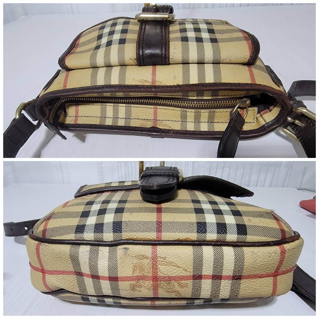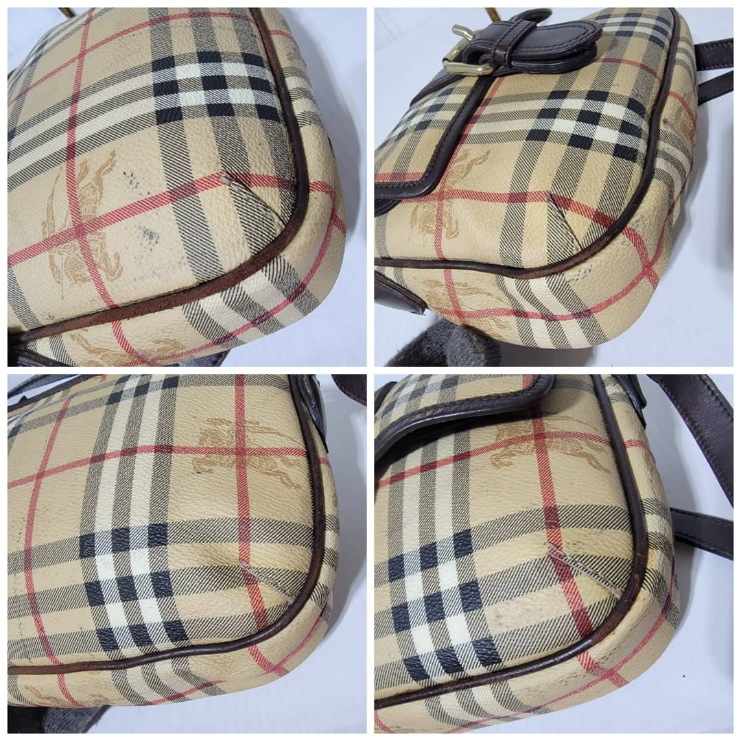 This authentic BURBERRY Haymarket Check Coated Canvas Crossbody Bag Beige/Brown is in it’s good pre-owned condition. The exterior is clean, it shows sign of use. The brown leather trim that runs across the bag shows some wear,scratches and scuffing to the leather (Kindly look at pictures above). The haymarket check leather shows some dotted dark stains. Kindly look at pictures to see all the kinds of wear. It can be worn as a crossbody/ shoulder bag. Interior is clean.