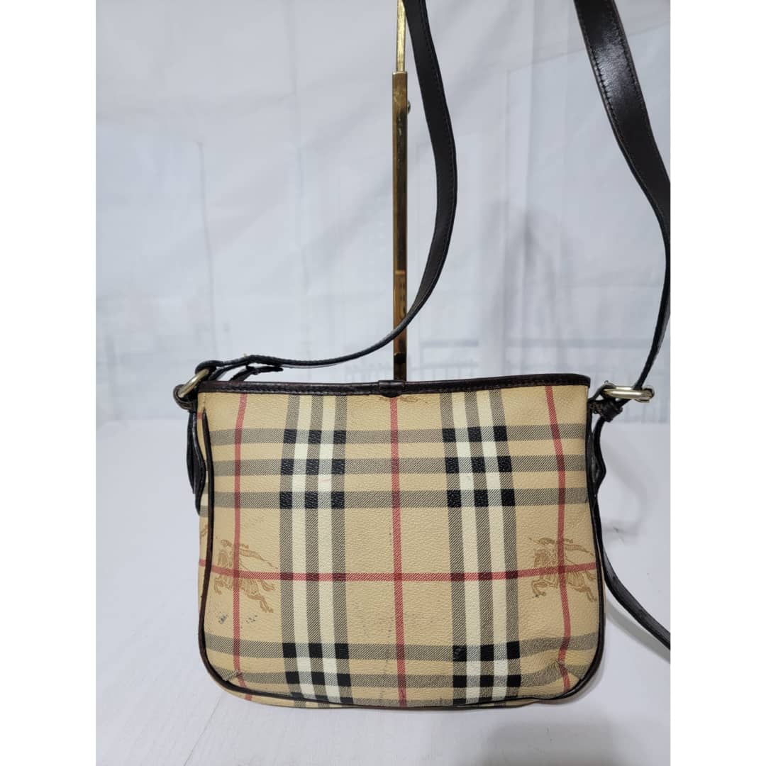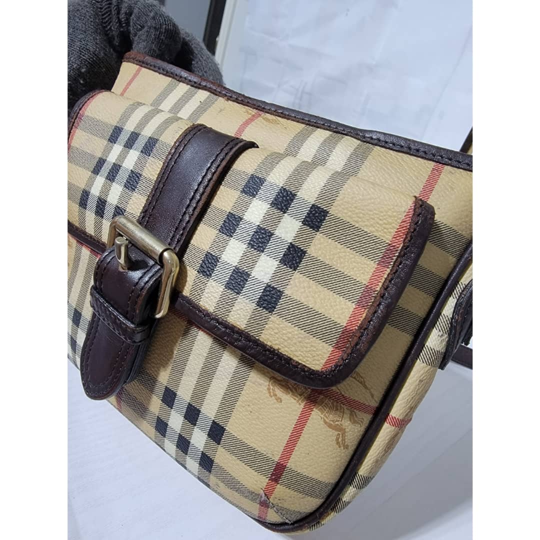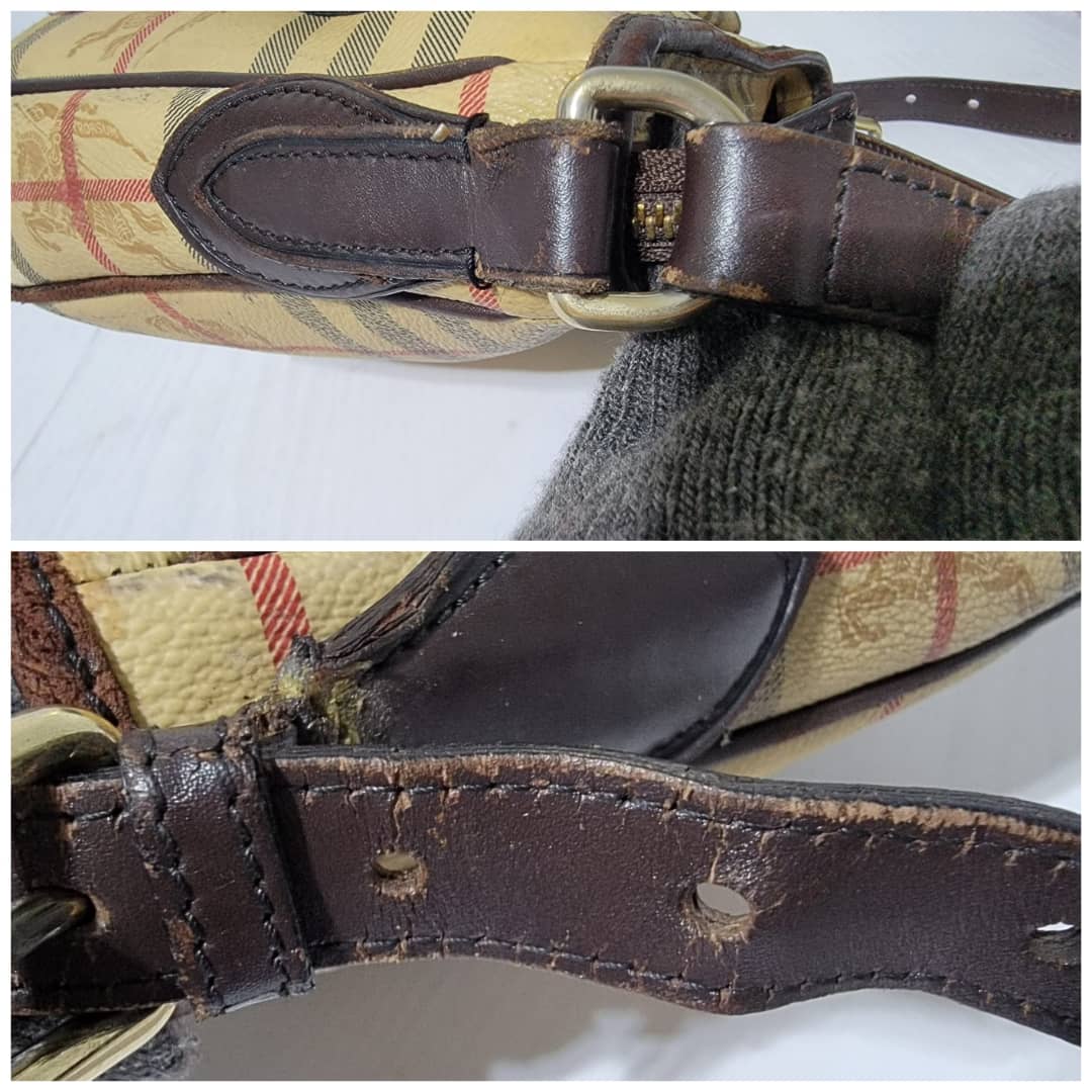 This authentic BURBERRY Haymarket Check Coated Canvas Crossbody Bag Beige/Brown is in it’s good pre-owned condition. The exterior is clean, it shows sign of use. The brown leather trim that runs across the bag shows some wear,scratches and scuffing to the leather (Kindly look at pictures above). The haymarket check leather shows some dotted dark stains. Kindly look at pictures to see all the kinds of wear. It can be worn as a crossbody/ shoulder bag. Interior is clean.