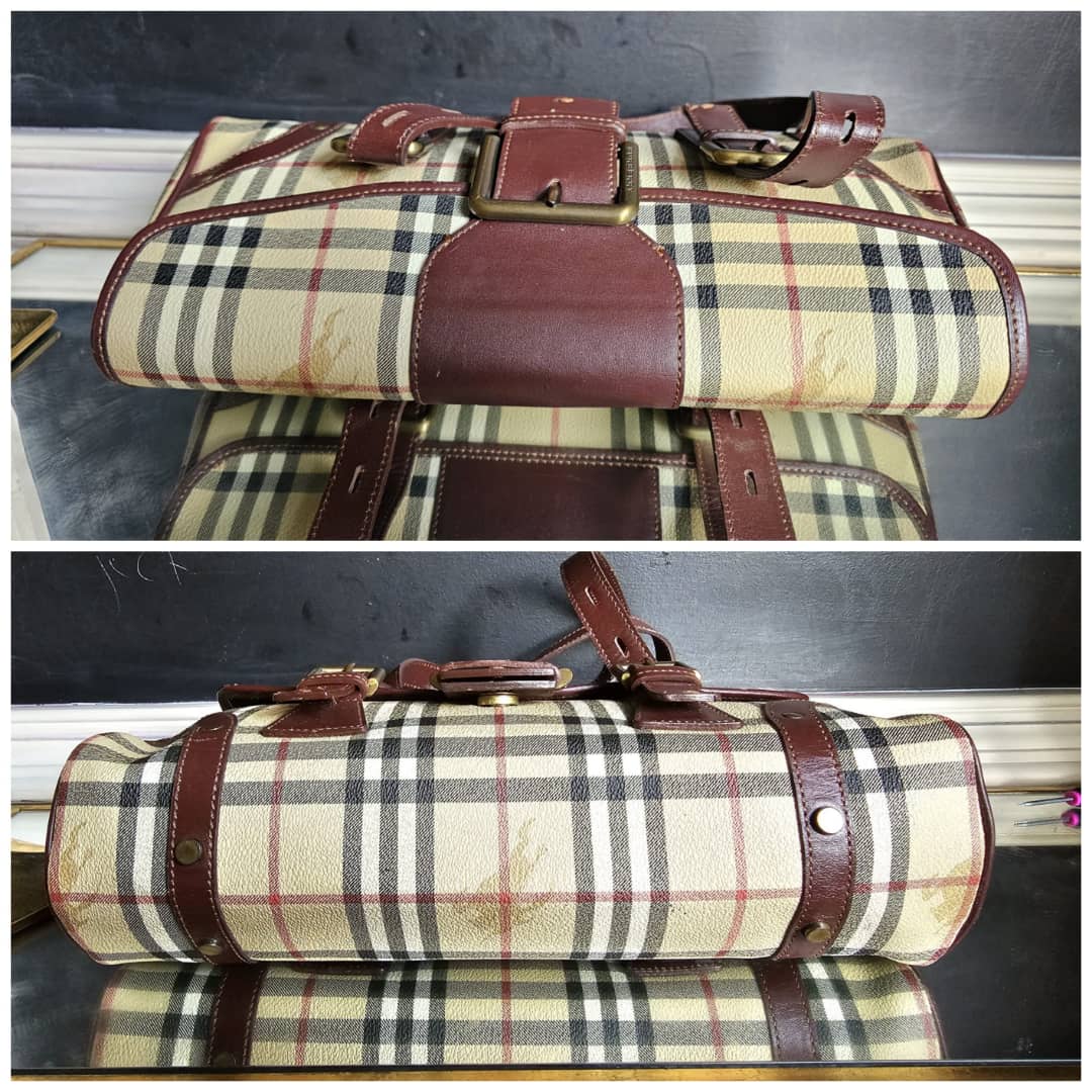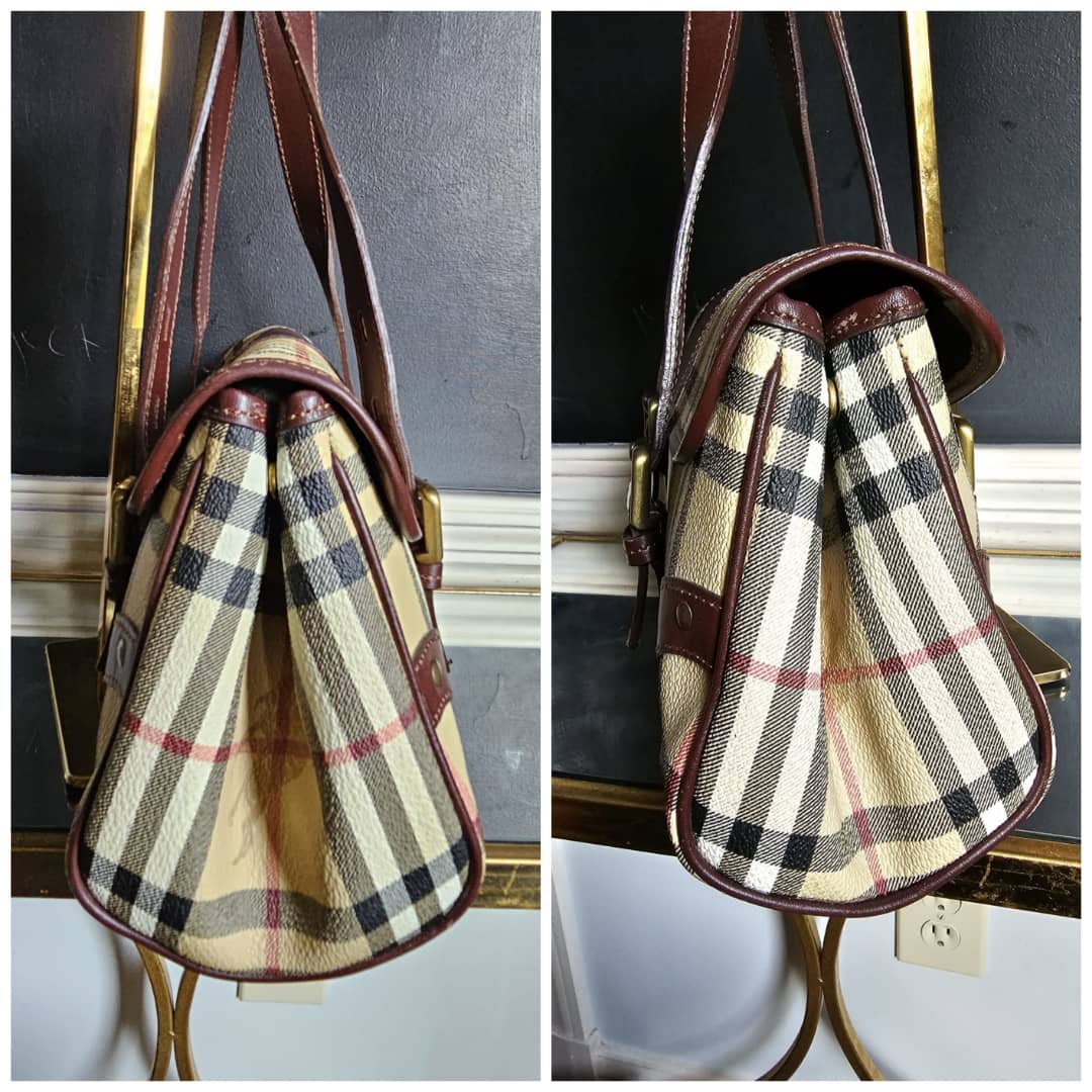 This authentic Burberry Haymarket Check Flap Shoulder Bag Brown/Beige is in it’s good pre-owned condition. The exterior canvas and leather is clean and beautiful. Interior is clean. Gold hardware.