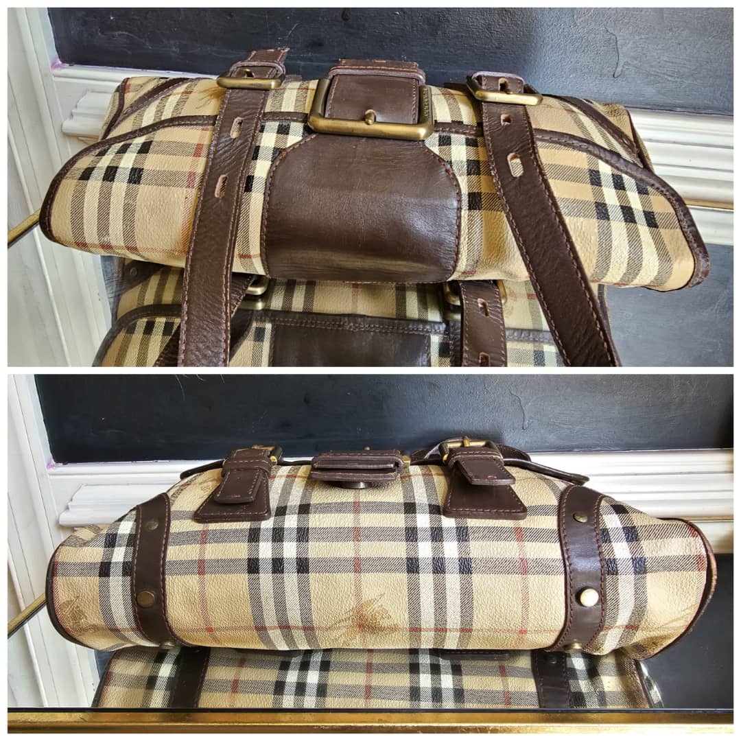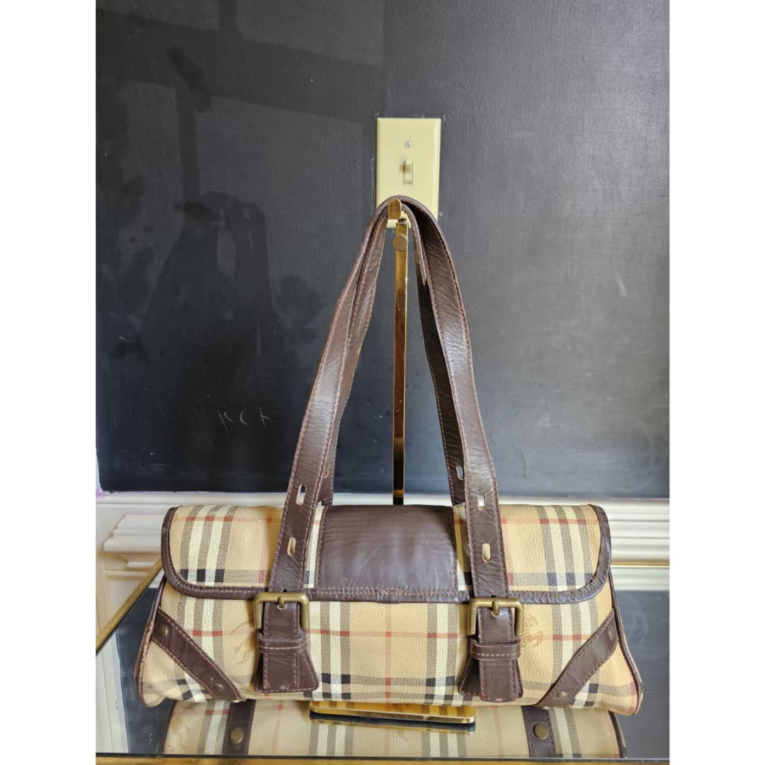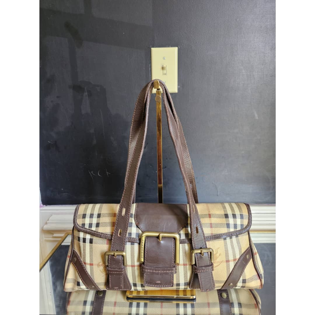 This authentic Burberry Haymarket Check Flap Shoulder Bag Brown/Beige is in it’s good pre-owned condition. The exterior canvas and leather is clean and beautiful, base edges shows some scratches. Interior is clean. Gold hardware.