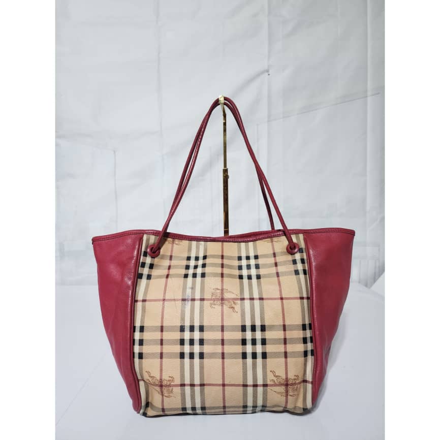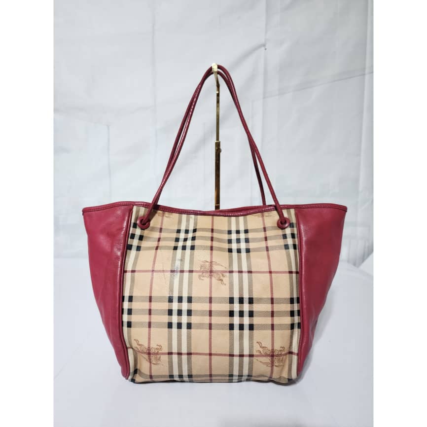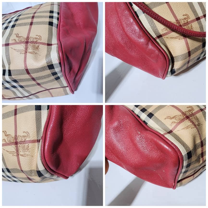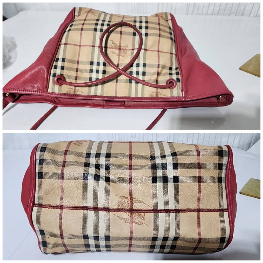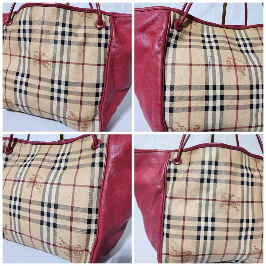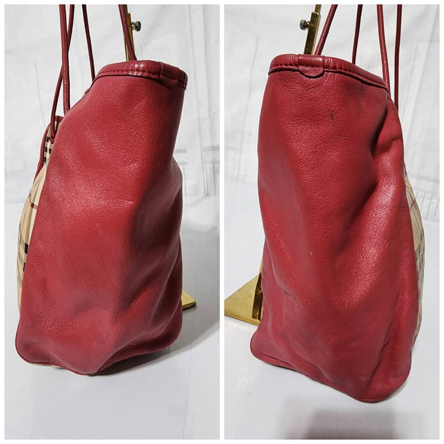 Haymarket Check Small Knots Canterbury Tote Bag Pink/Beige is in it’s pre-owned condition. The exterior is clean however, it shows sign of color transfer. The interior is clean however, it shows sign of fading to the interior lining. This bag shows sign of wear (Kindly look at pictures above).