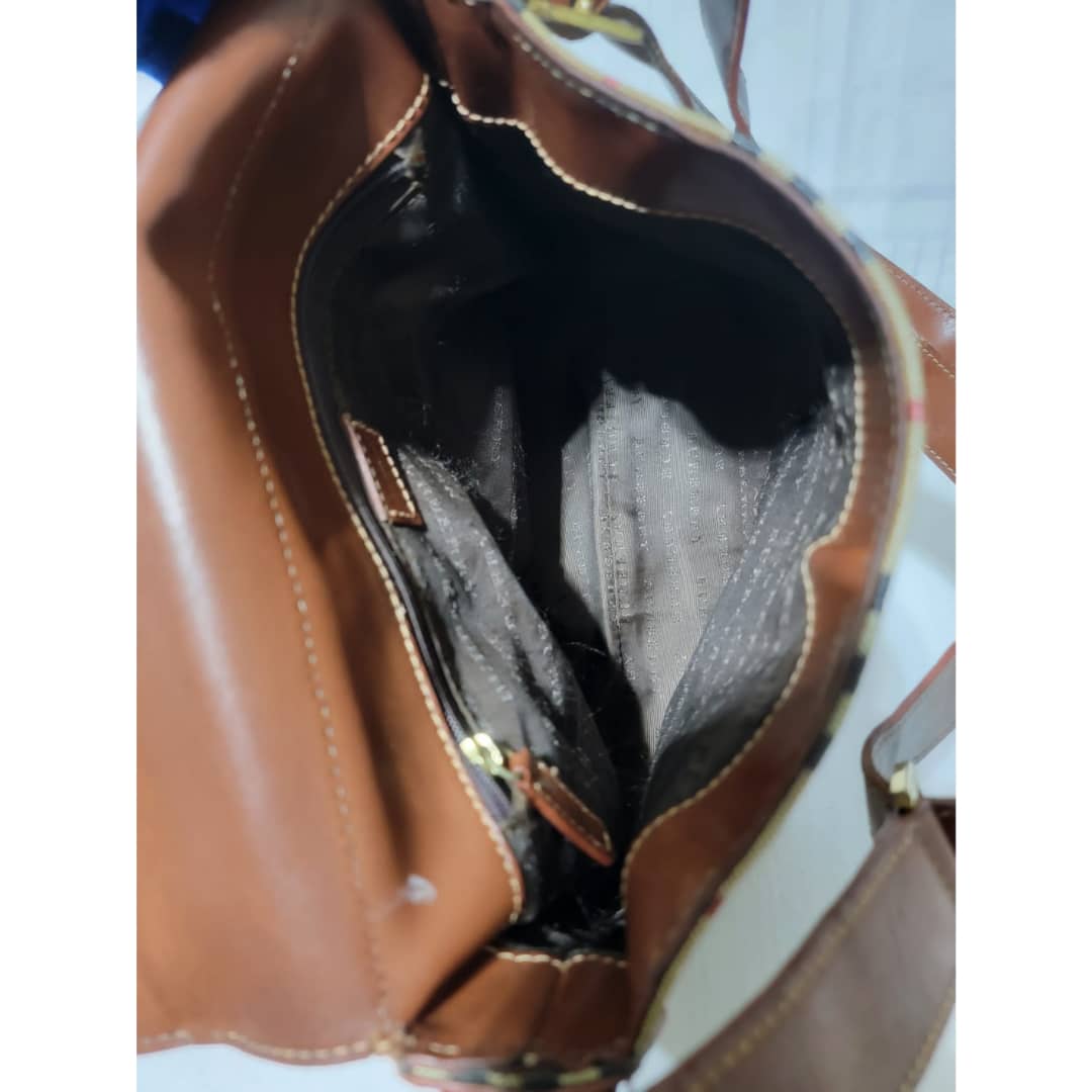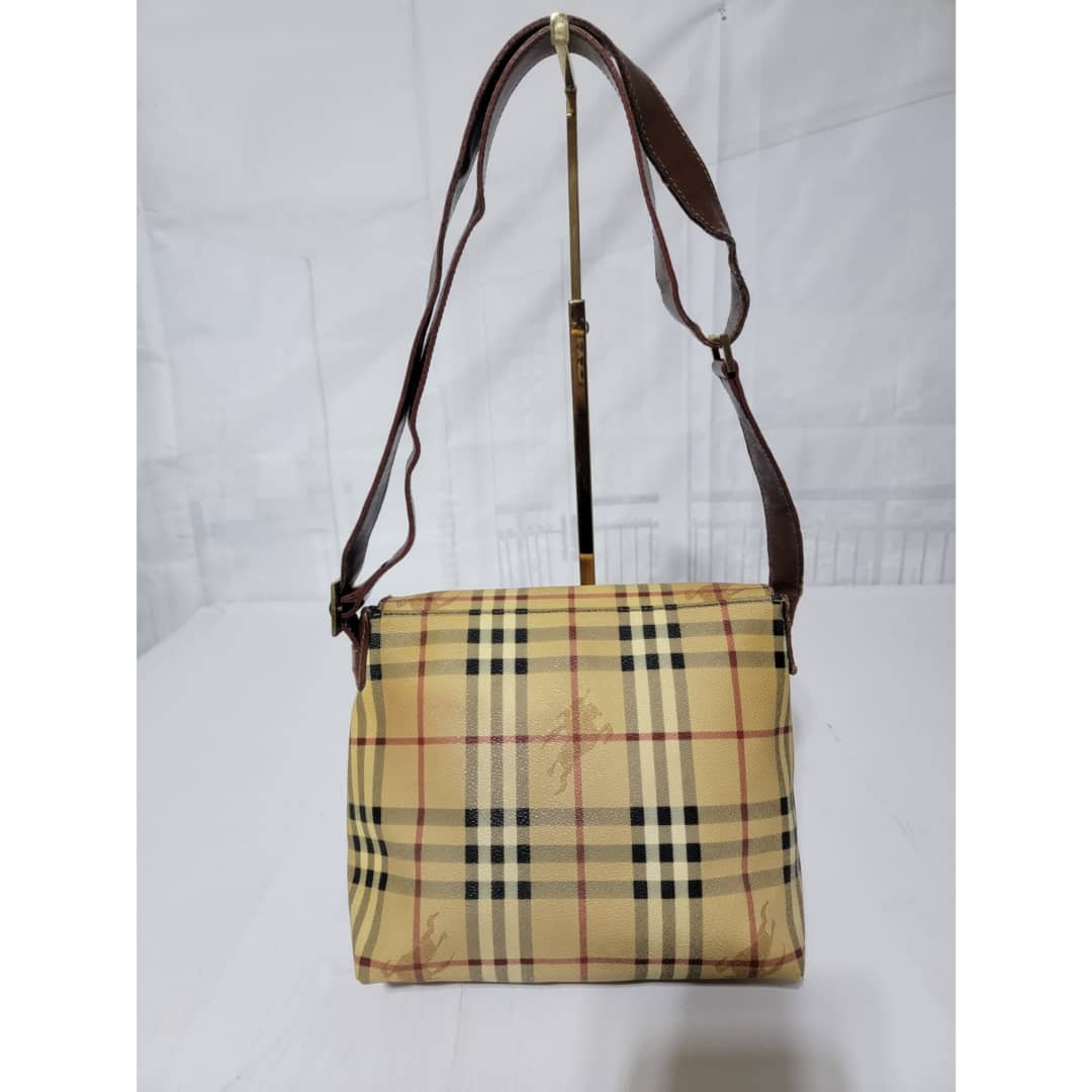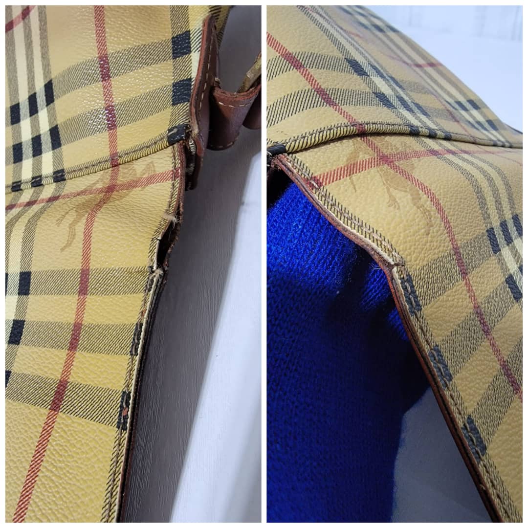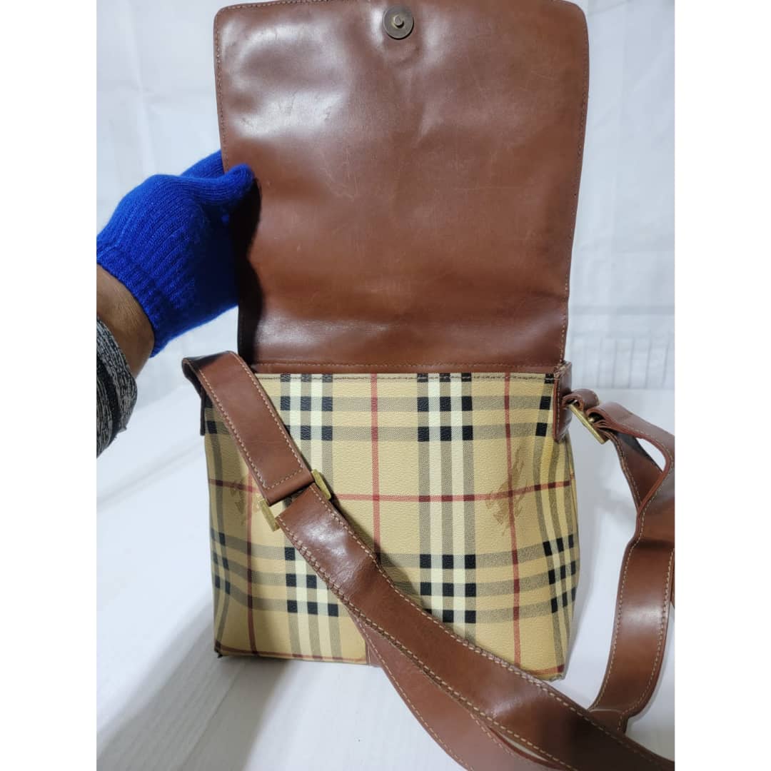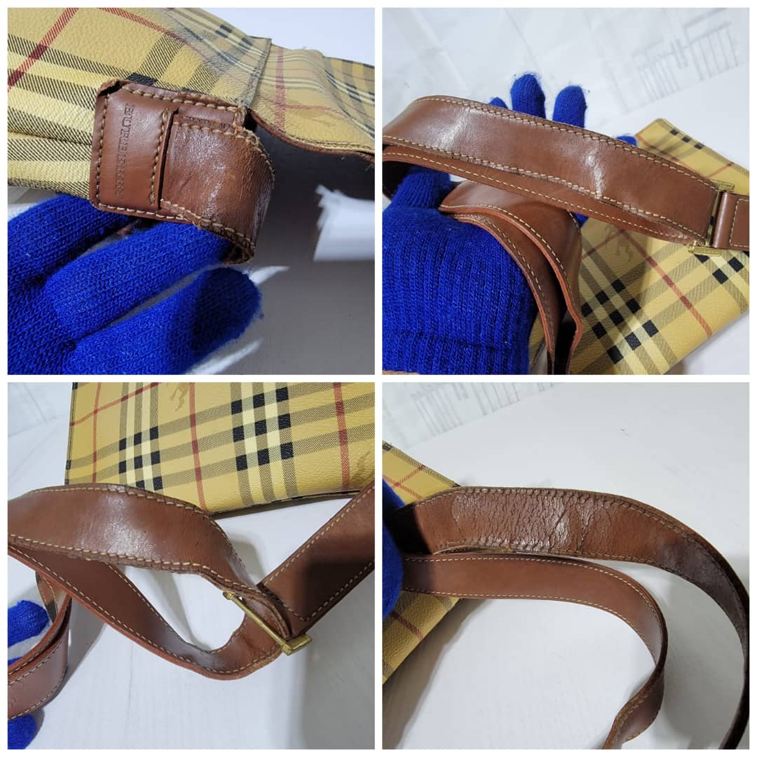 This authentic Burberry Haymarket Crossbody/Messenger Bag is in itβs good pre-owned condition. The exterior coated canvas is clean and beautiful, it shows sign of wear. The edges of the flap shows some light crack. The snap is not so functional. The base edges shows scuffing wear. Interior is clean. Hardware shows scratches. The under side of the strap that rests on the shoulder shows scratches and some light crack to the leather (Kindly look at pictures above).