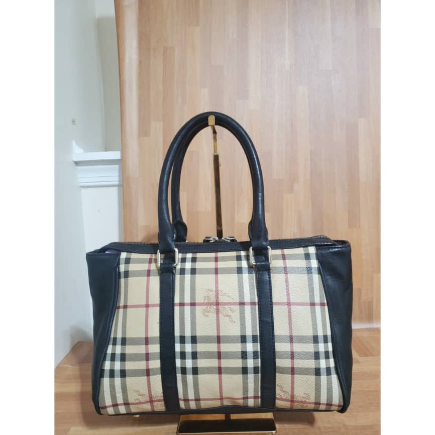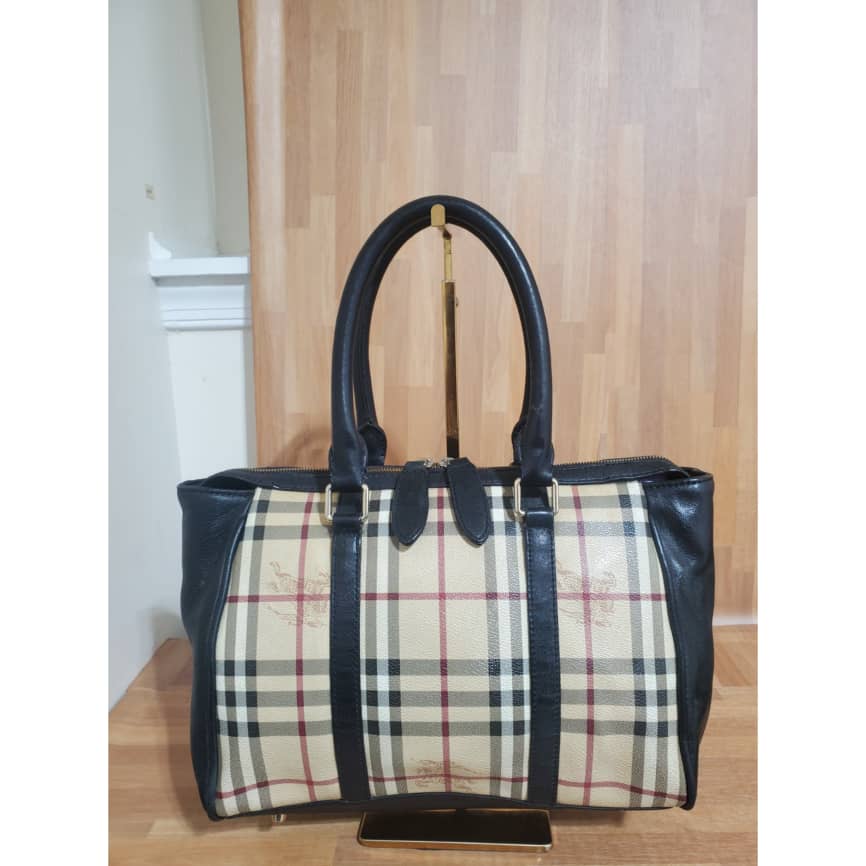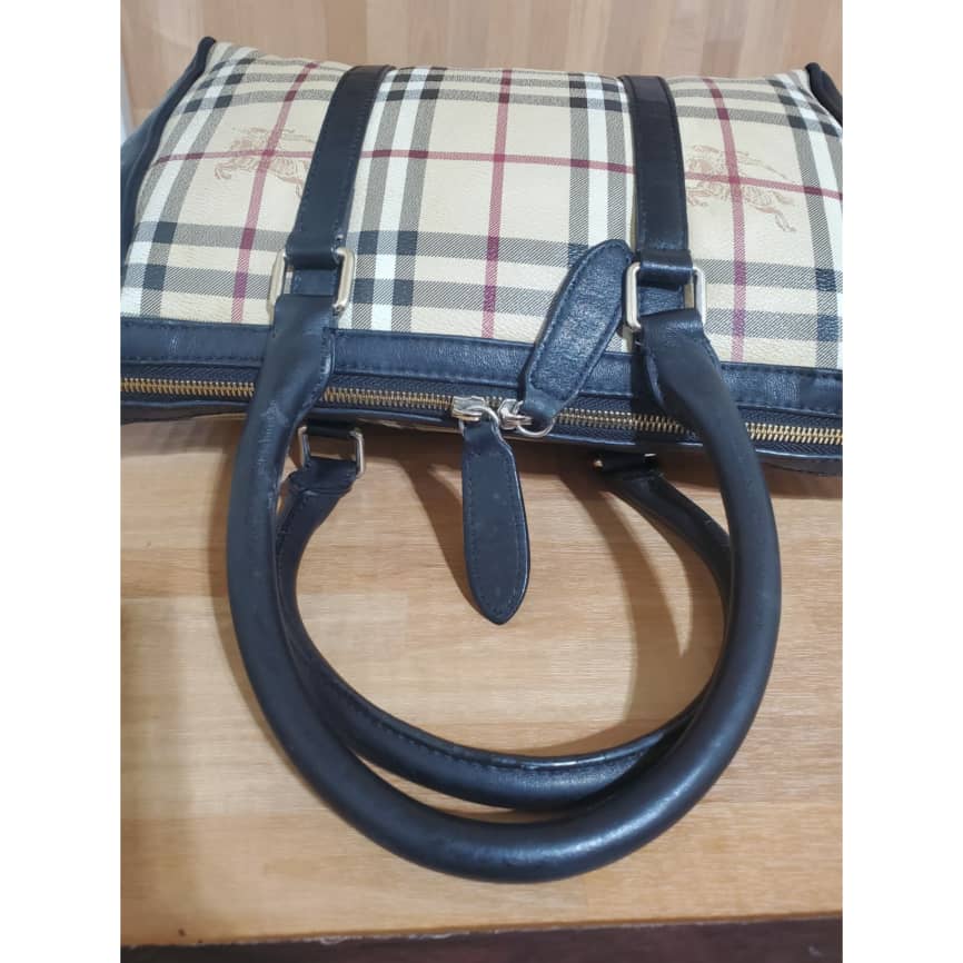 This authentic Burberry Haymarket Large Chatton Tote Beige Pvc Satchel Checkered bag is in it’s pre-owned condition. The exterior is clean and beautiful. Interior is clean.