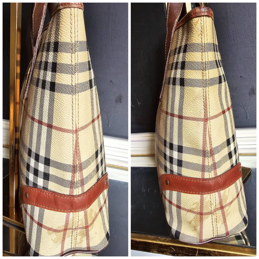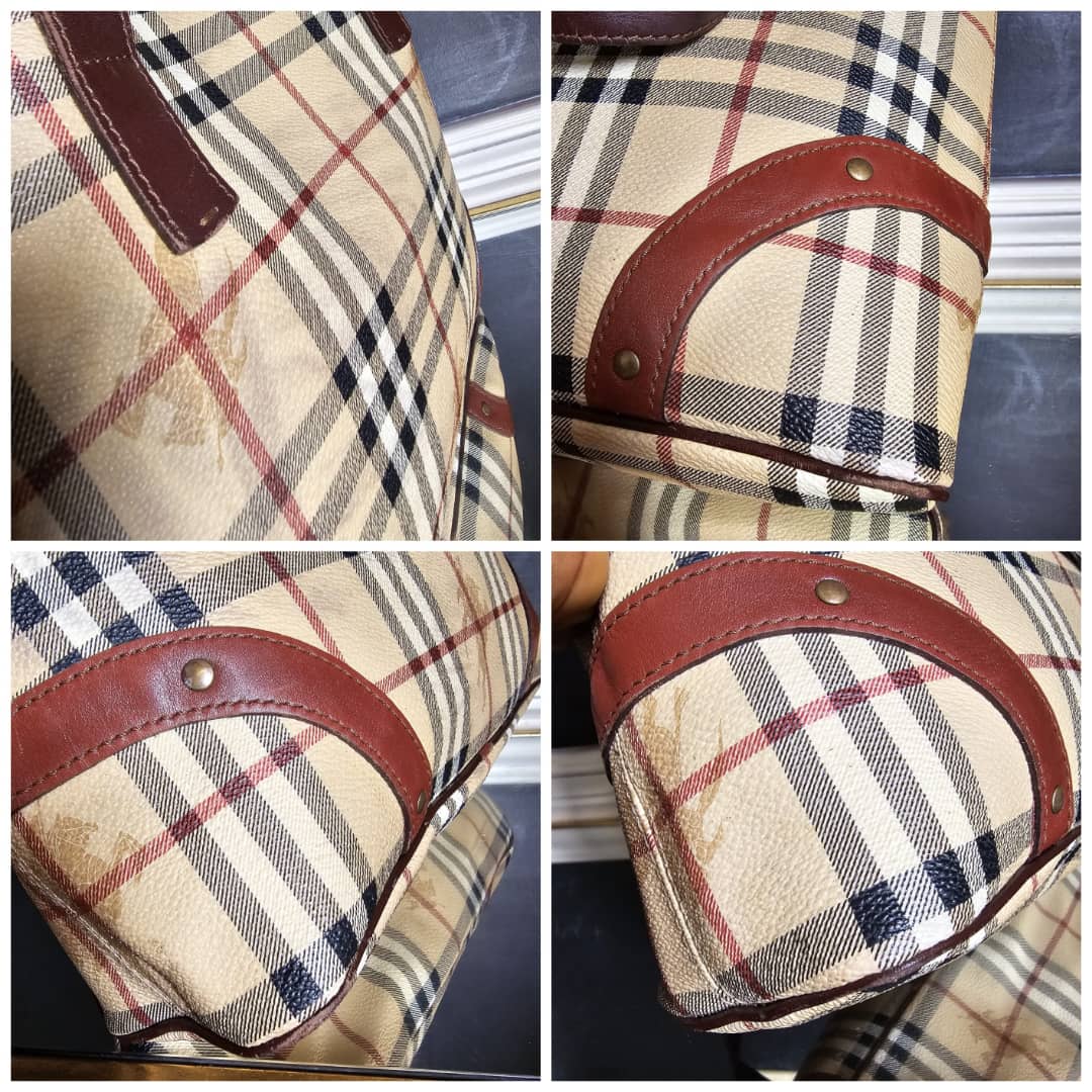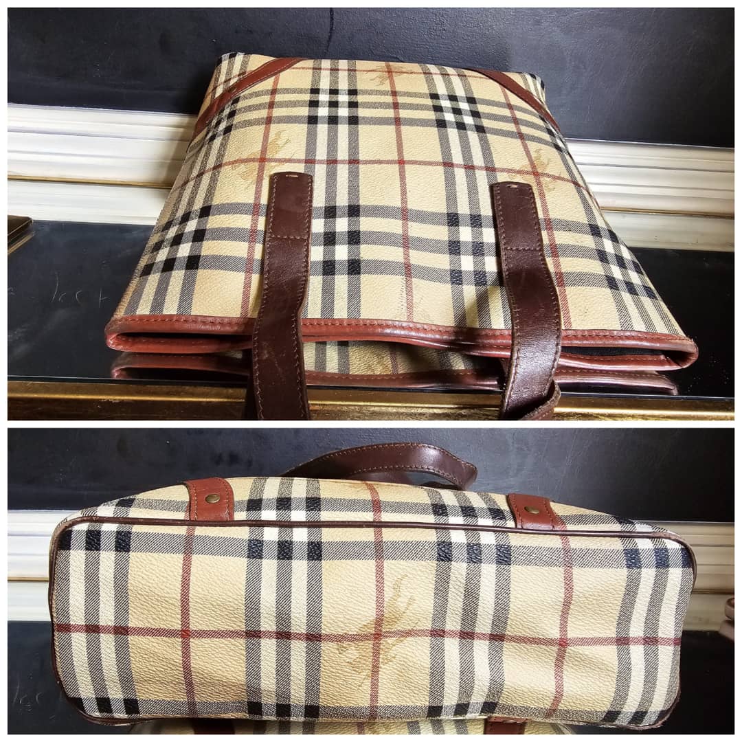 This authentic Burberry Haymarket Vintage Check Canvas Tote Bag is in it’s good pre-owned condition. The front exterior coated canvas is clean and beautiful. Back exterior shows little stain wear (Kindly review pictures above). Interior is clean. The brown trim leather is clean.