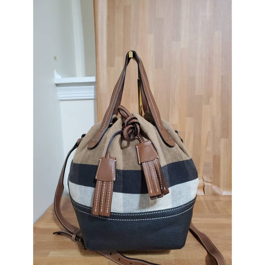 This authentic Burberry Heston Bucket Bag House Check is in it’s pre-owned good condition. The exterior canvas is clean and beautiful interior is clean . No small pouch.
