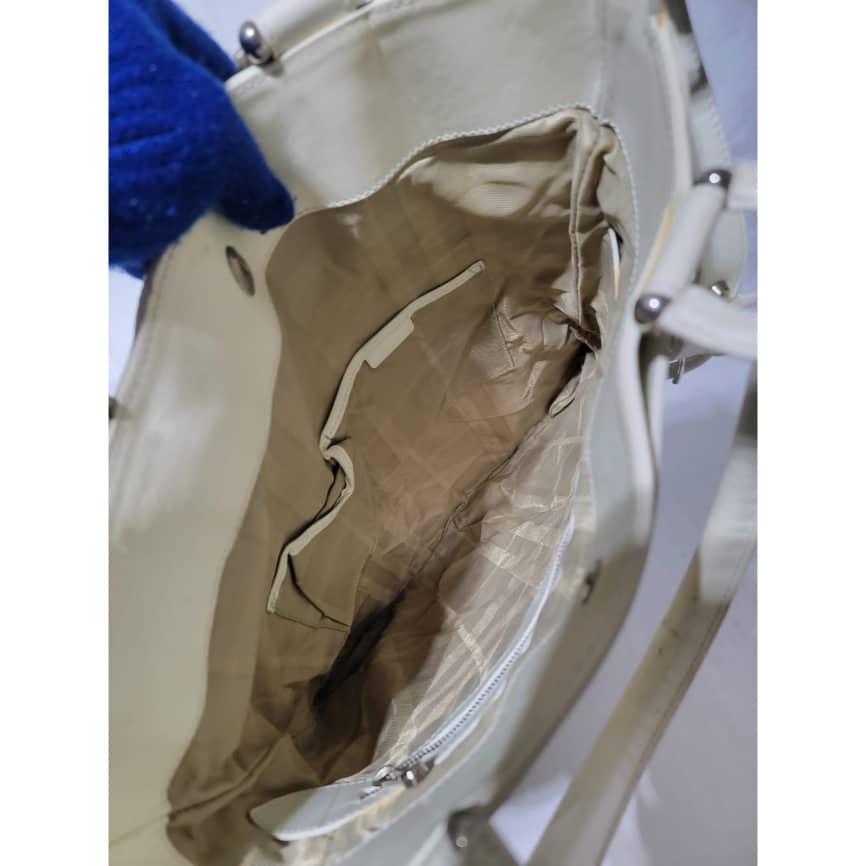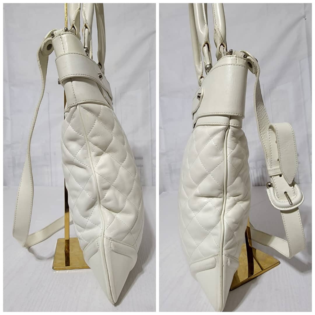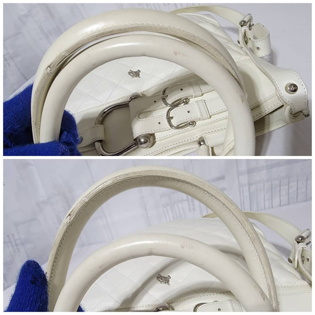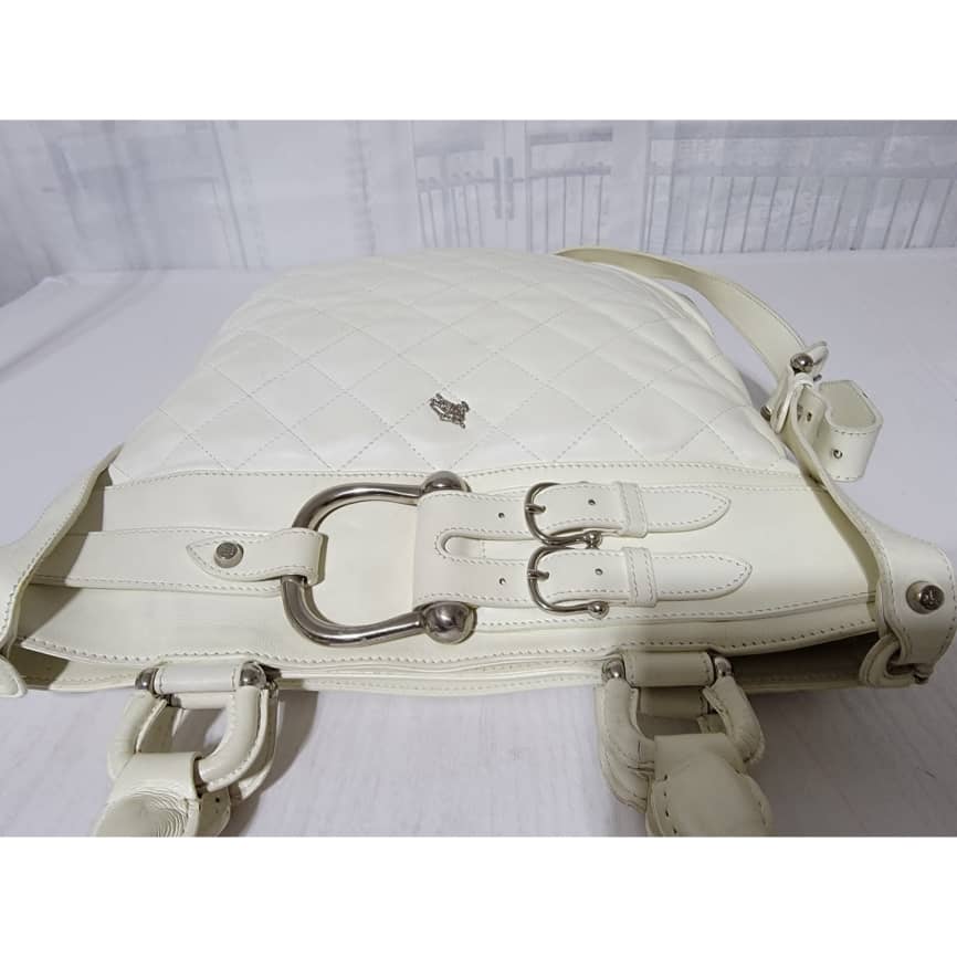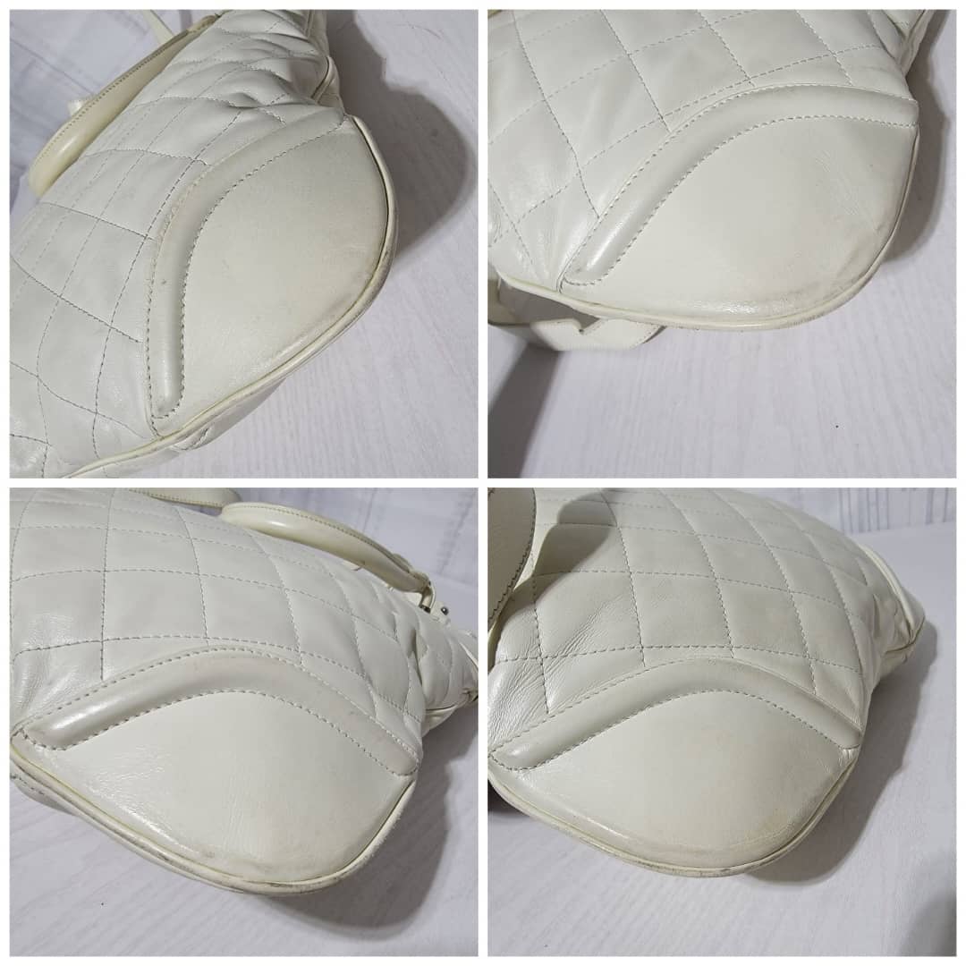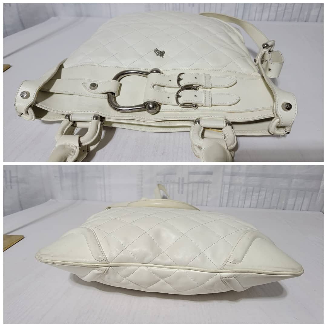 This authentic Burberry Hill gate Quilted Leather Tote White is in it’s good pre-owned condition. The exterior is clean and beautiful just very little scratch to the exterior on leather. The interior is clean it’s off-white color and has the Burberry horse logo design in front of it, come with a long strap that can be worn as a shoulder bag or crossbody. It’s a beautiful bag.
