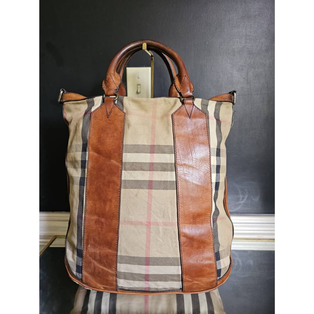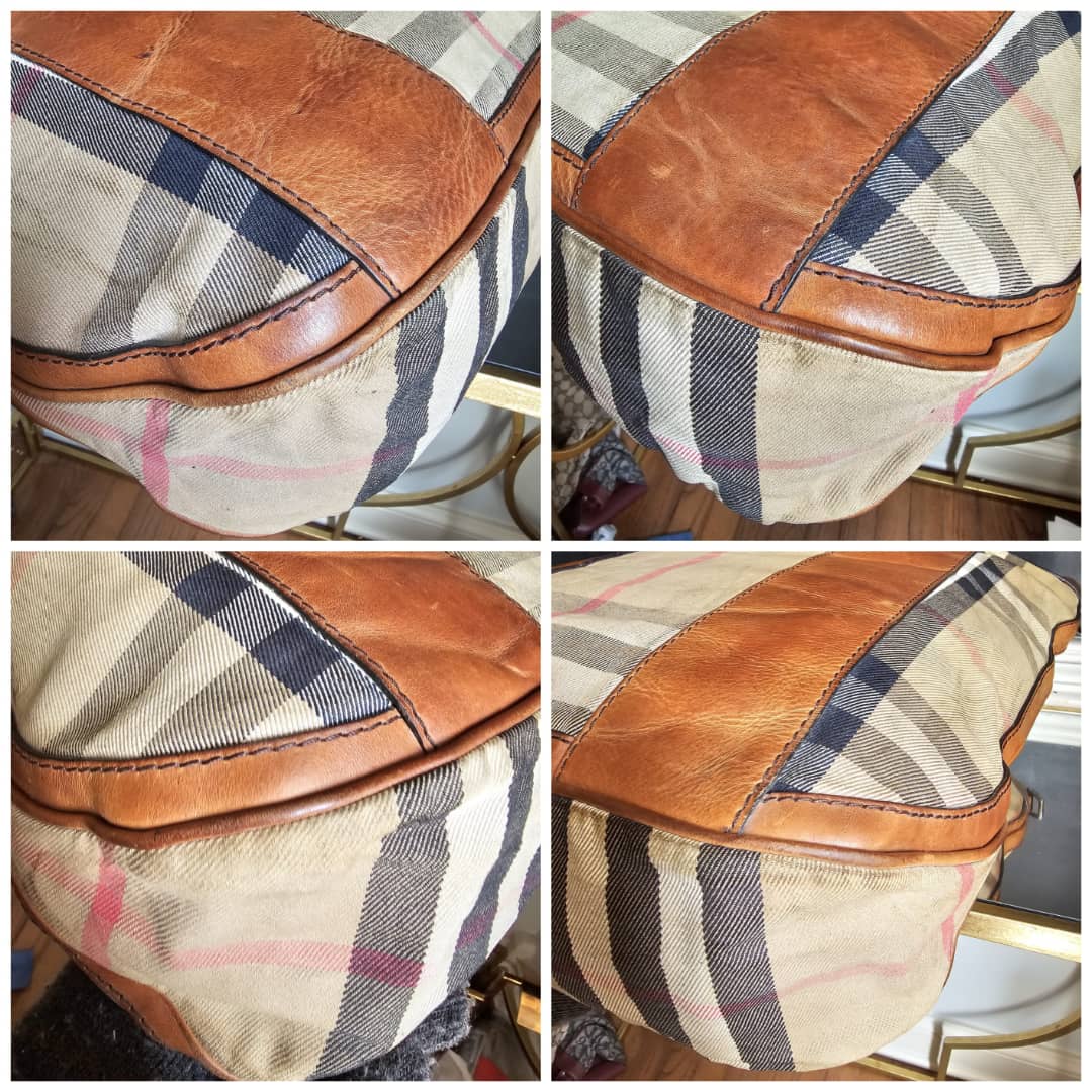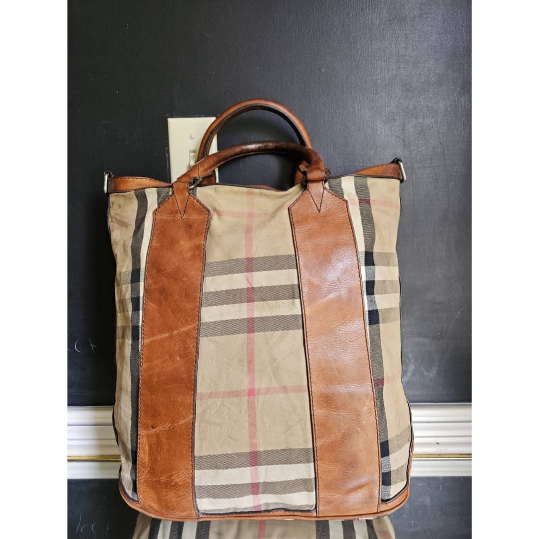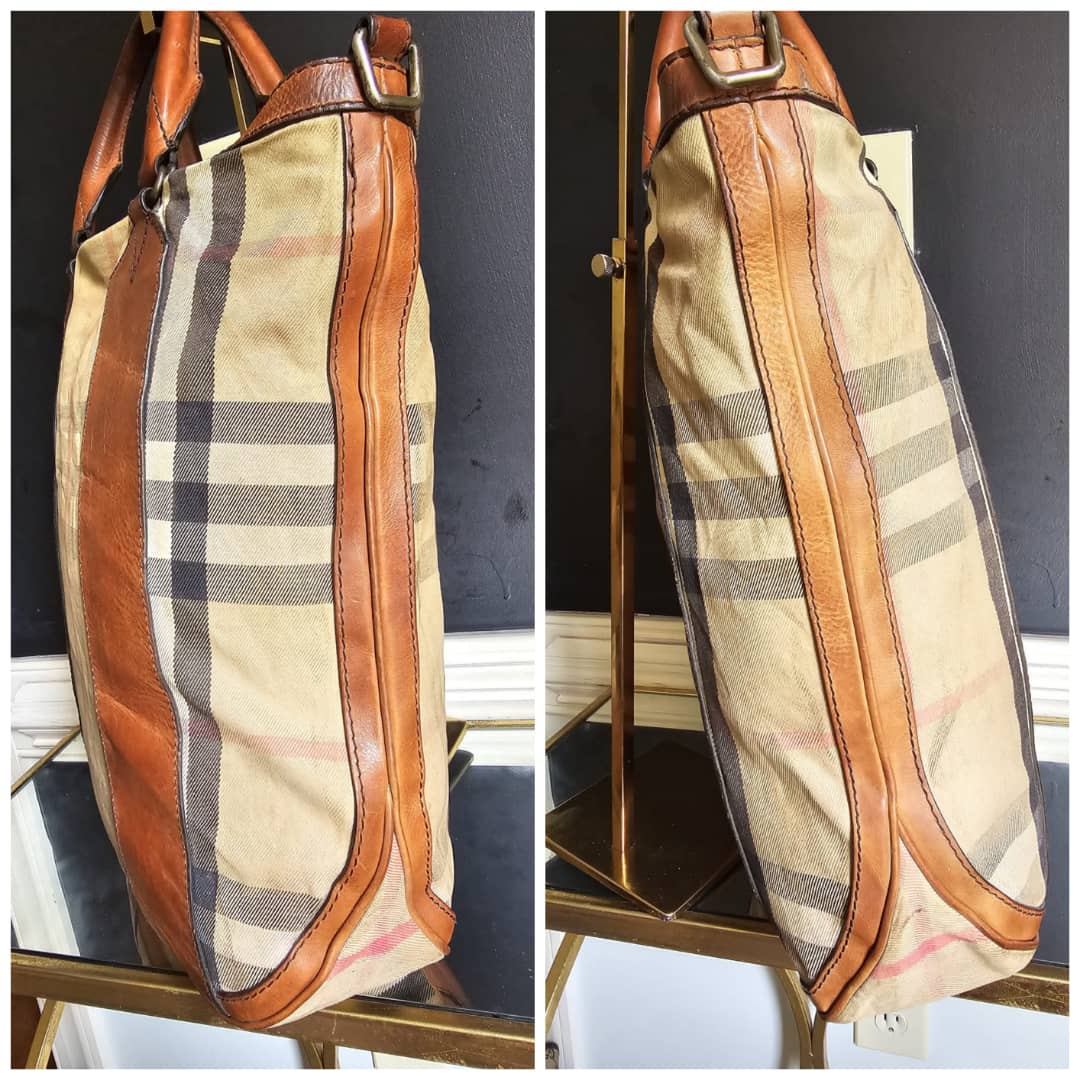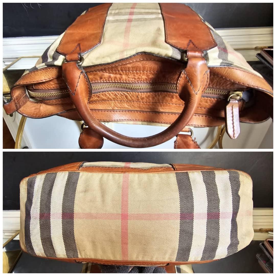 This authentic BURBERRY House Check Large Top Handle Bag Beige/Brown is in it’s good pre-owned condition. The exterior canvas and brown leather trim is clean and beautiful. The brown leather trim that runs across the bag shows some aging sign and rubbing wear to it. Interior is clean. This bag doesn’t come with a strap. I will add a matching generic strap