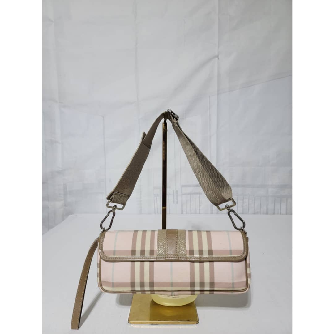 This authentic Burberry House Check PVC and Leather Buckle Flap Shoulder Bag is in it’s good pre-owned condition. The exterior is clean and beautiful, the flap shows some stains (Kindly review pictures above). Interior is clean. Silver hardware. Slightly adjustable strap.