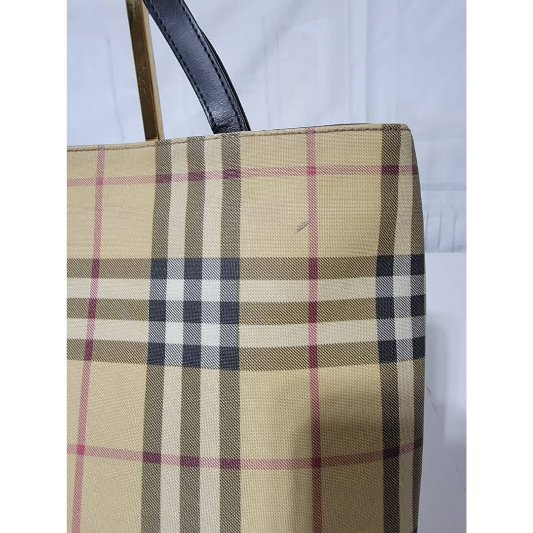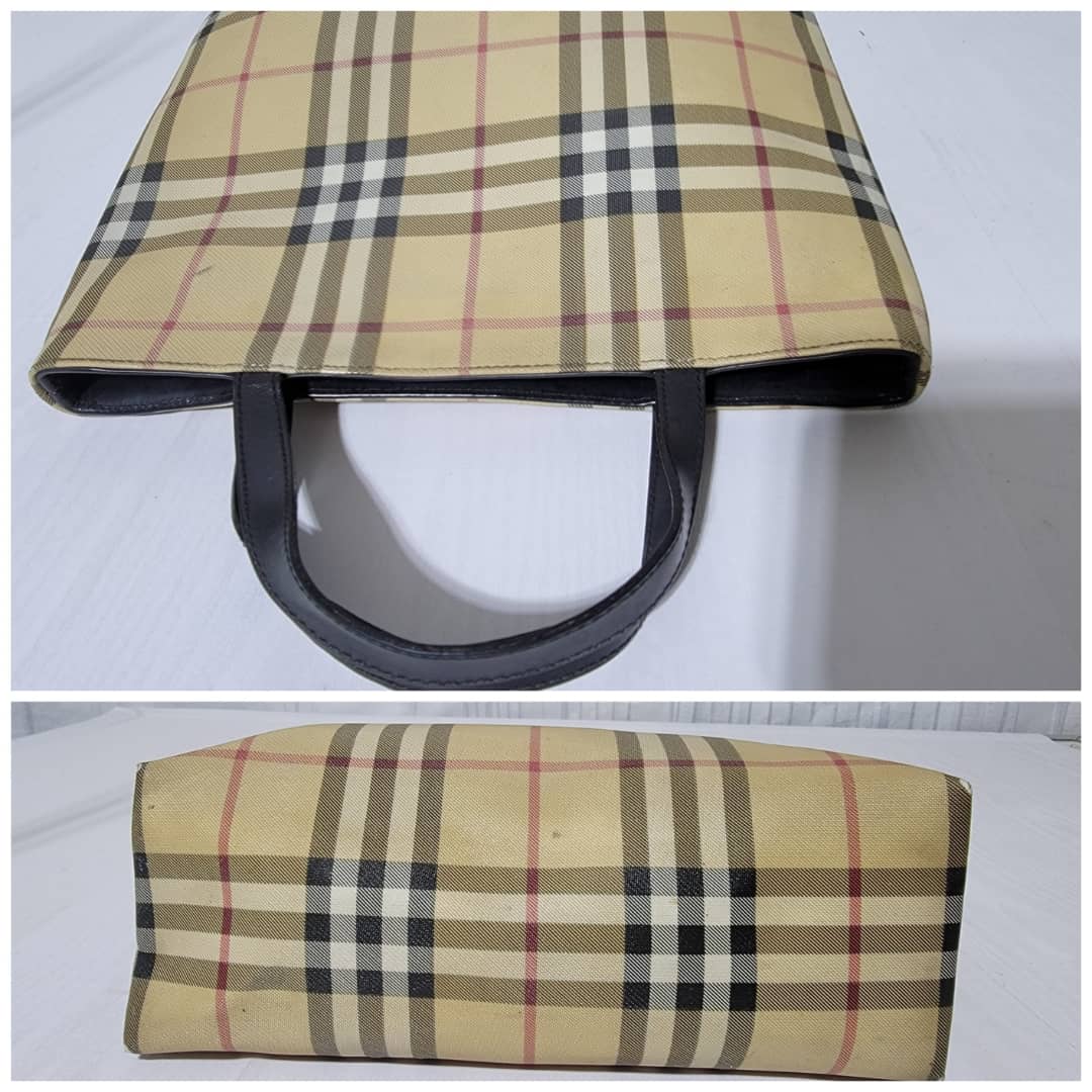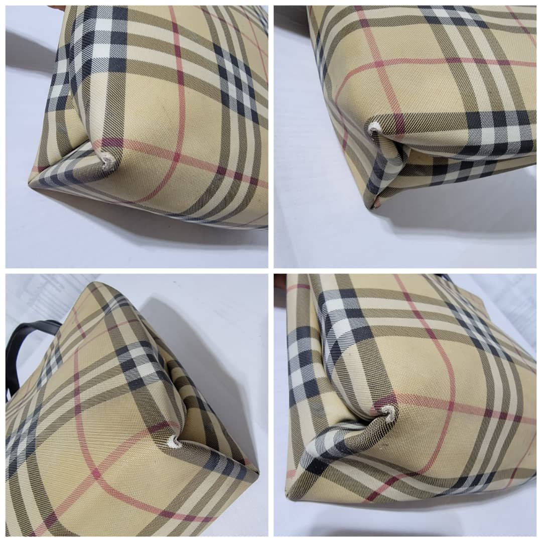 This authentic Burberry House Check Tote Bag is in it’s good pre-owned condition. The exterior is clean and beautiful. The base edges shows some scuffing and scratches. Interior is clean. The back exterior shows little sign of 4 bubble wear. It shows sign of use (Kindly look at pictures above).