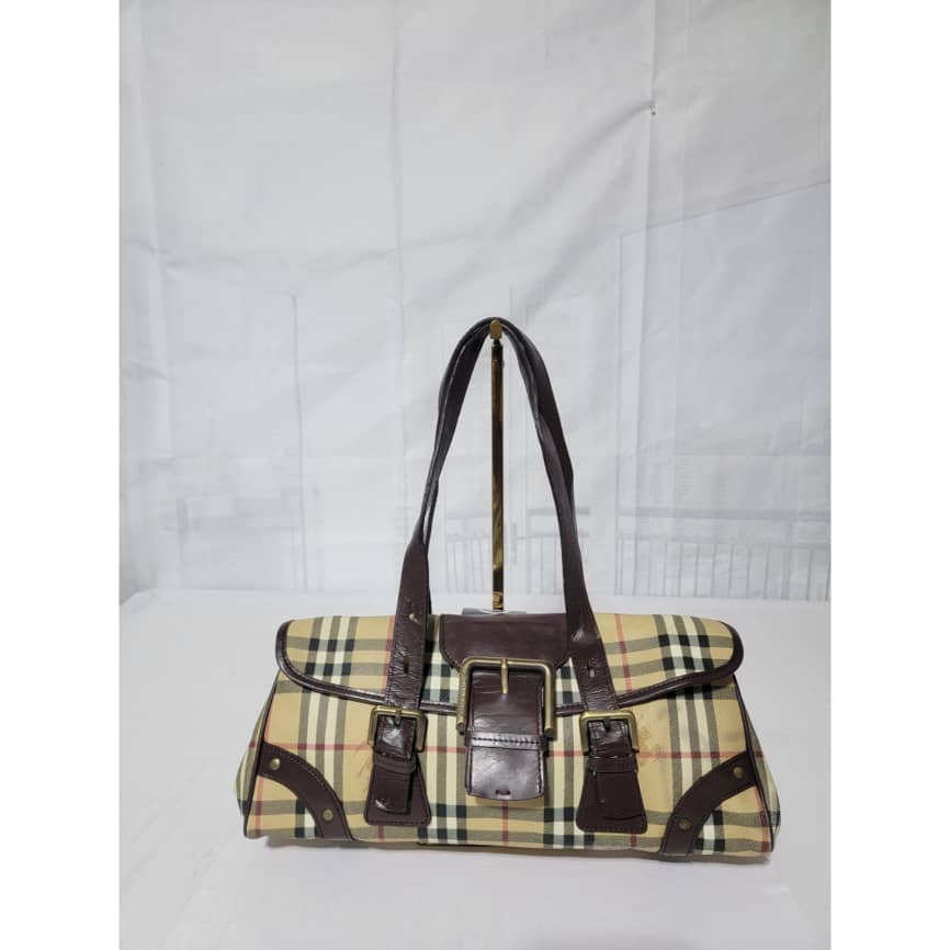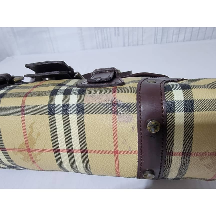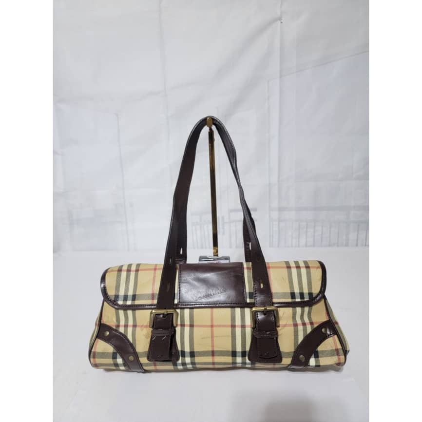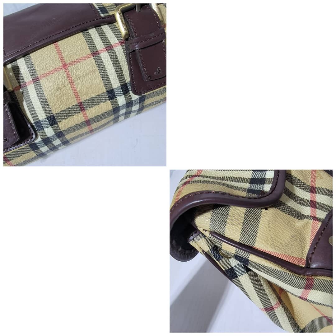 Leather Trimmed Haymarket Check Shoulder Bag is in it’s pre-owned condition. The right side of exterior shows little color transfer stain. Interior is clean. Code tag missing however it comes with a certificate of authenticity. Kindly look at pictures above