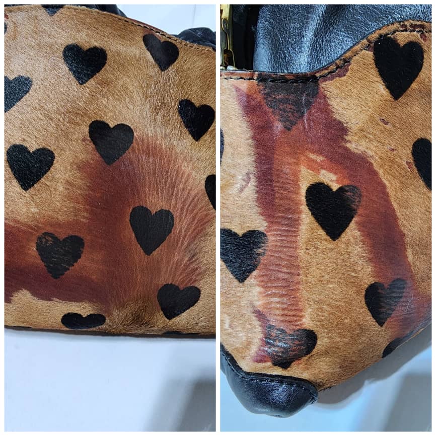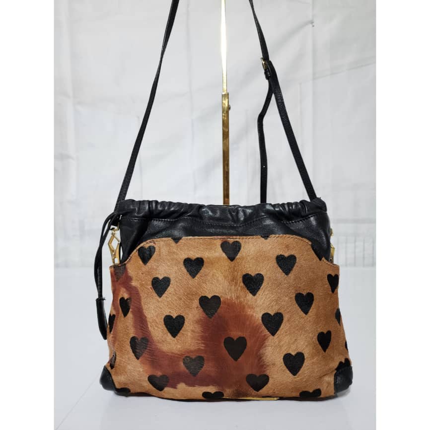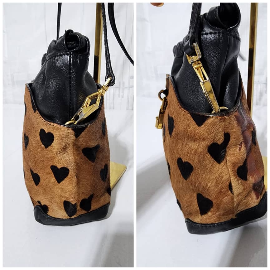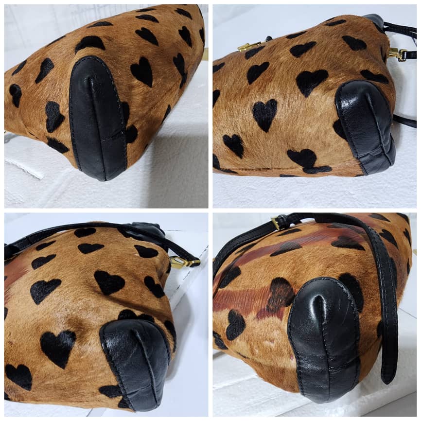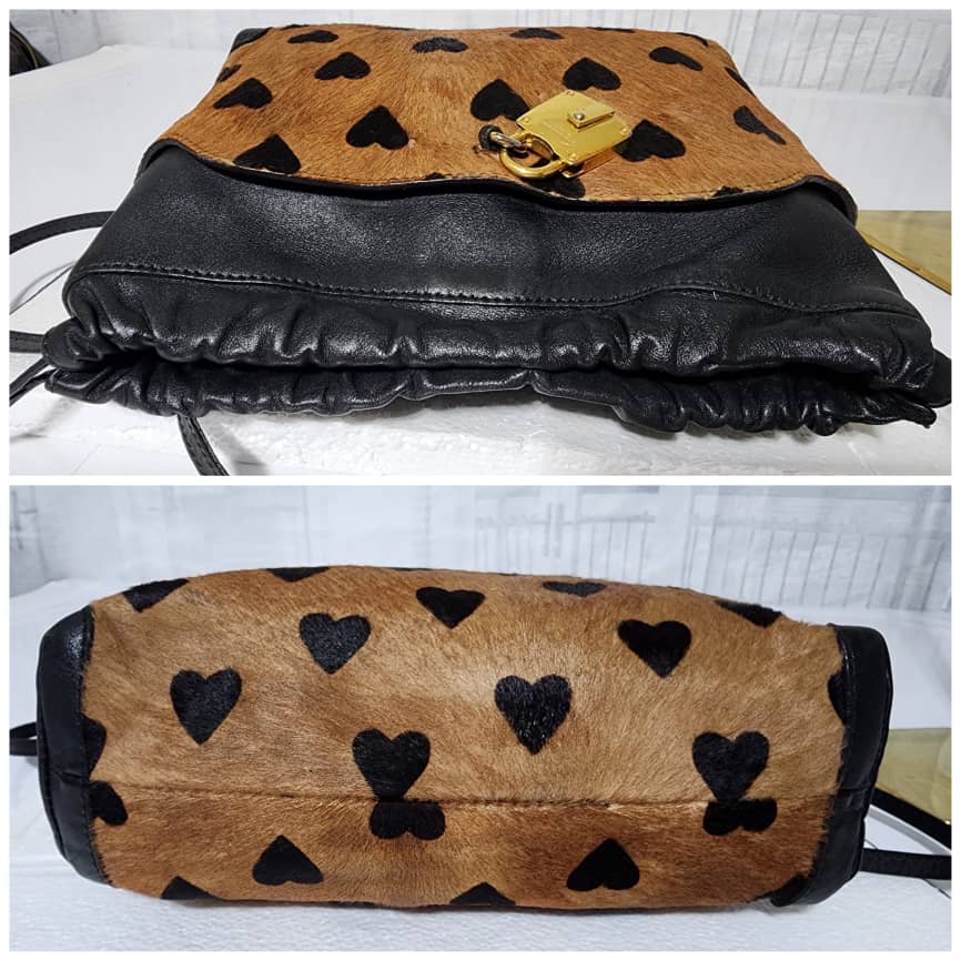 This authentic Burberry Little Crush Heart Ponyhair Bag Brown/Black is in it’s pre-owned condition. The exterior shows sign of wear at the back of the bag. It has some discoloration on the suede material. Interior is clean. Long strap is adjustable.