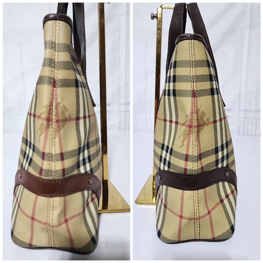 This authentic Burberry London Haymarket Check Shoulder Bag Brown/Beige is in it’s good pre-owned condition. The exterior is clean and beautiful. Interior is clean.