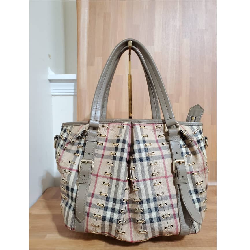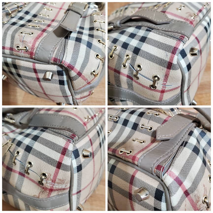 This authentic Burberry Lowry Tote Haymarket Check PVC and Leather Bag is in it’s pre-owned condition. The exterior is clean and beautiful. Interior is clean. A few faint mark. It’s a gorgeous bag