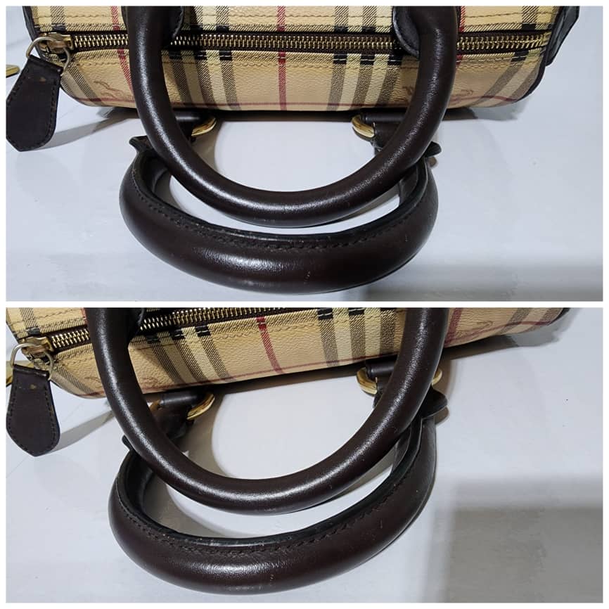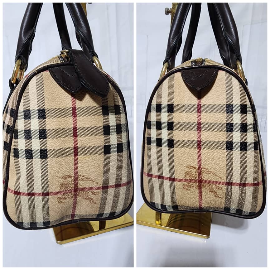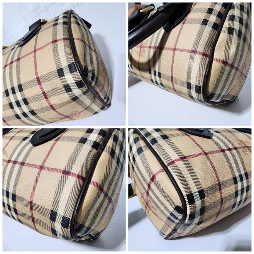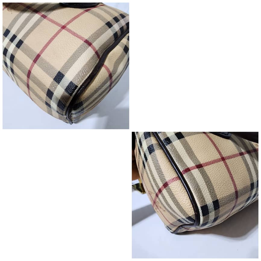 This authentic BURBERRY Nova Check Coated Canvas Shoulder Bag Beige/Black is in itβs good pre-owned condition. The exterior is clean and beautiful. The back of the bag shows a little bit of dark stains to it (Kindly look at pictures above).