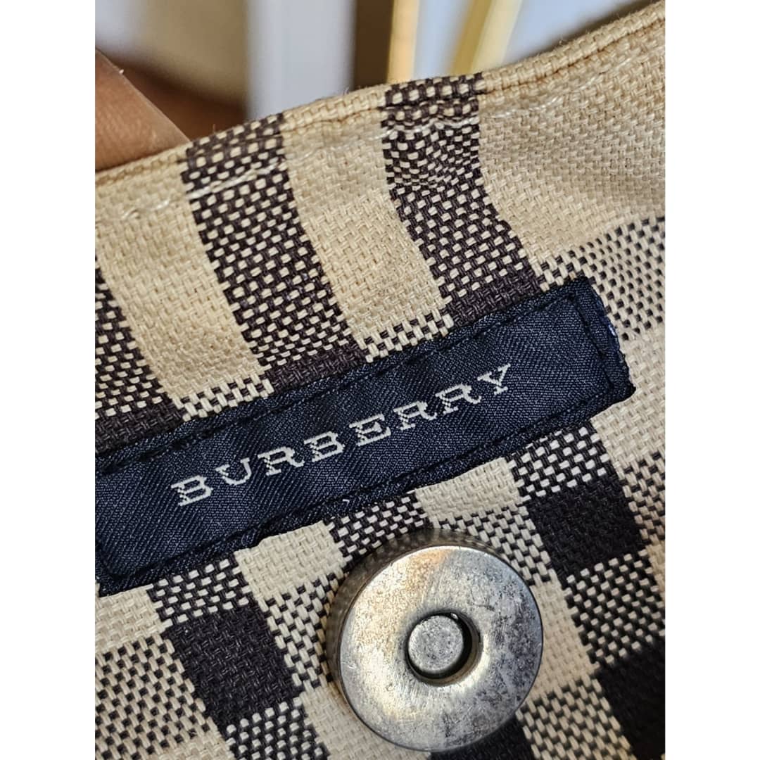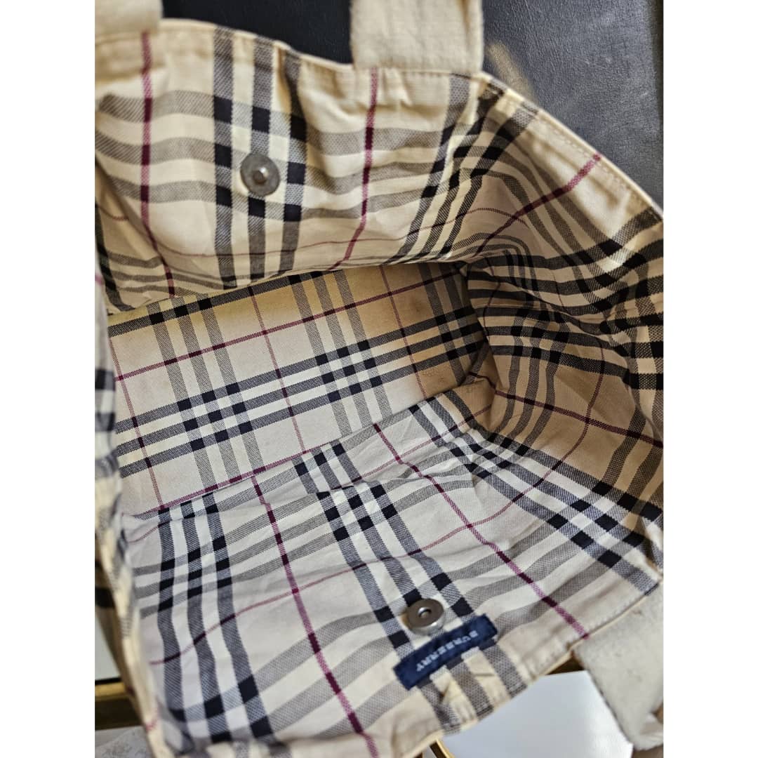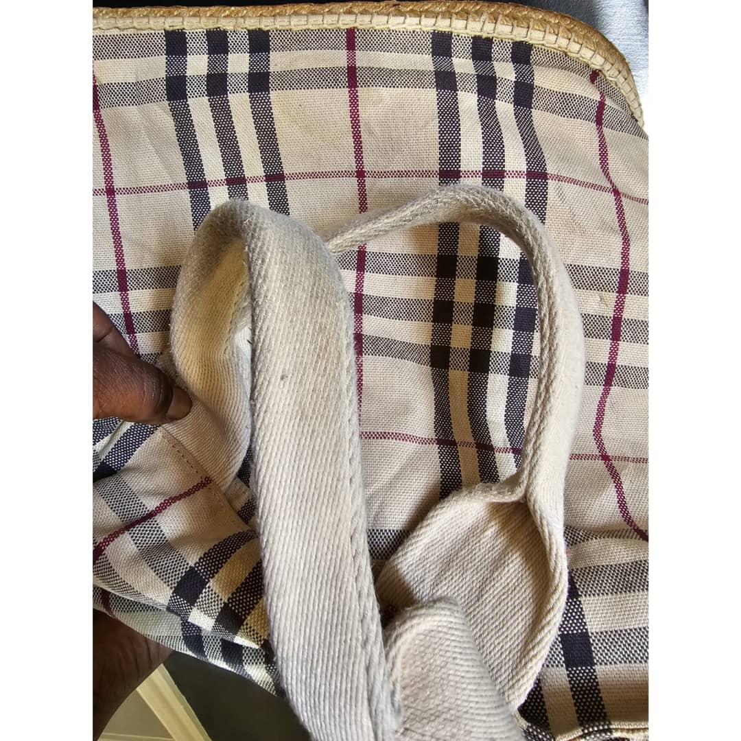 This authentic Burberry Nova check espadrille canvas tote bag Beige is in it’s good pre-owned condition. The exterior canvas is clean and beautiful. Interior is clean. There is a Burberry logo under the bag. It is a very beautiful bag.