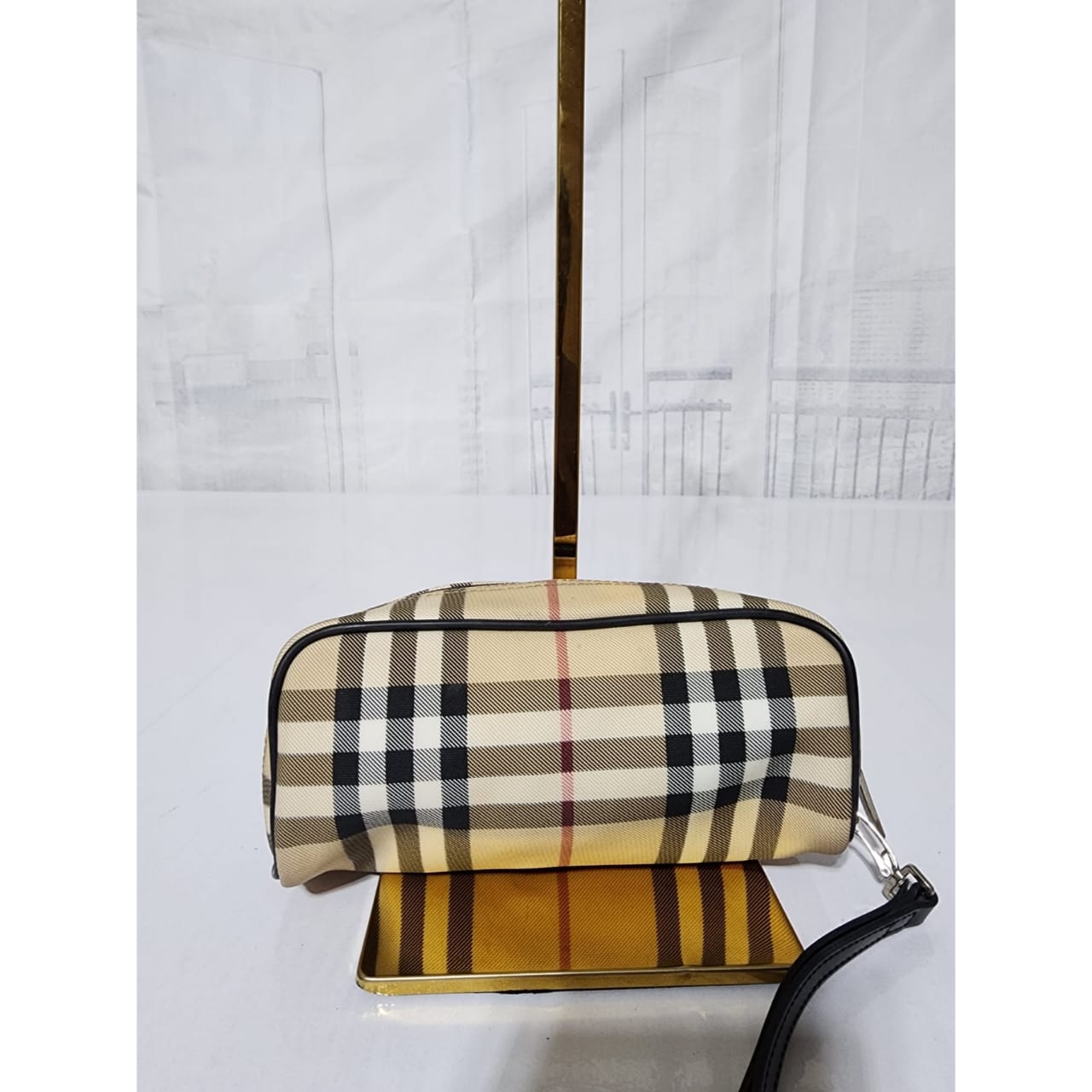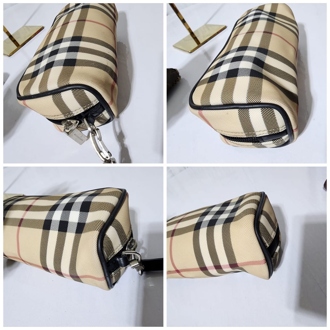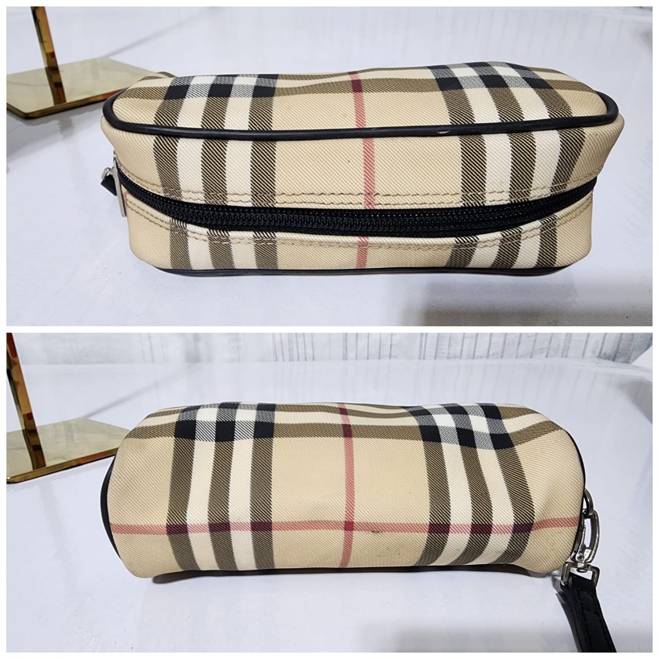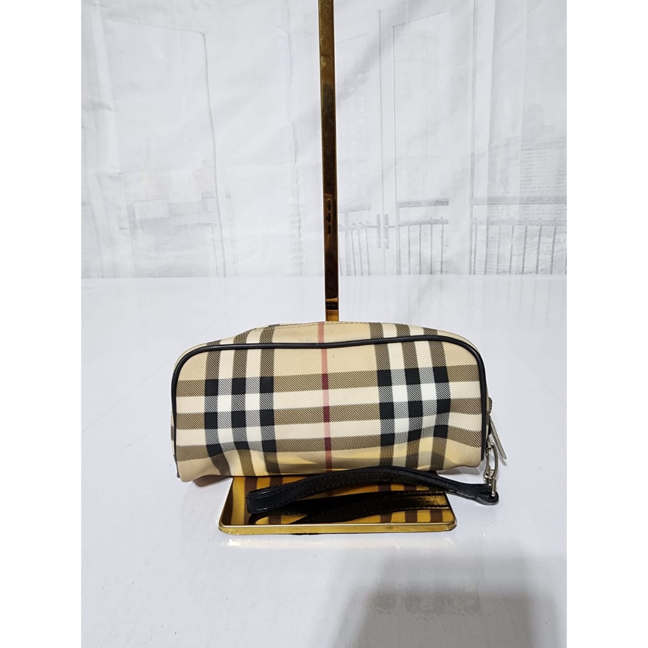 This authentic Burberry Nova Check pouch Beige/Black is in it’s good pre-owned condition. The exterior is clean and beautiful. Interior is clean. It can be used as a glass case, a wallet and a clutch. The black wristlet strap is detachable. Silver hardware.
