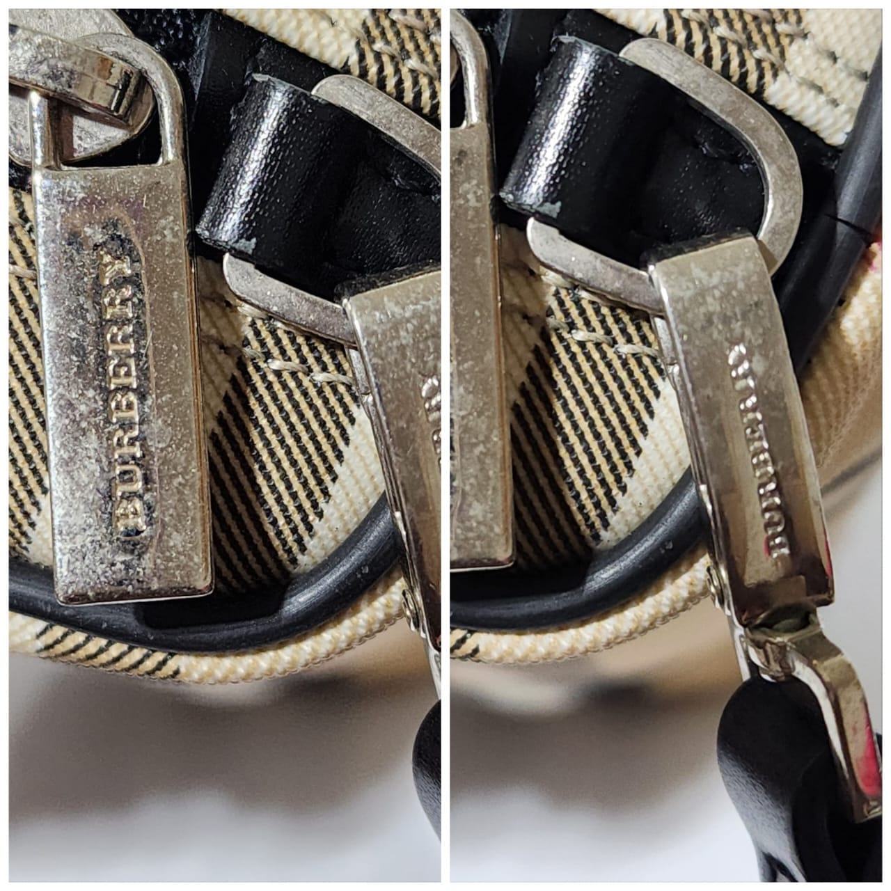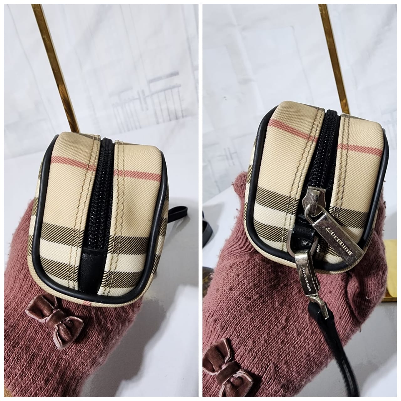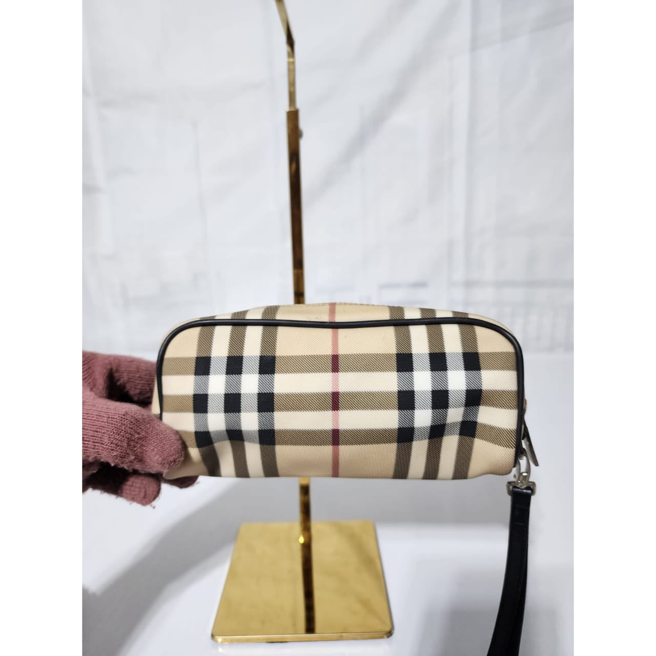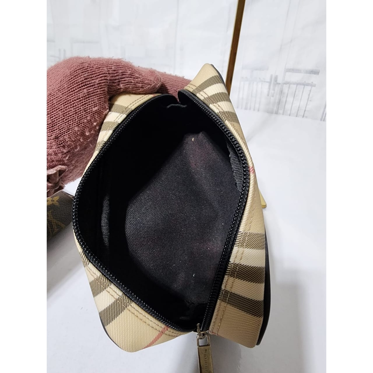 This authentic Burberry Nova Check pouch Beige/Black is in it’s good pre-owned condition. The exterior is clean and beautiful. Interior is clean. It can be used as a glass case, a wallet and a clutch. The black wristlet strap is detachable. Silver hardware.