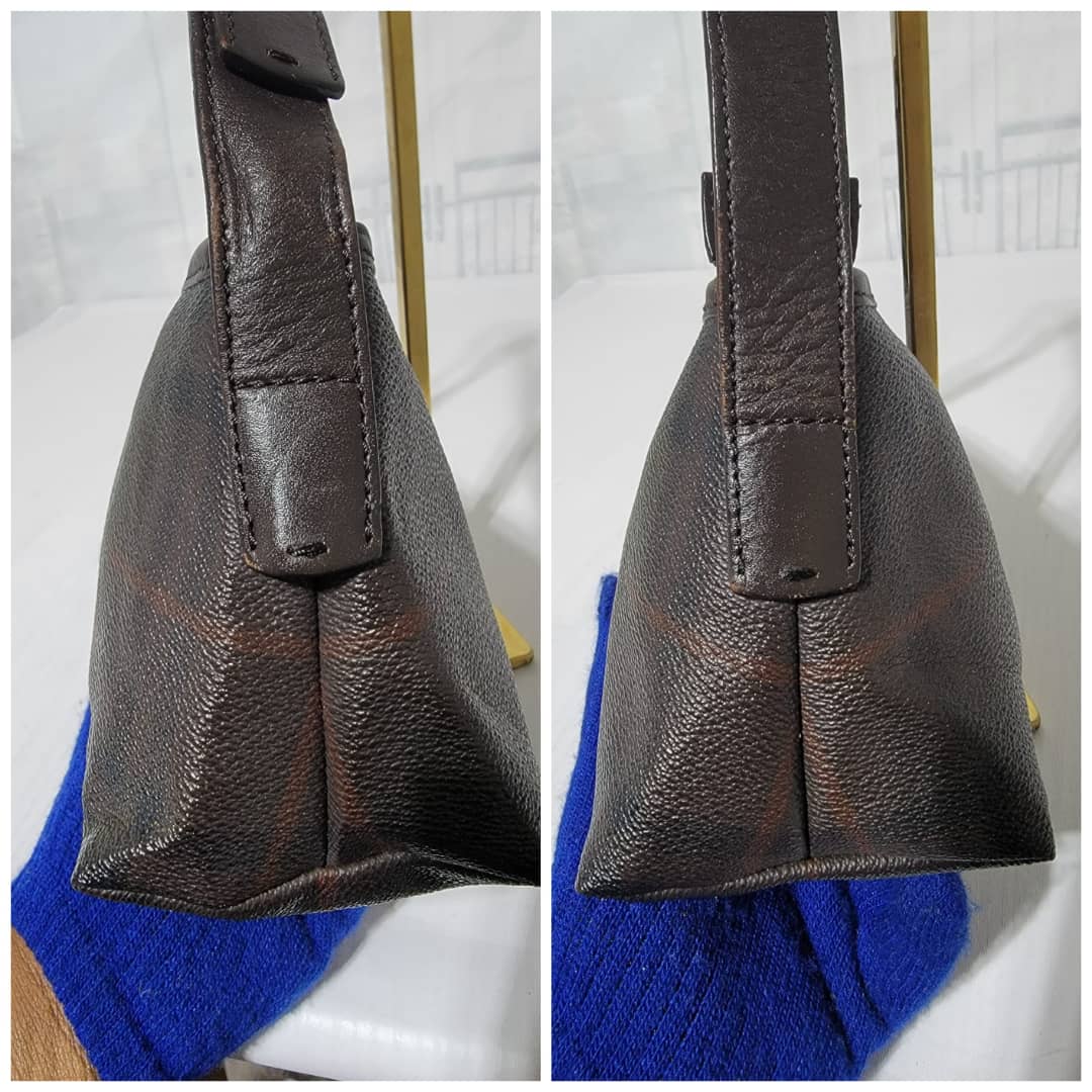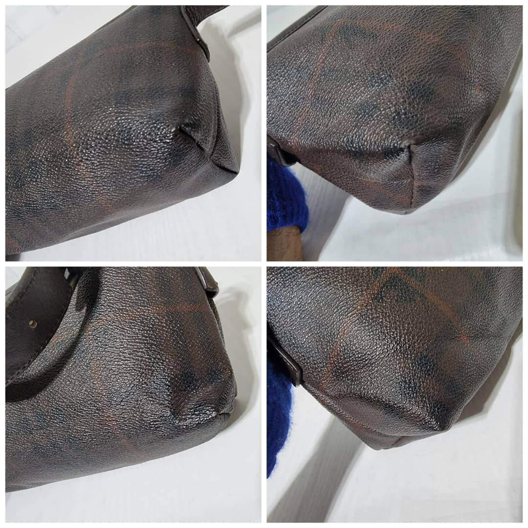 This authentic BURBERRY POCHETTE COATED CANVAS NOVA CHECK SHOULDER BAG DEEP BROWN is in it’s good pre-owned condition. The exterior is clean and beautiful. Interior is clean. Bronze hardware.