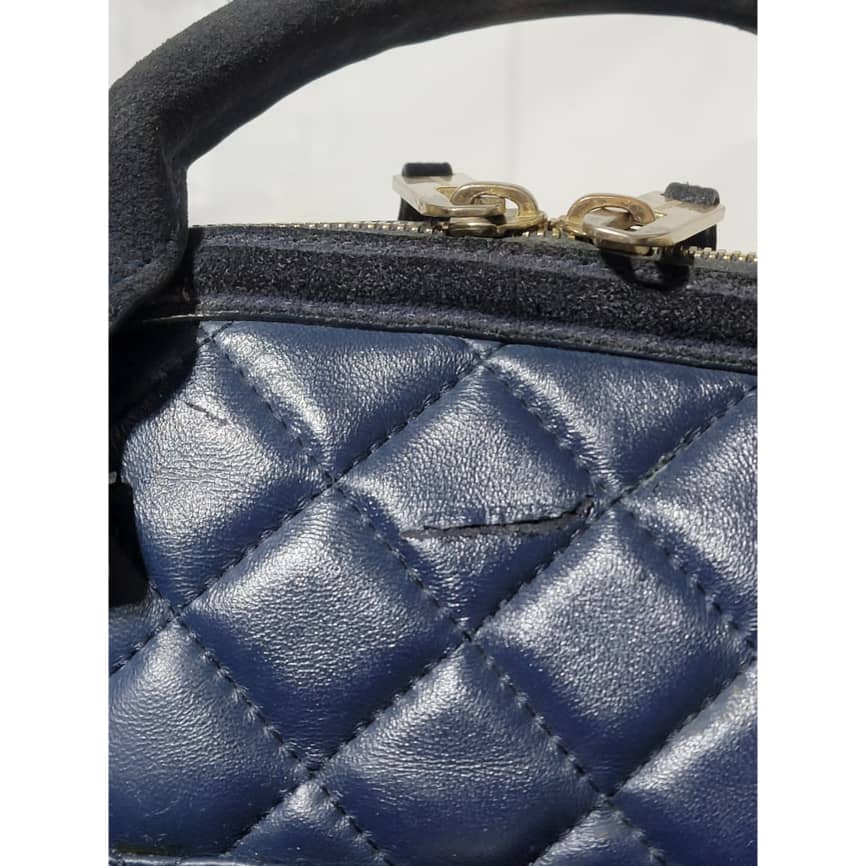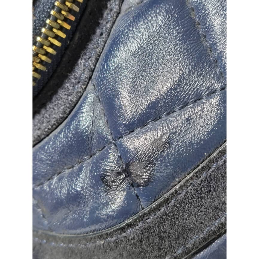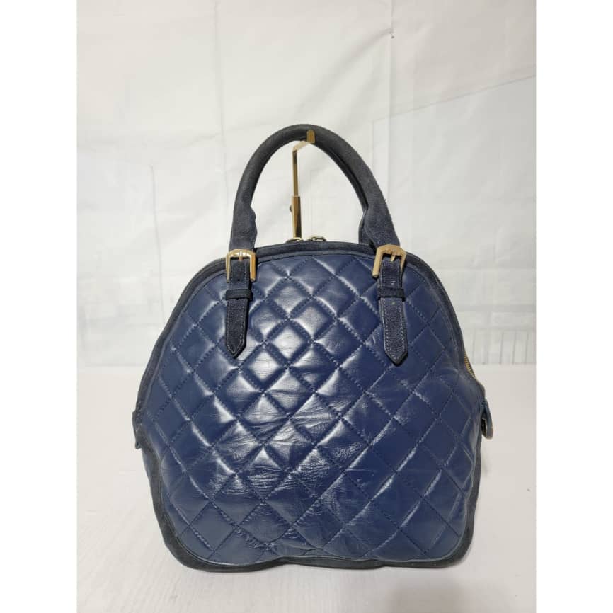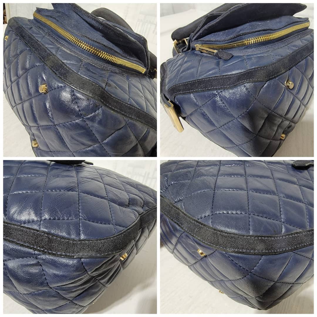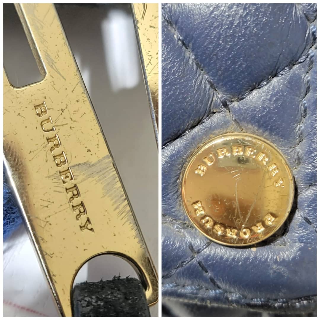 This authentic Burberry Prorsum Dark Navy Blue Quilted Nappa Leather Country Animal Orchard Bag is in it’s good pre-owned condition. The exterior is clean and beautiful. However there is a little scratch curve at the top of the bag not so obvious and by the side.