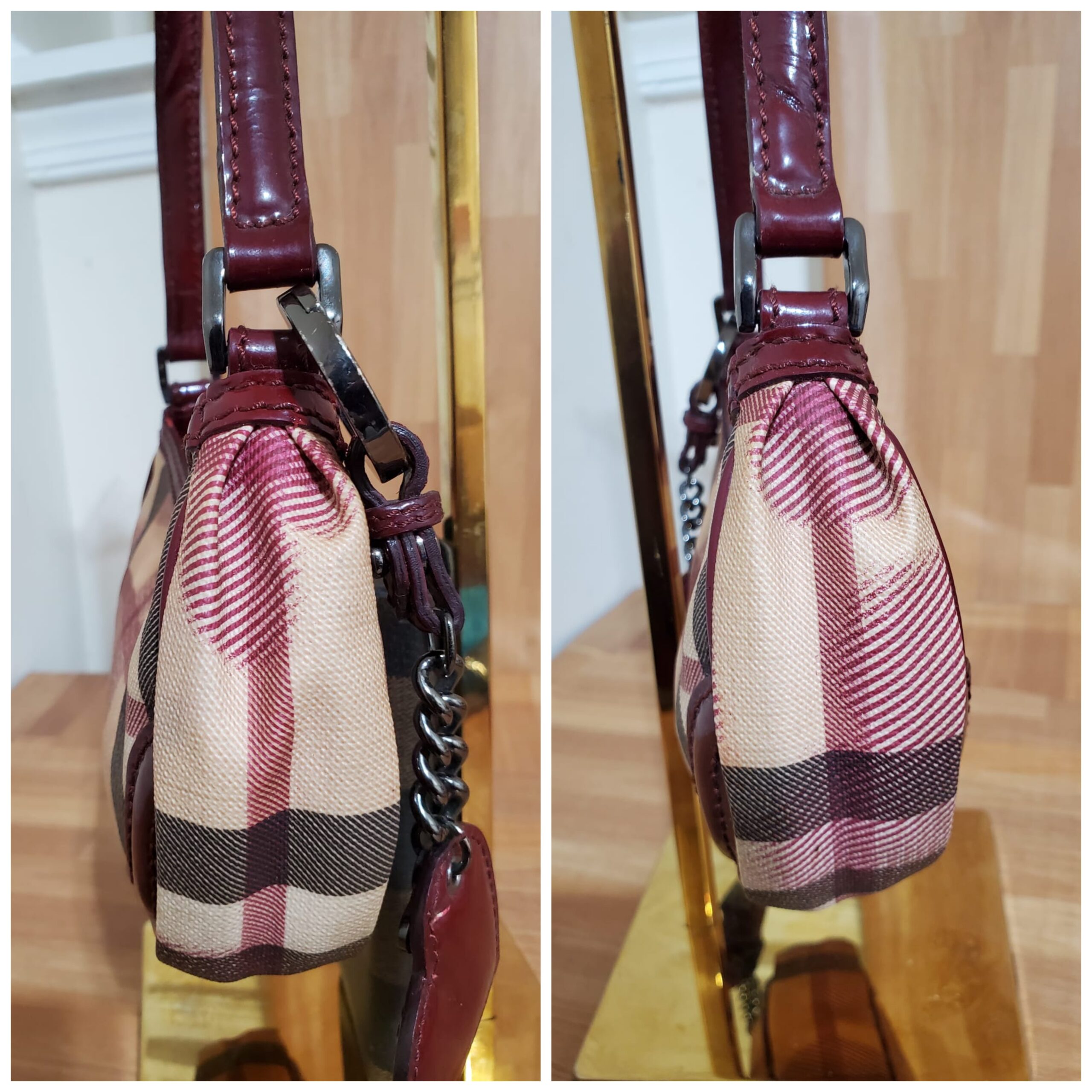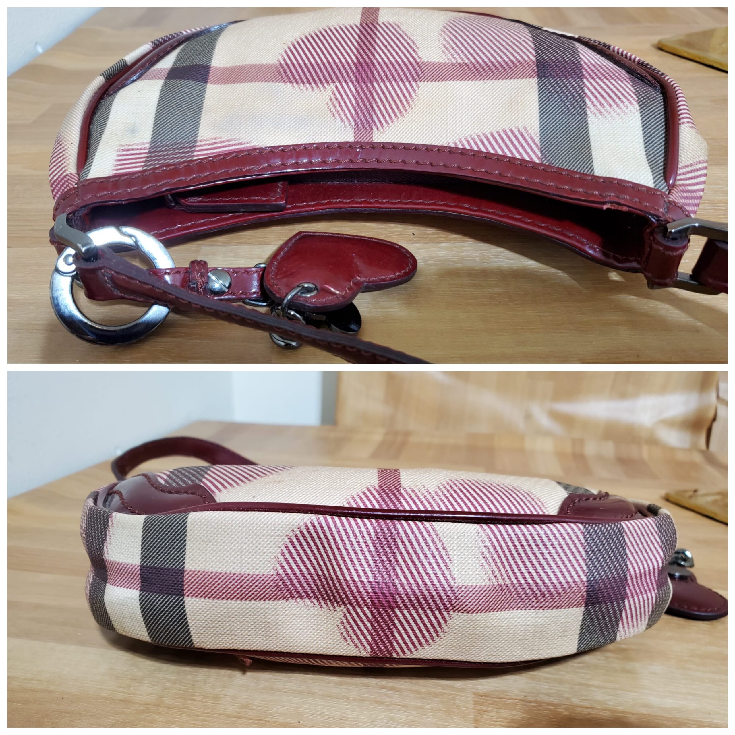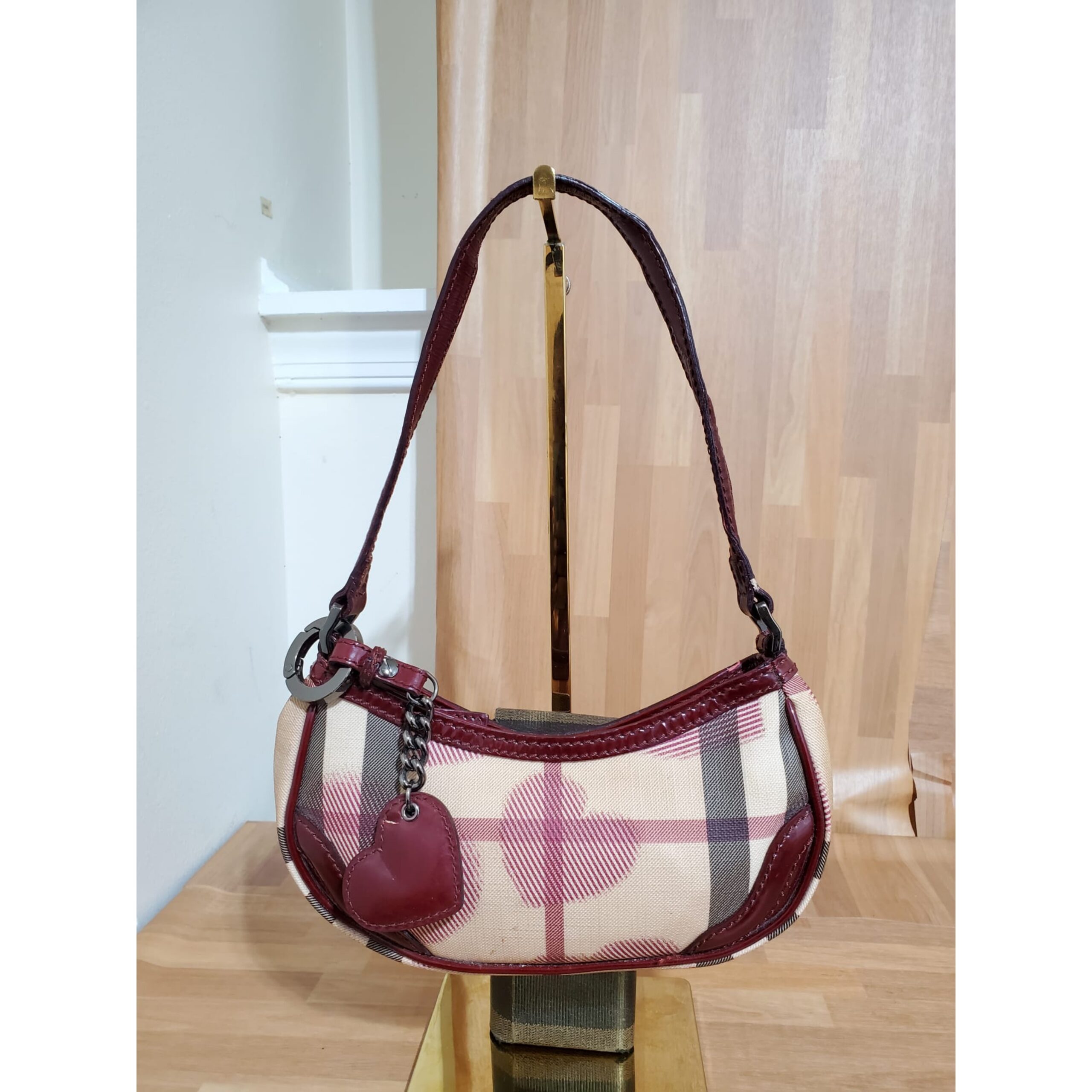 This authentic Burberry Rare London Heart Pochette is in it’s pre-owned good condition shows sign of use. The exterior coated canvas is clean and beautiful ,interior is clean .