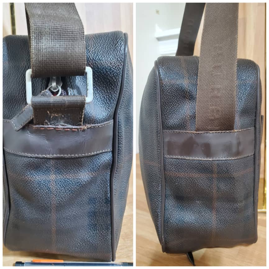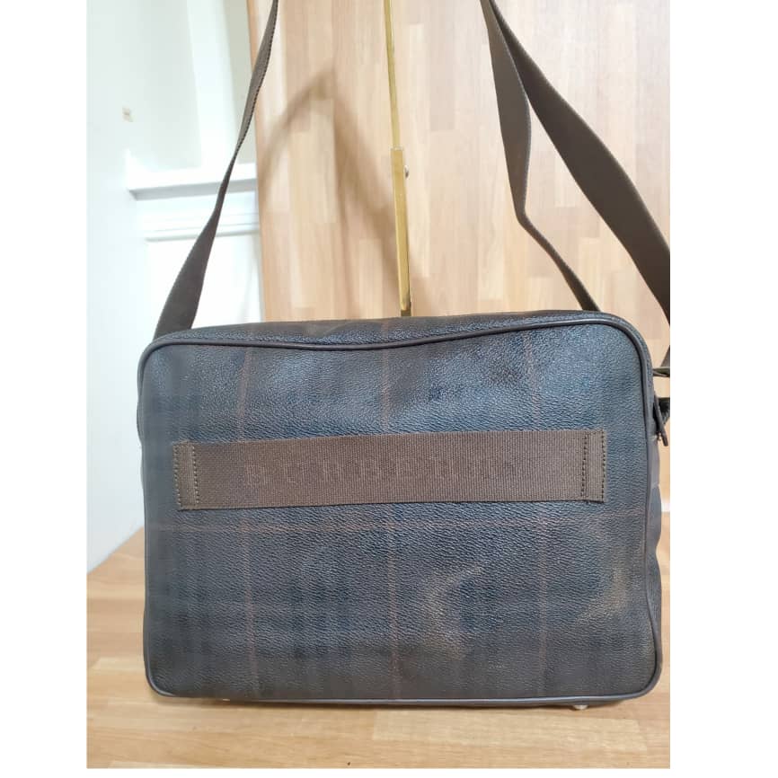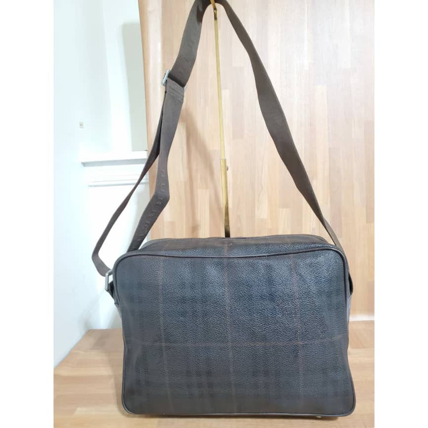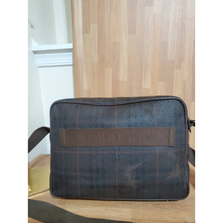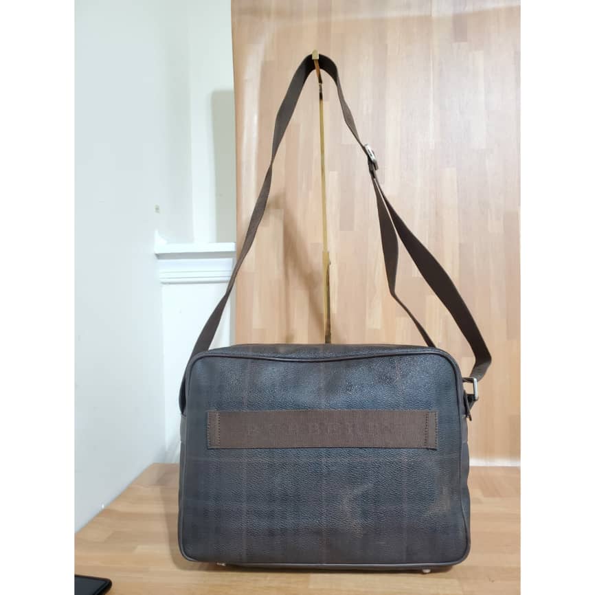 This authentic Burberry Reporter Messenger Bag Brown is in its pre-owned good condition. The exterior coated canvas is clean and beautiful. Interior is clean. Very spacious. Can also be used as a small travel carryon