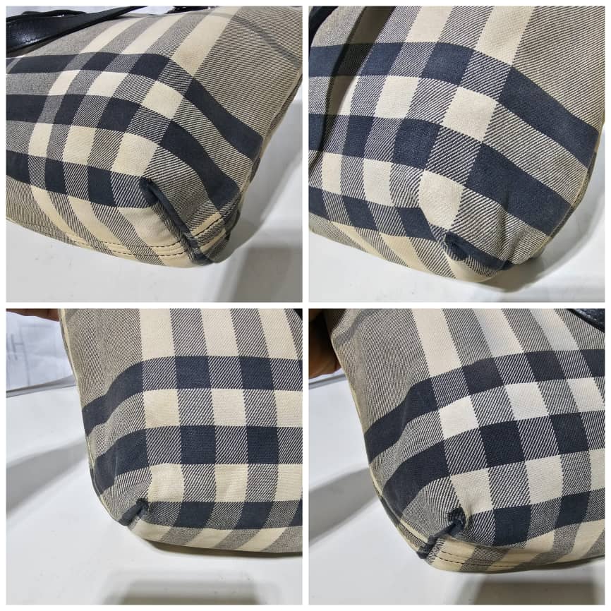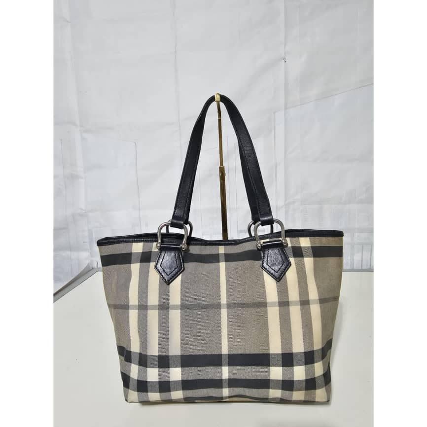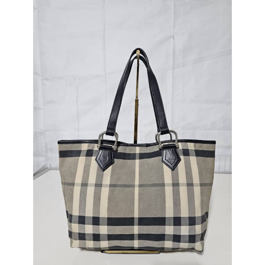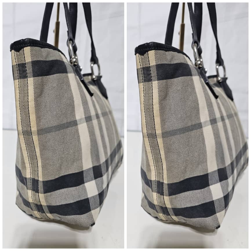 This authentic Burberry Silver Beat Check Leather Trimmed Tote Bag is in itβs good pre-owned condition. The exterior canvas is clean and beautiful. The interior is clean. Silver hardware. It is a limited edition.